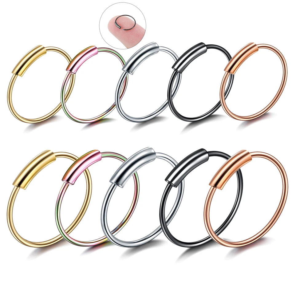 1PC Surgical Steel Nose Hoop Nose Ring Stud Punk Style Body Piercing Jewelry Nose Lip Cartilage Tragus Helix Ear Piercing