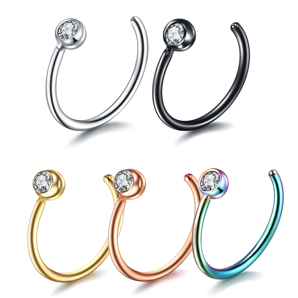1PC Women Stainless Steel Nostril Nose Hoop Stud Ring Clip On Nose Body Jewelry Fake Piercing Jewelry