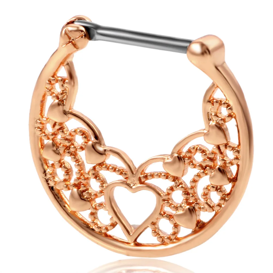 1PCS Fake Nose Ring Classical Designs Plated Round Septum Piercing Clicker Faux Clip Non Body Hoop For Women Wholesale Jewelry