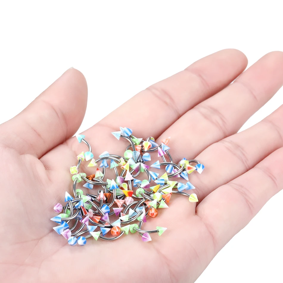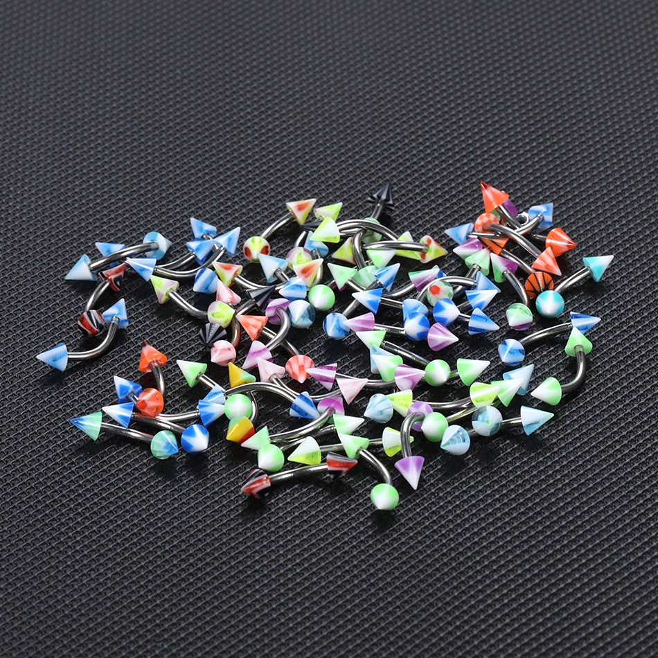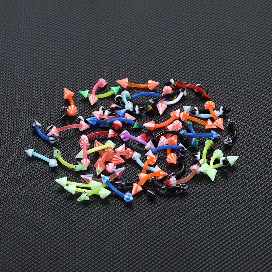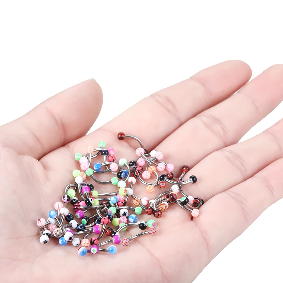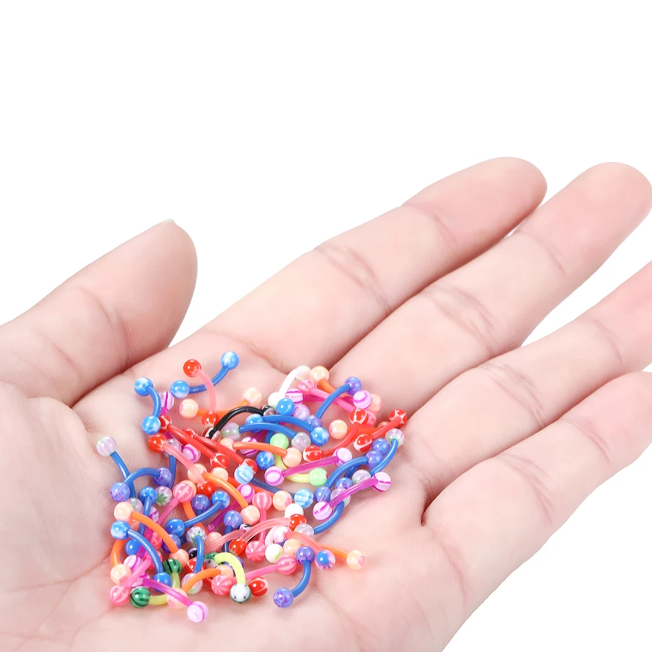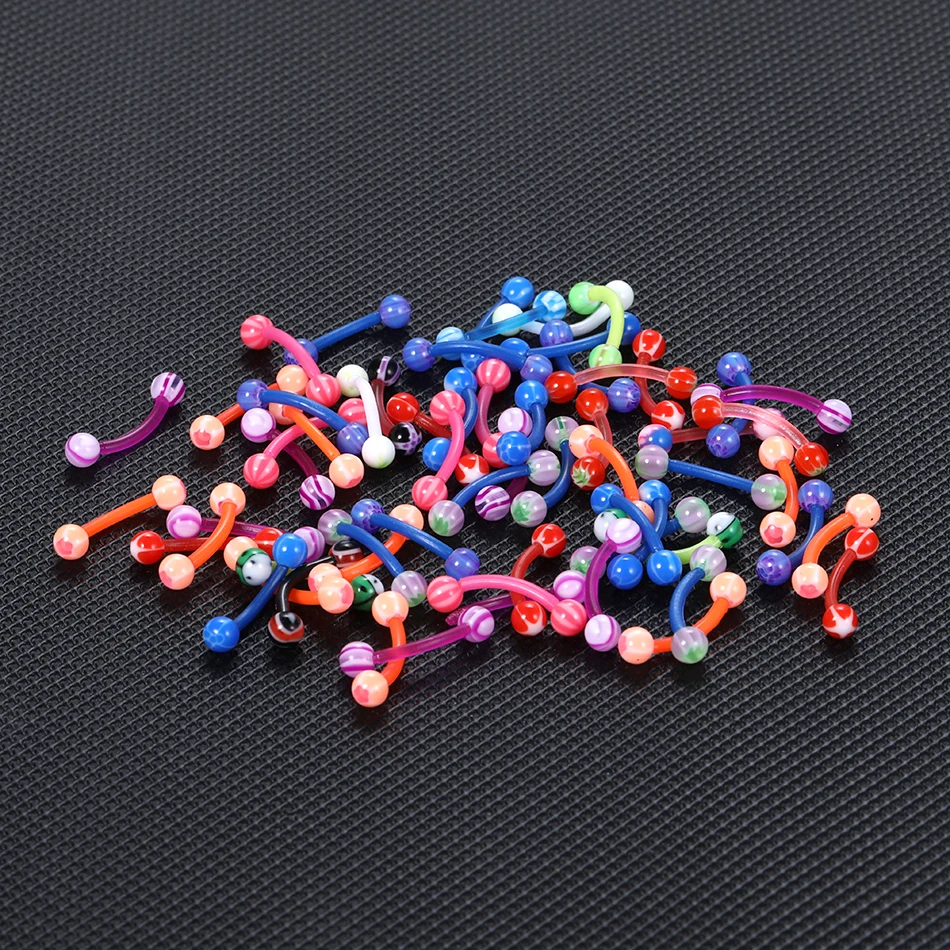 60Pcs/set Acrylic Ball Eyebrow Piercing Curved Barbell LipEyebrow Ring Snug Daith Helix Rook Earring Body Piercing Jewelry 16G