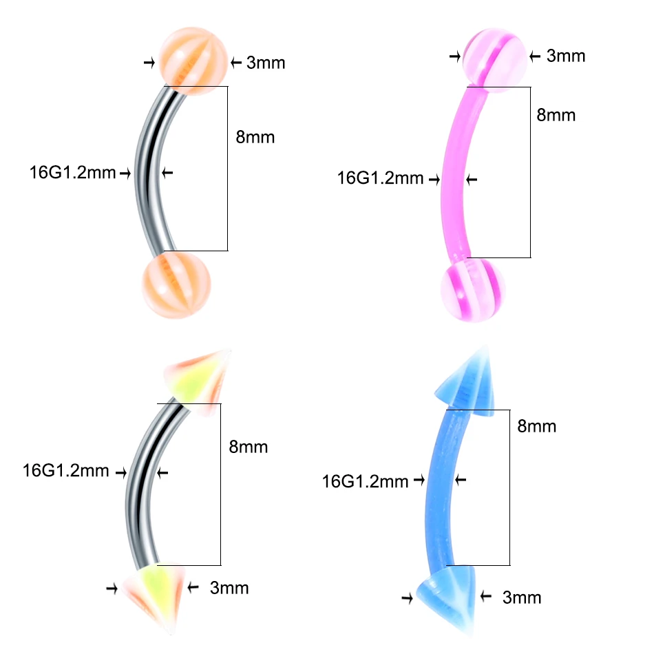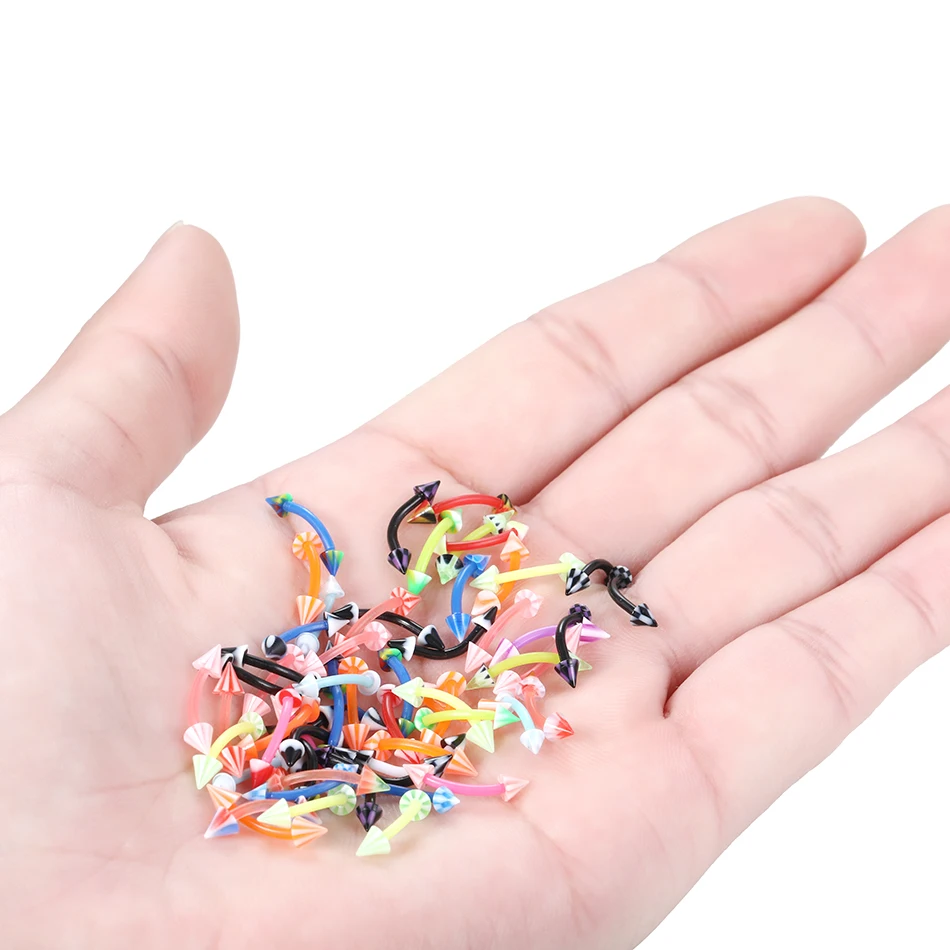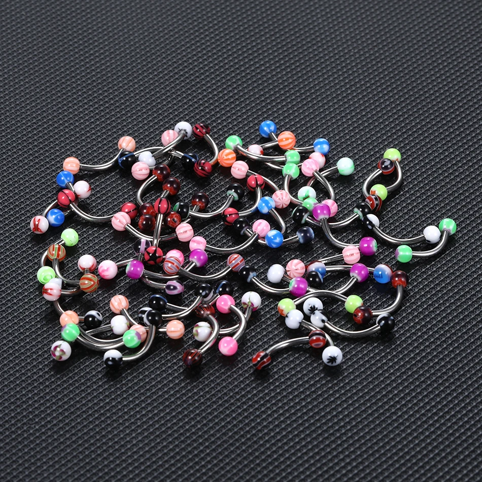 60Pcs/set Acrylic Ball Eyebrow Piercing Curved Barbell Lip Eyebrow Ring Snug Daith Helix Rook Earring Body Piercing Jewelry 16G