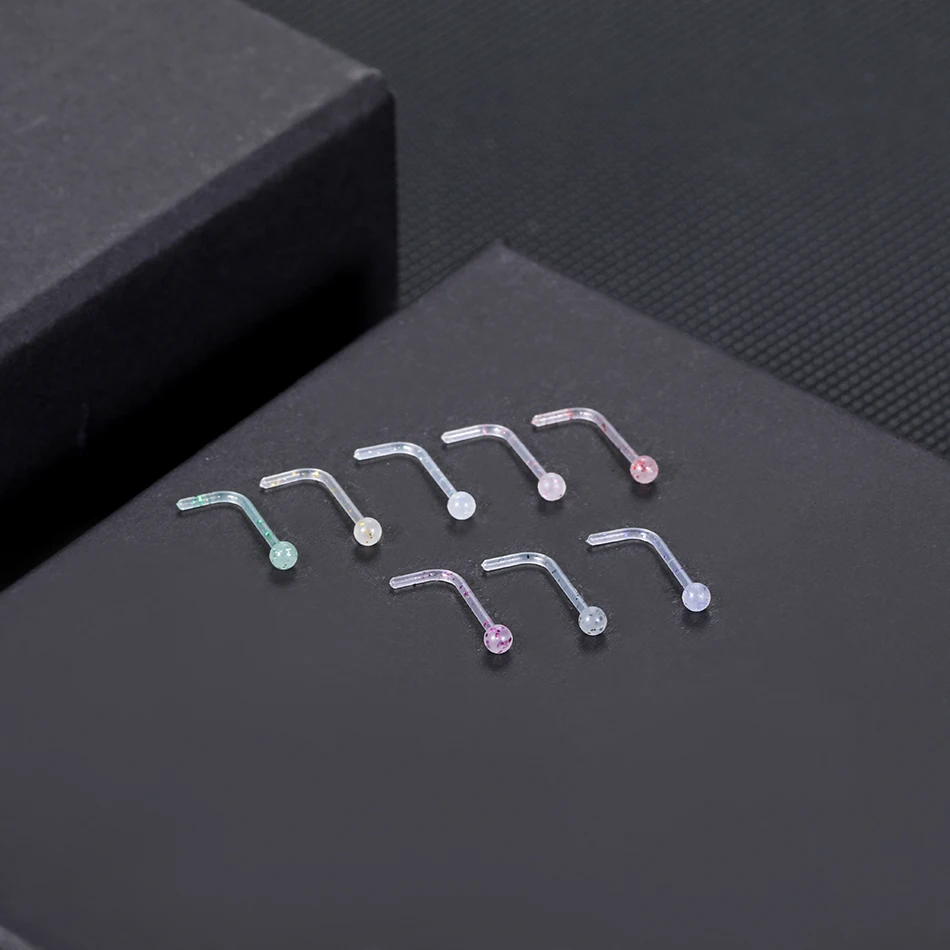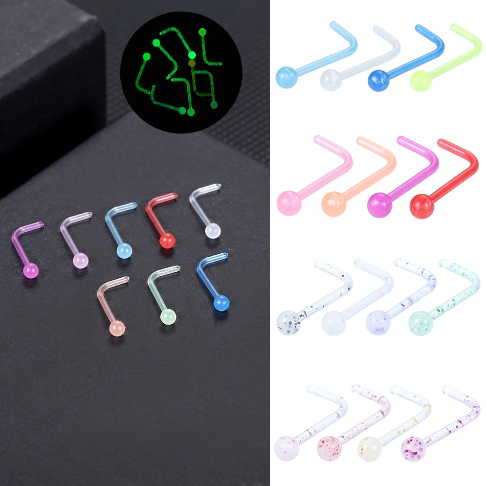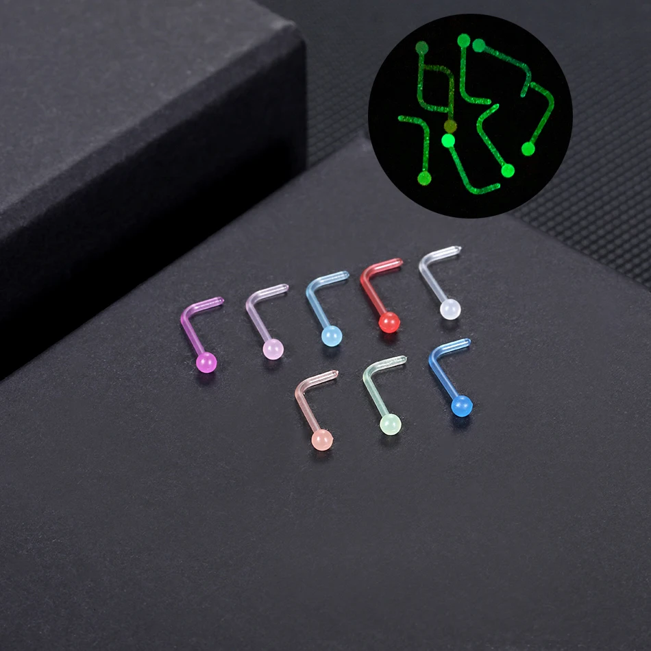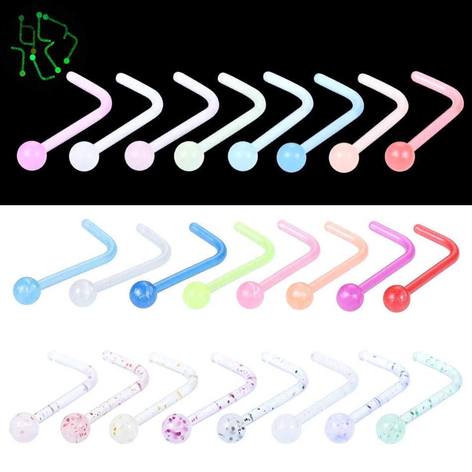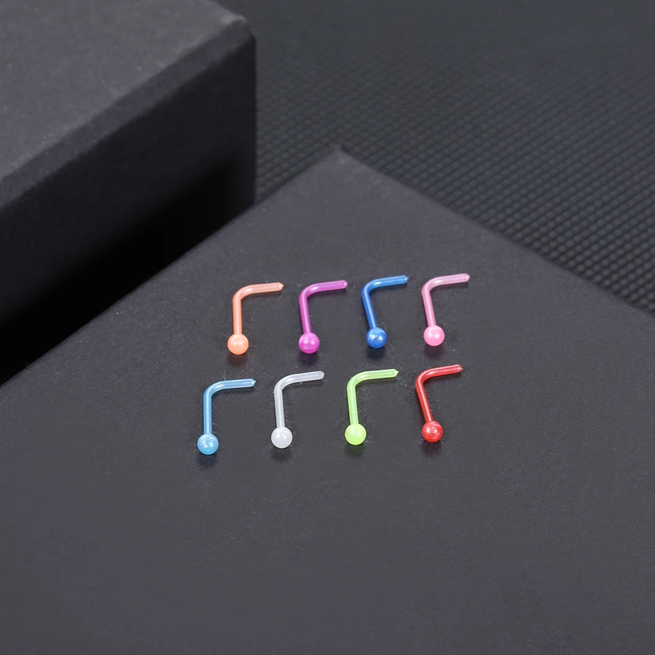 8Pcs/set Acrylic L Shape Nose Stud Pack 20G Glow in the Dark Nose Ring Set Nose Stud Lot Body Piercing Jewelry Nariz Pin