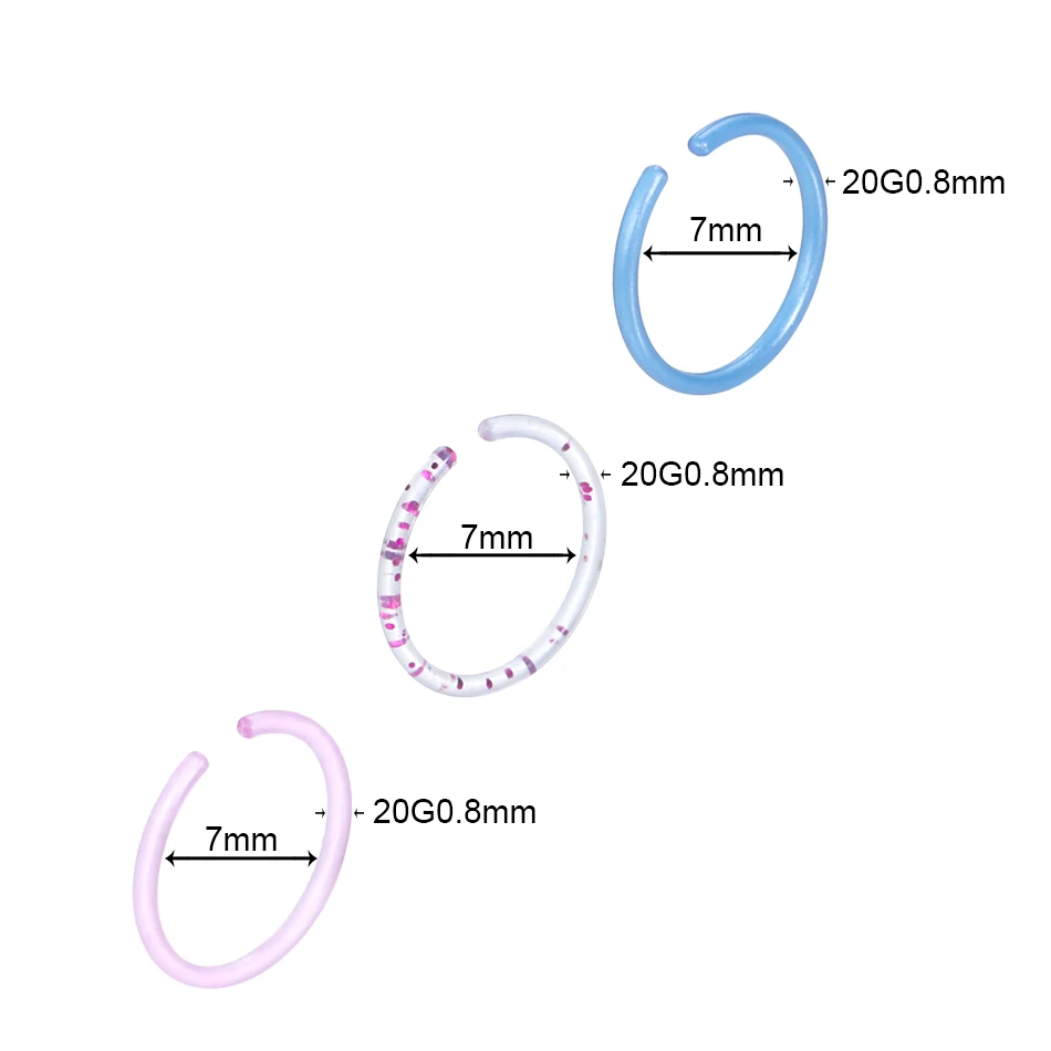 8Pcs/set Bioplast Flexible Nose Ring Luminous Septum Clicker Piercing Nose Segment Hinged Lip Ring Nose Piercing Body Jewelry