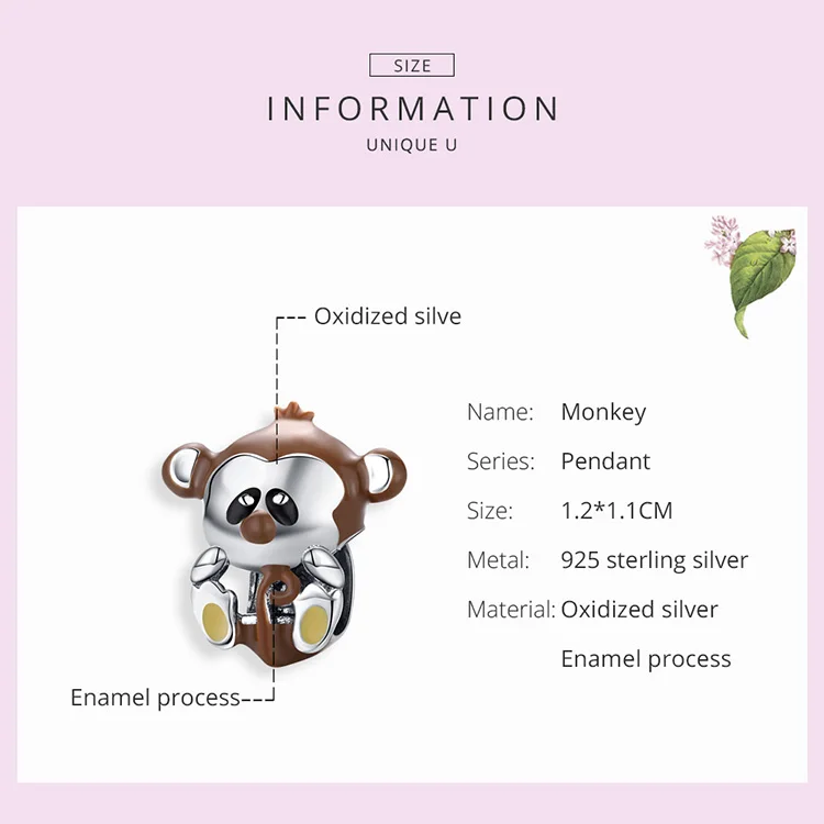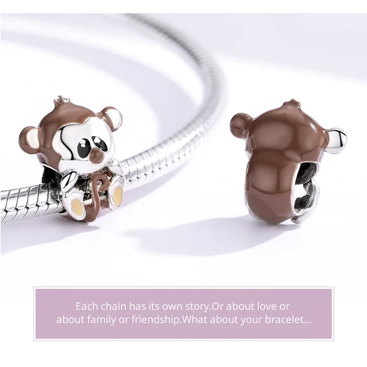 bameor Lovely Monkey Animal Charm for Original Silver Snake Bracelet 925 Sterling Silver Beads Luxury European Jewelry BSC125