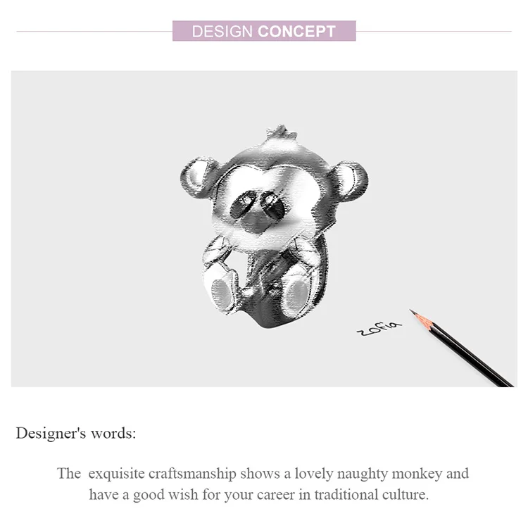Material: S925+Oxidized silver+Enamel process Size:1.2*1.1cm The exquisite craftsmanship shows a lovely naughty monkey and have a good wish for your career in traditional culture.