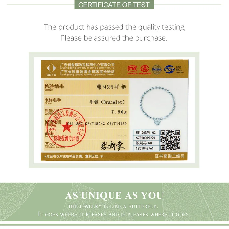 BAMEOR Silver Bead Chain Bracelet 925 Sterling Silver Simple Love Chain Women Fashion Basic Bracelets SCB203