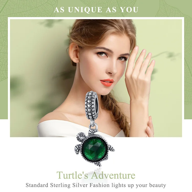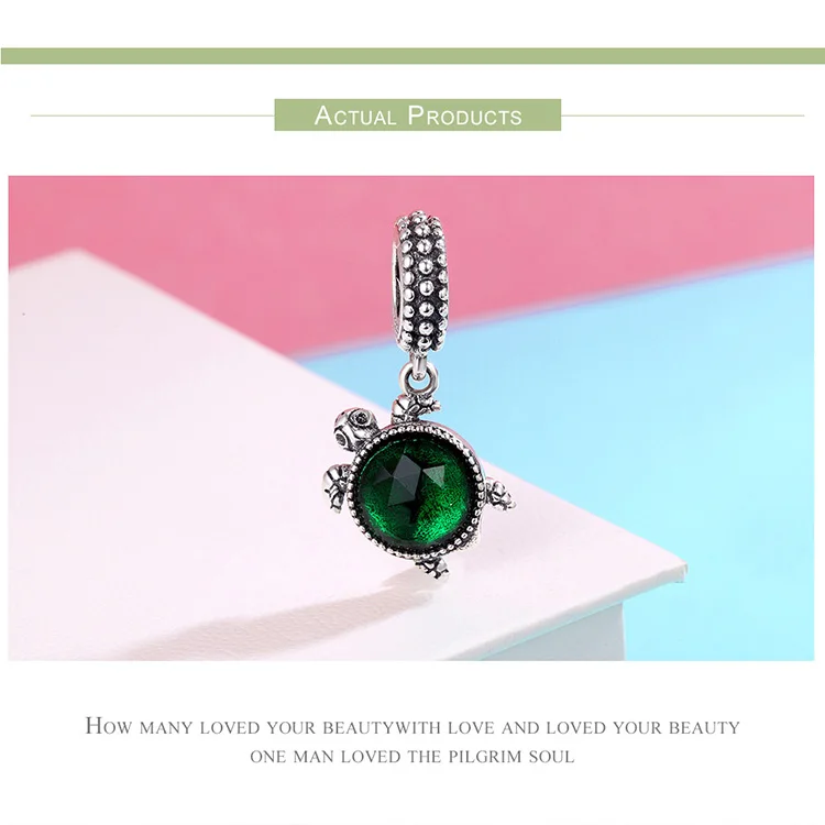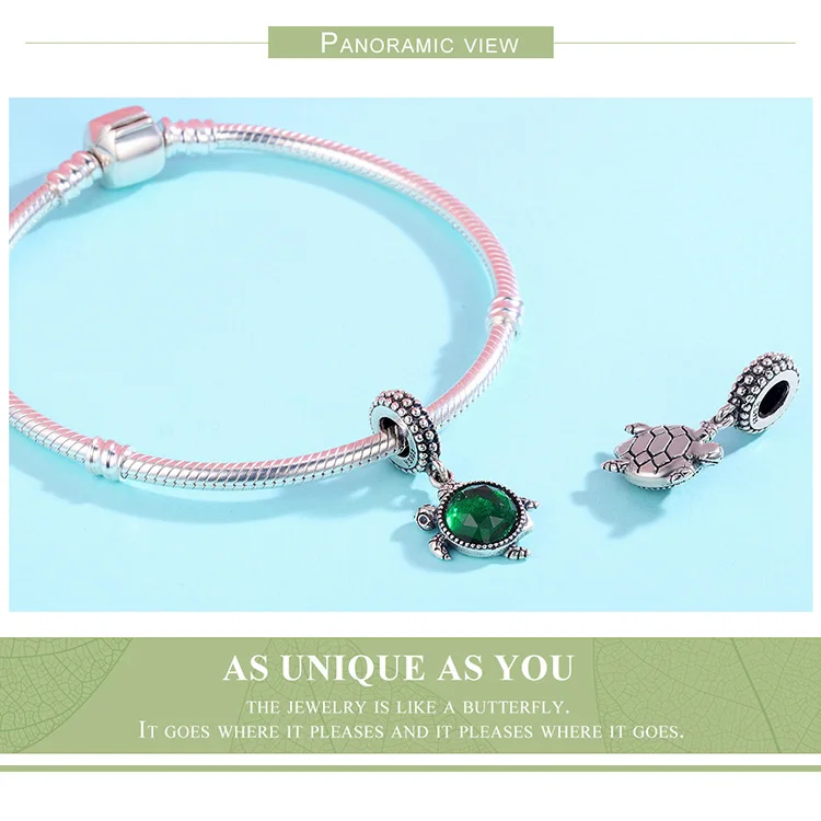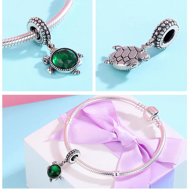 BAMOER 100% 925 Sterling Silver Turtle's Adventure Tortoise Pendant Charms fit Women Charm Bracelets Necklace DIY Jewelry SCC281