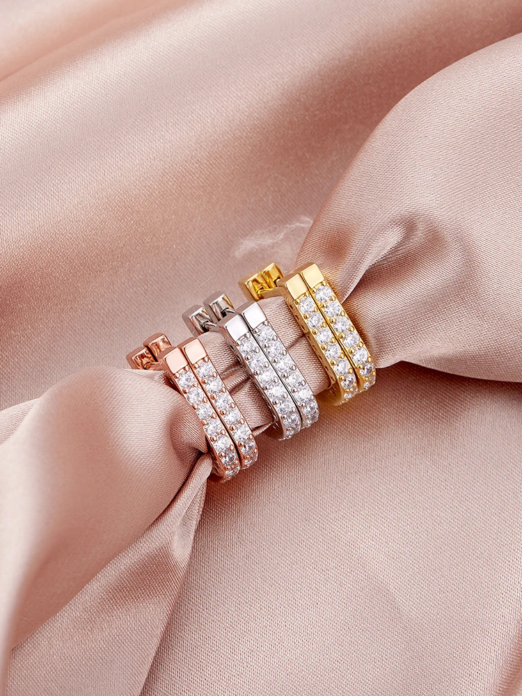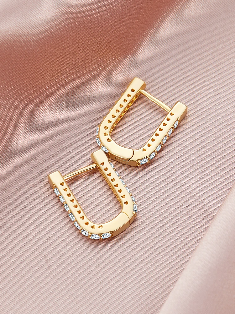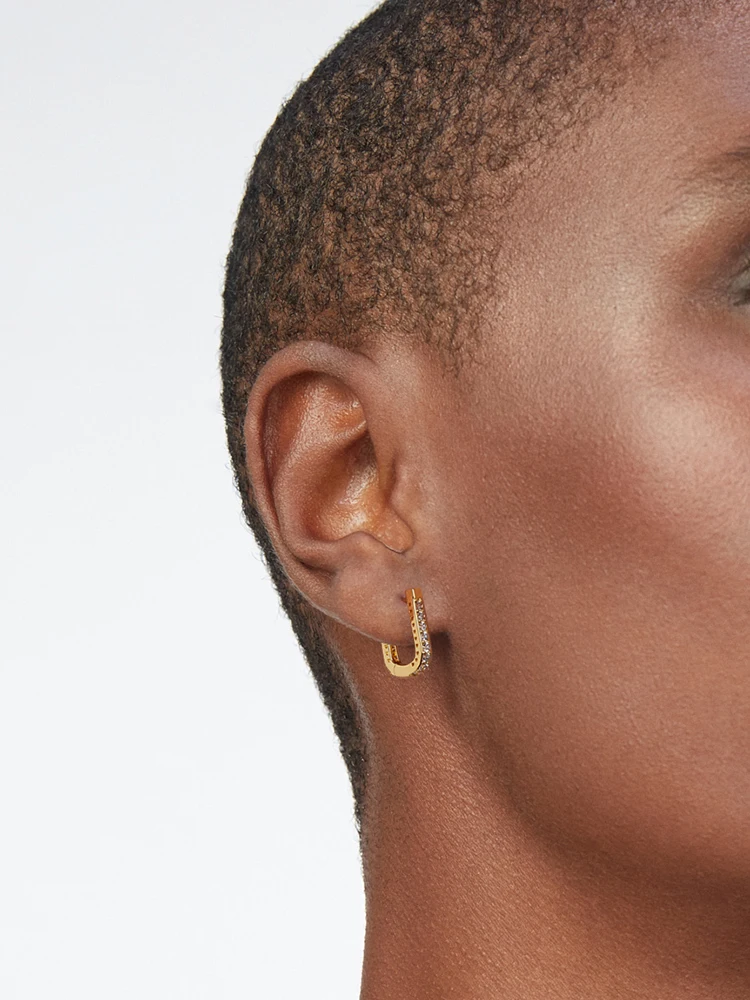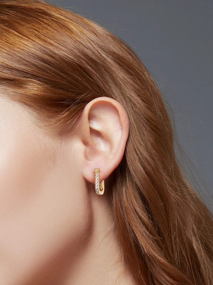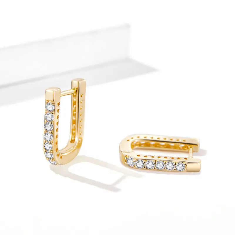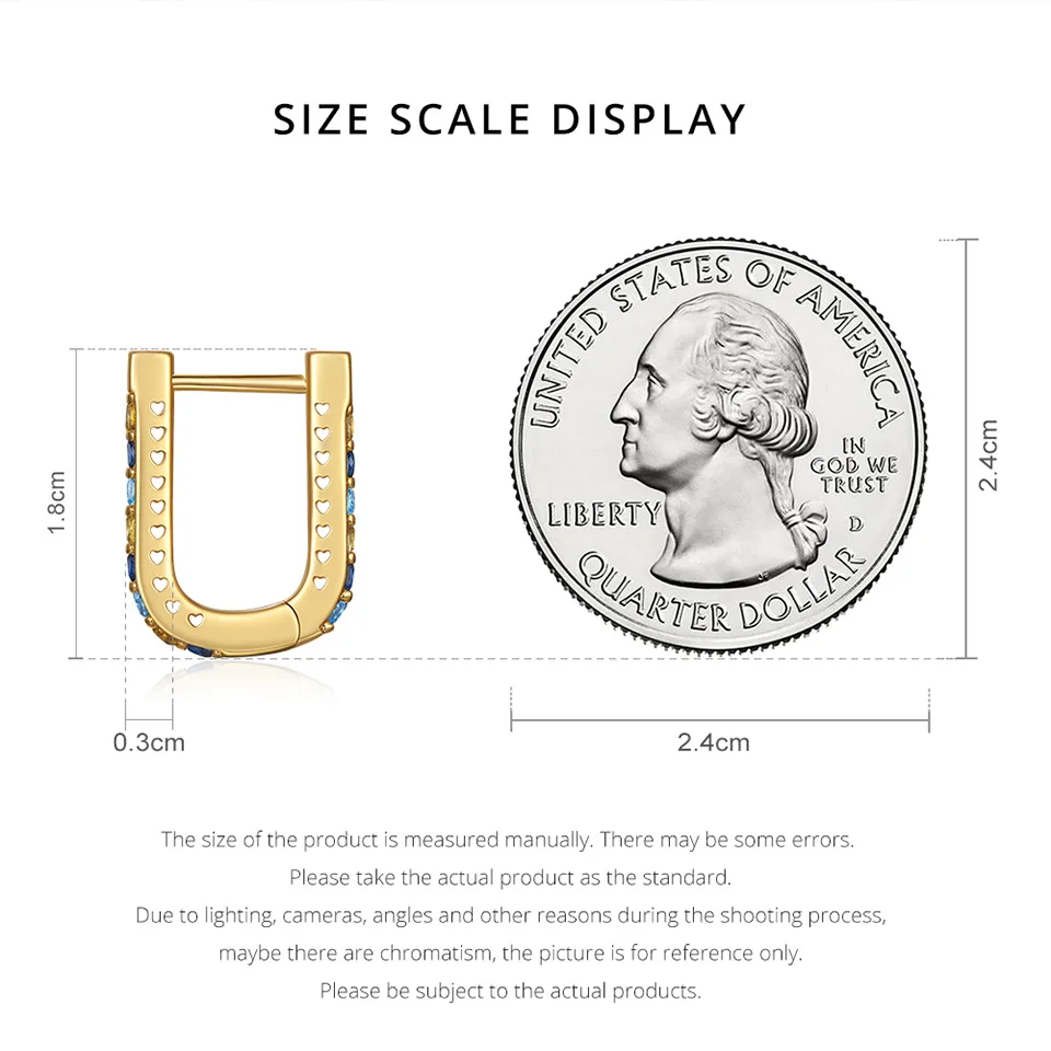 Bamoer 14K Gold Plated Cuff Earrings with Cubic Zircon, 12 Colors Basic Huggie Stud for Women Girl