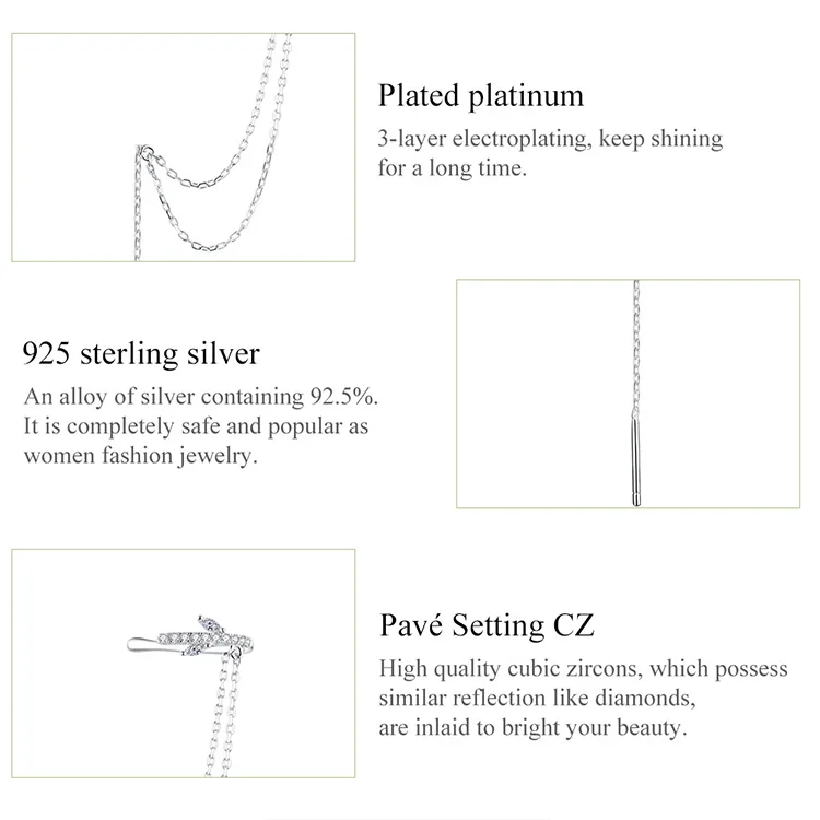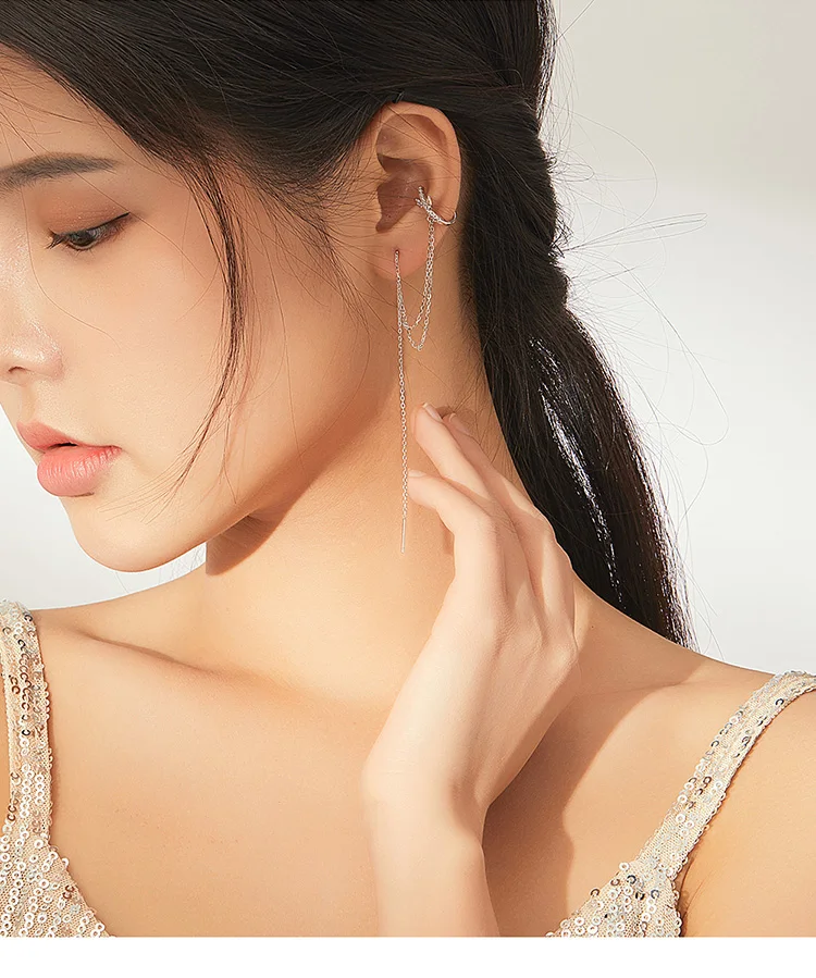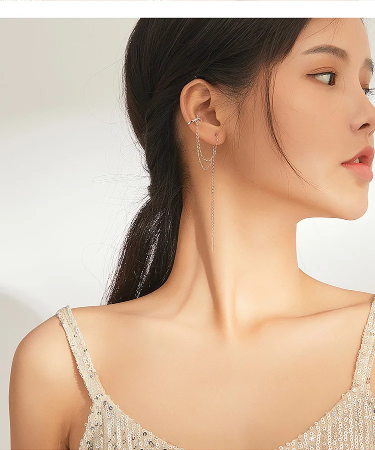 Material: S925+Plated platinum+Pavé Setting CZ length:5-14.5cm Description: The minimalist chain inject the elements of sparkling ear bone clip is the amazing design and create a funky and sweet style.