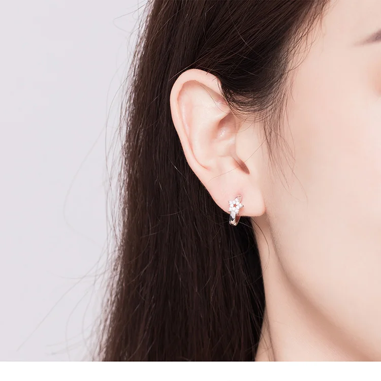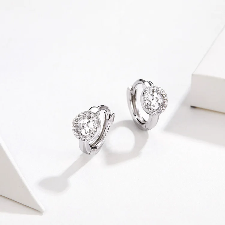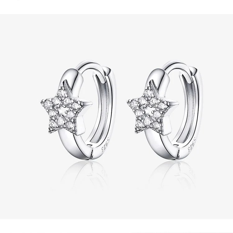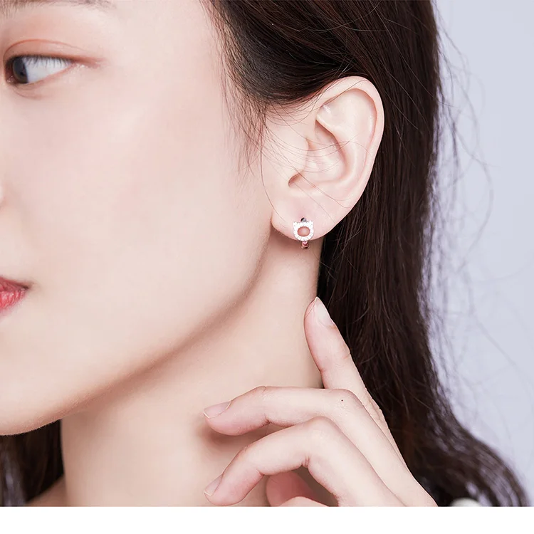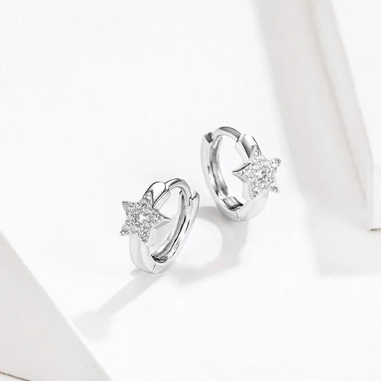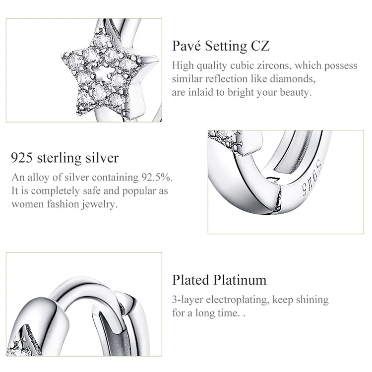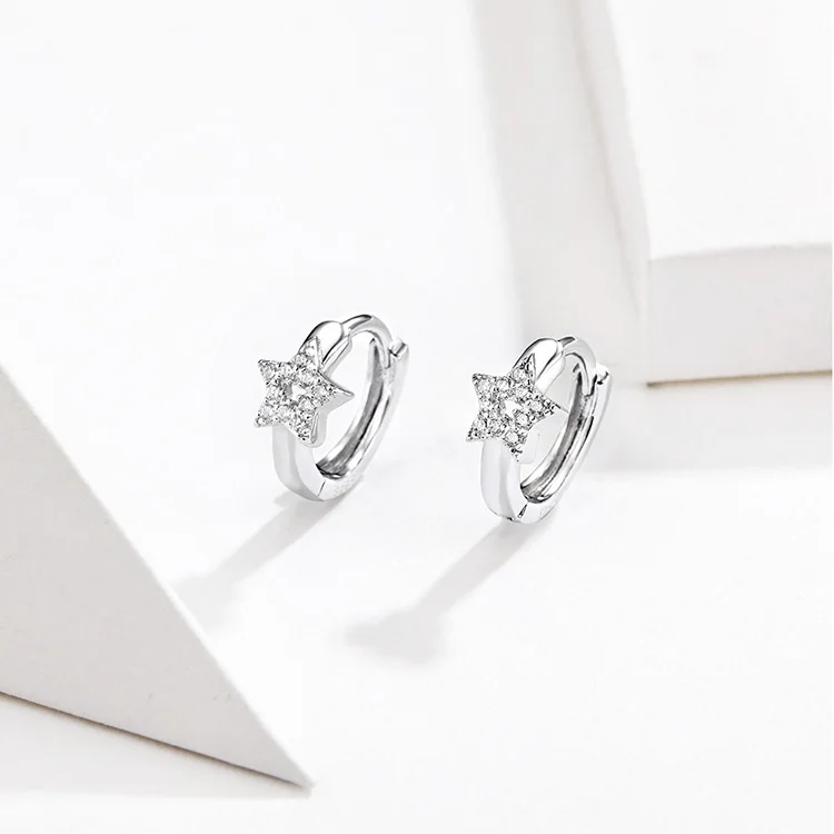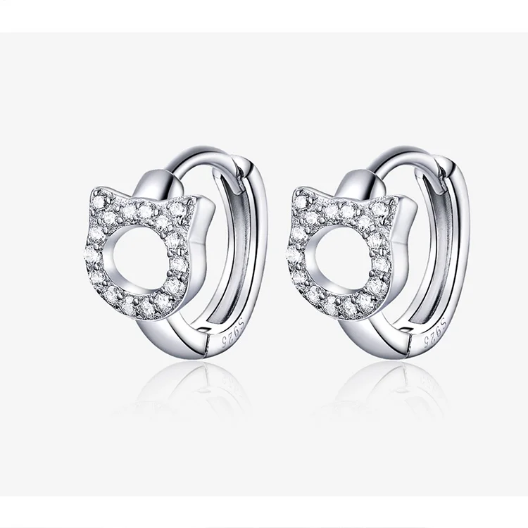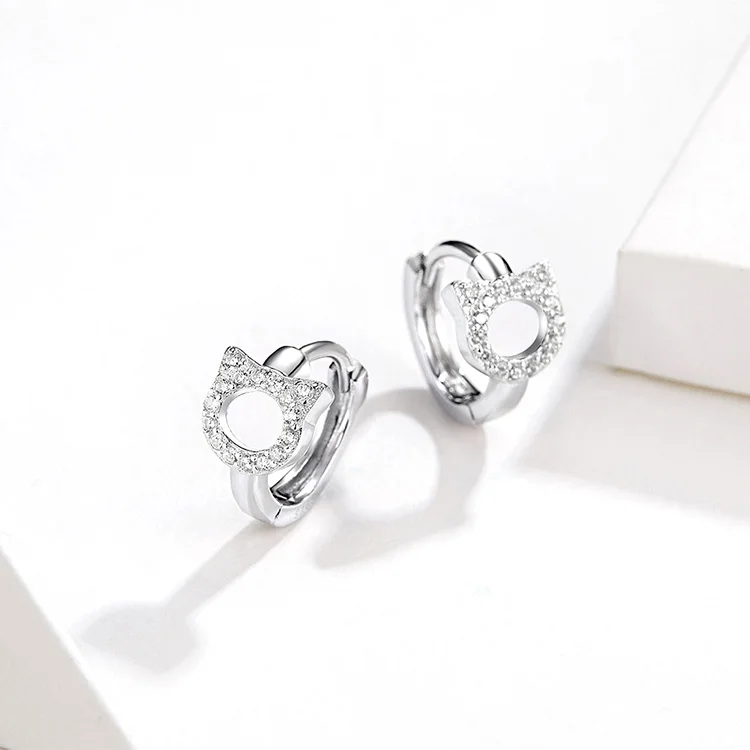 bamoer 3 Styles Hoop Earrings Sterling Silver 925 Cute Cat Star Round Small Ear Hoops for Women Jewelry Gifts for Girl BSE172