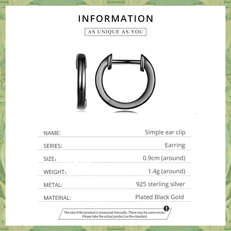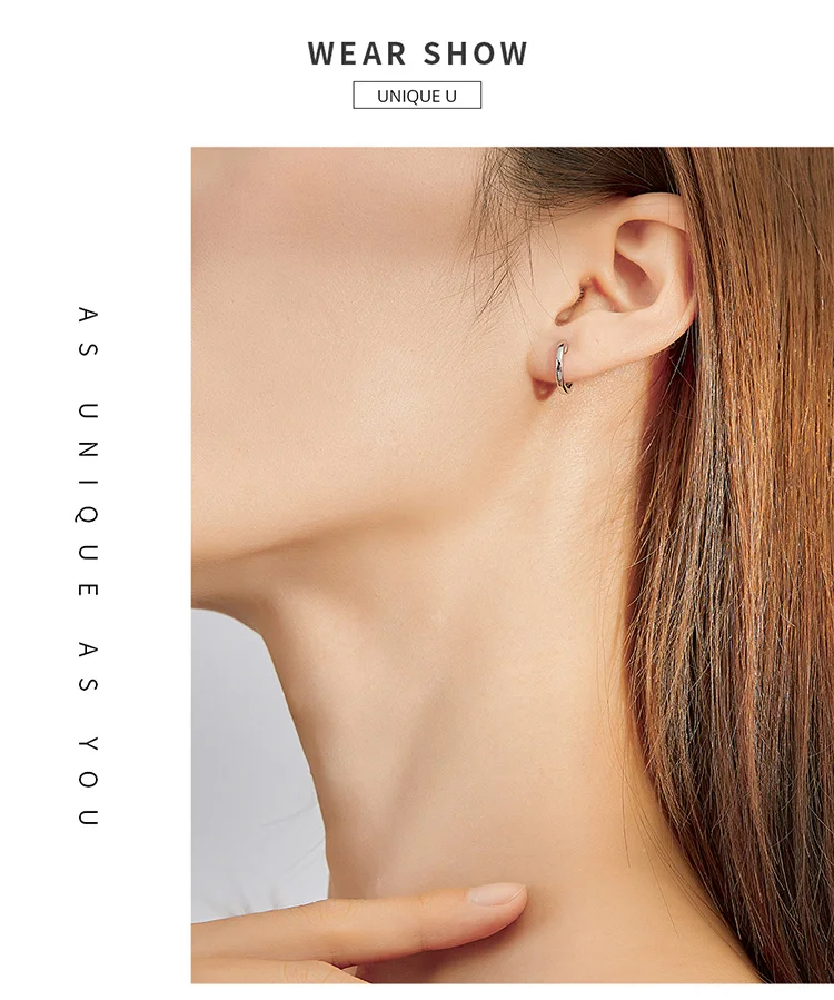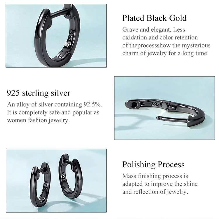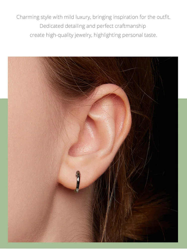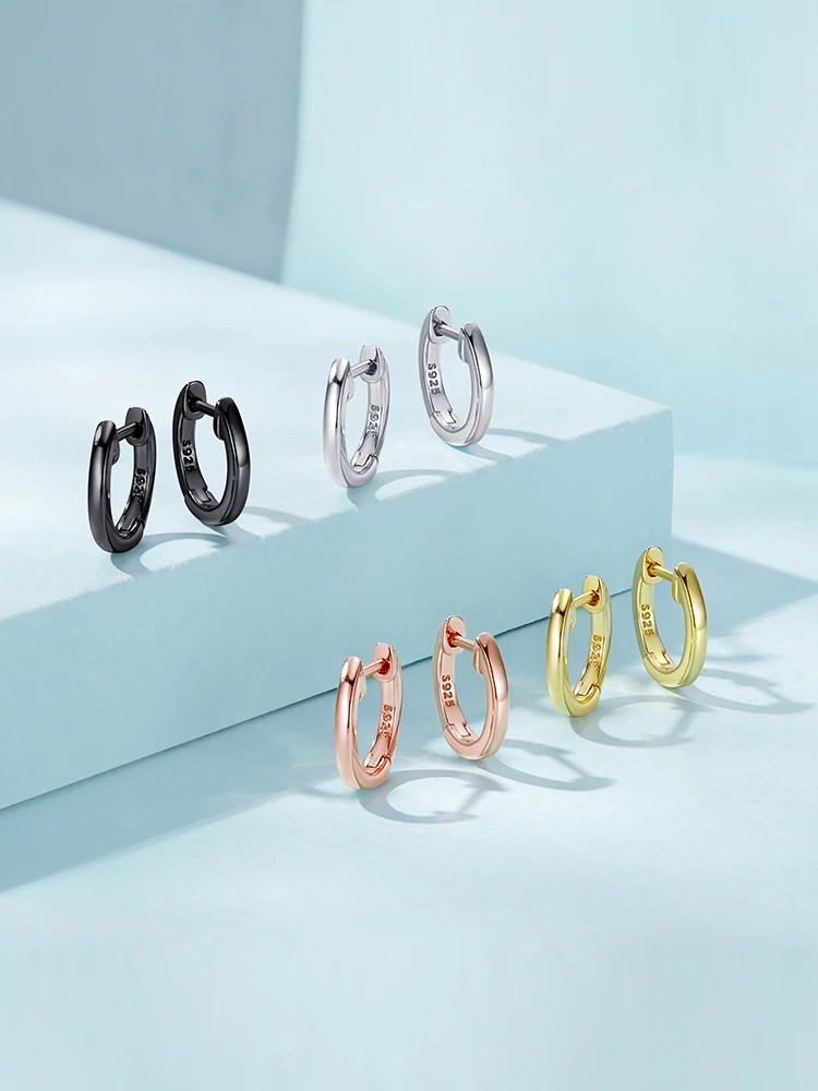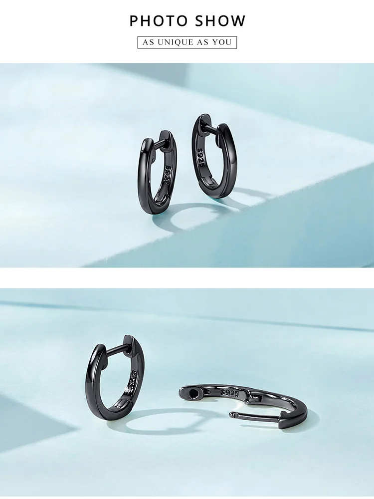 Bamoer 925 Sterling Silver 4 Colors Tiny Ear Hoops Plated Black Gold Ear Buckles for Women Fine Jewelry Ear Clip Wedding Gift