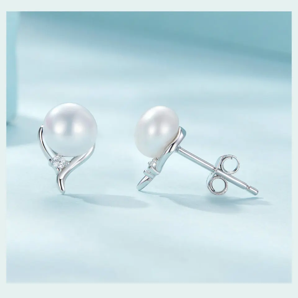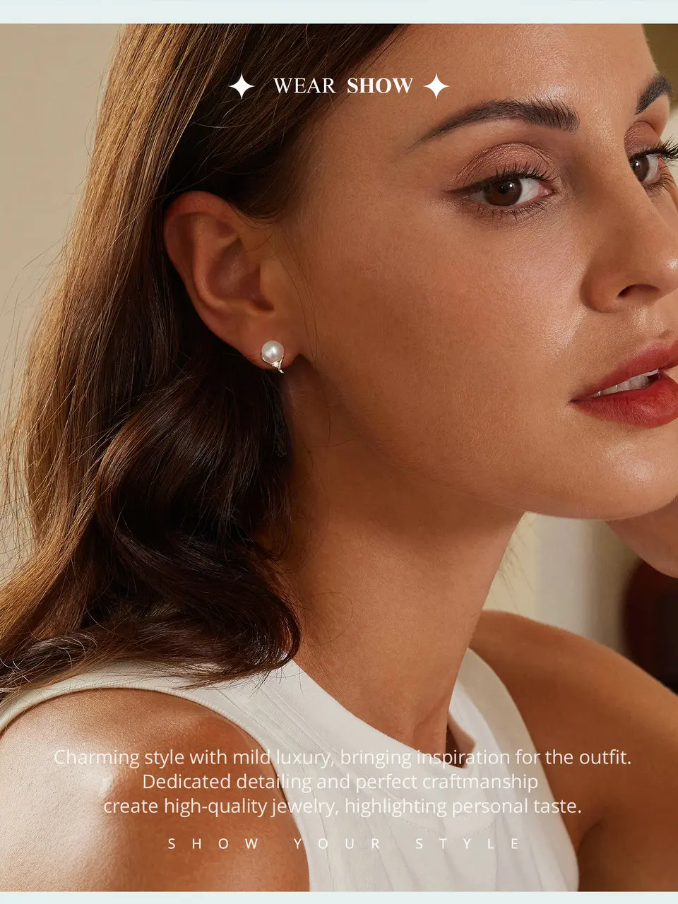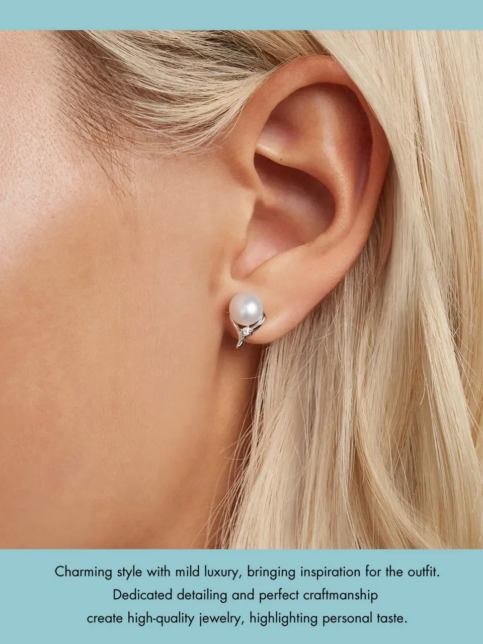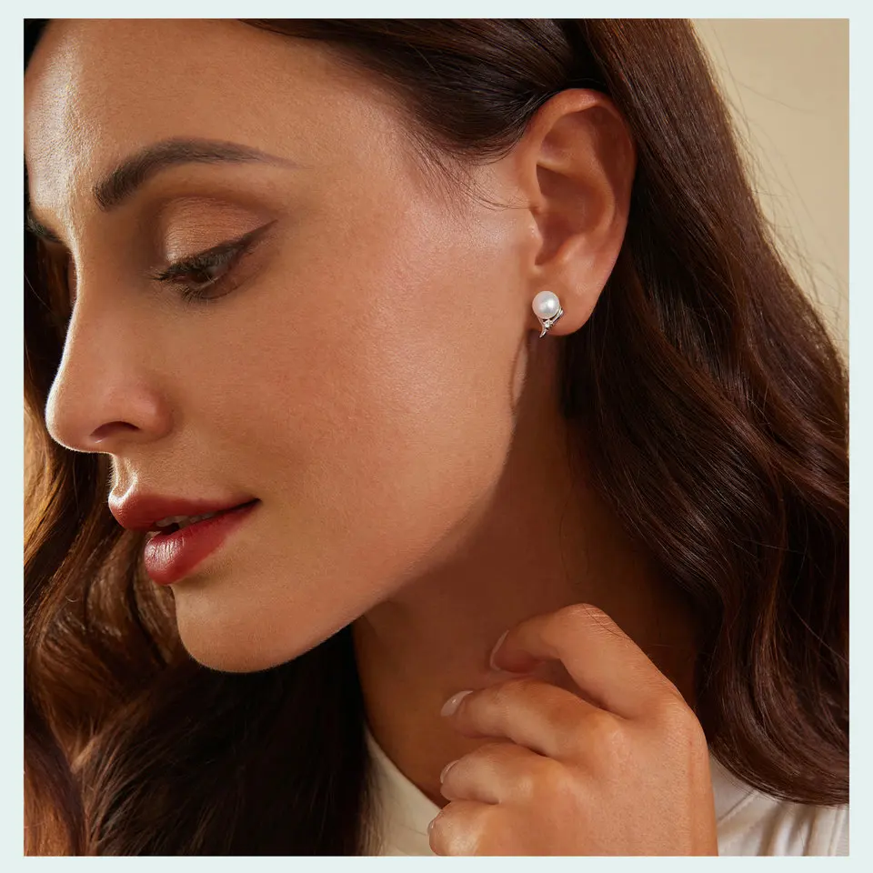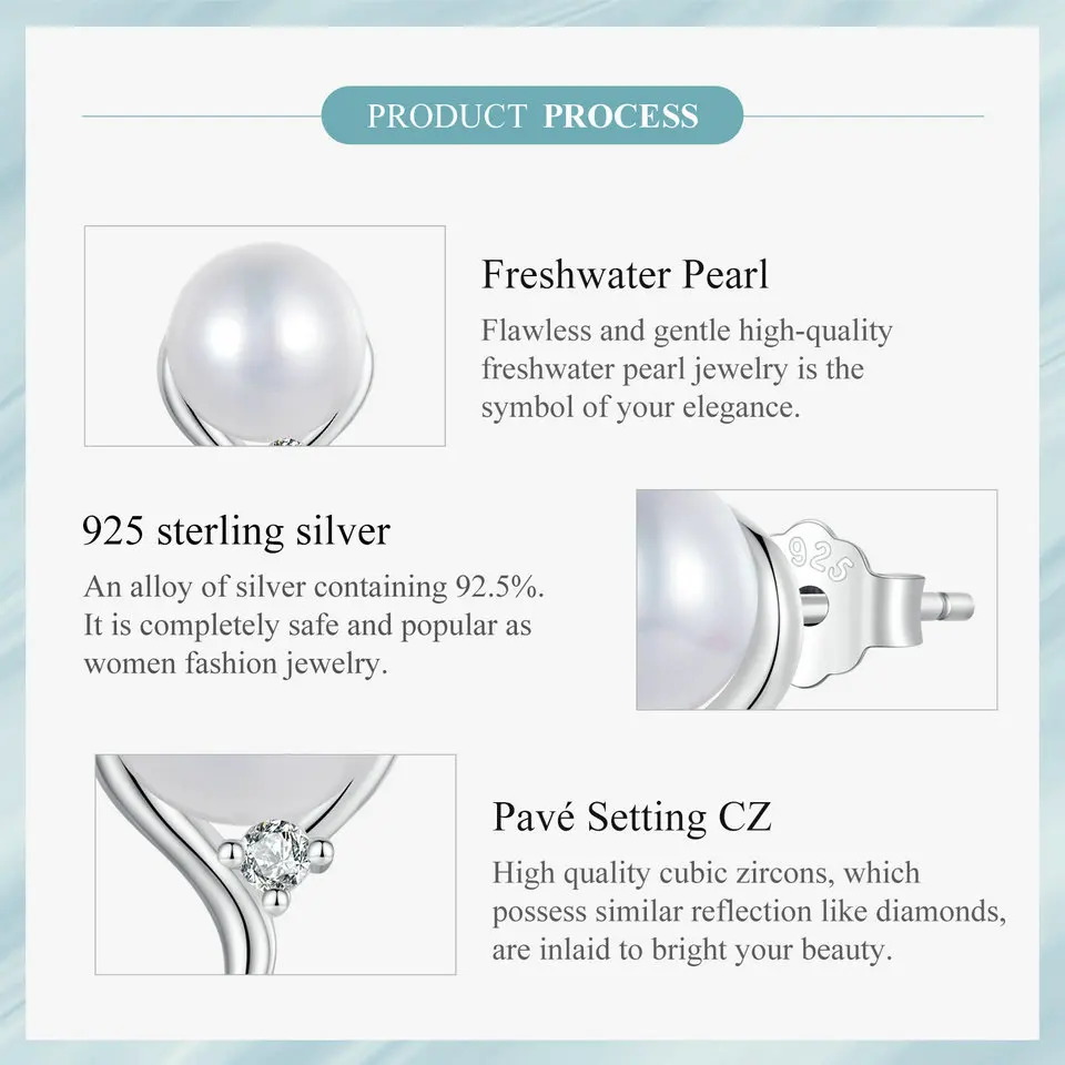 ❤ [Material] 925 Sterling Silver & Pavé Setting CZ & Natural fresh water Pearl & Plated platinum.