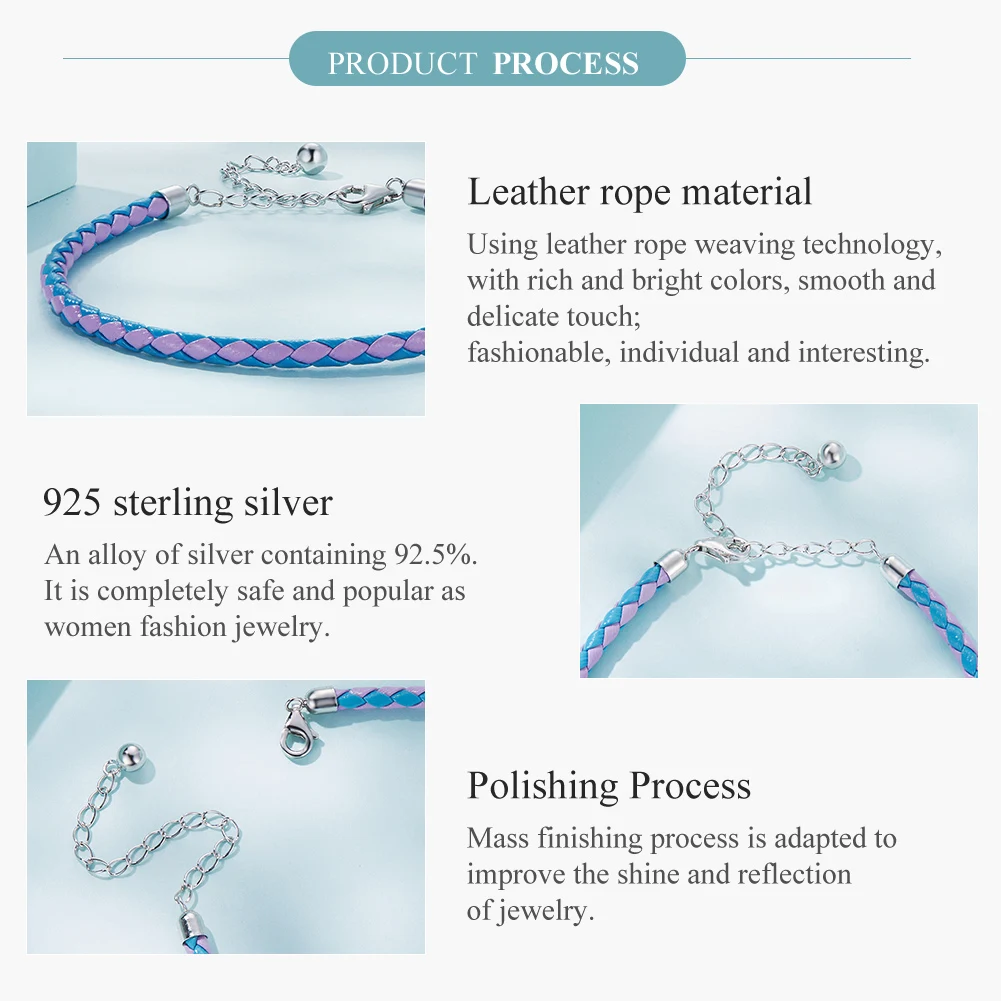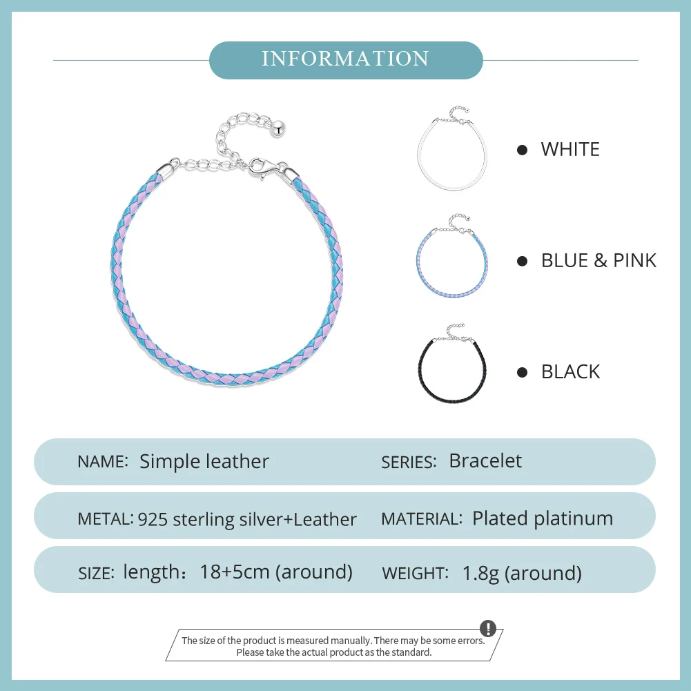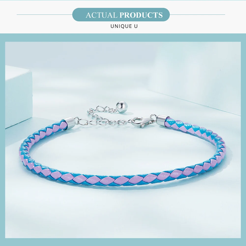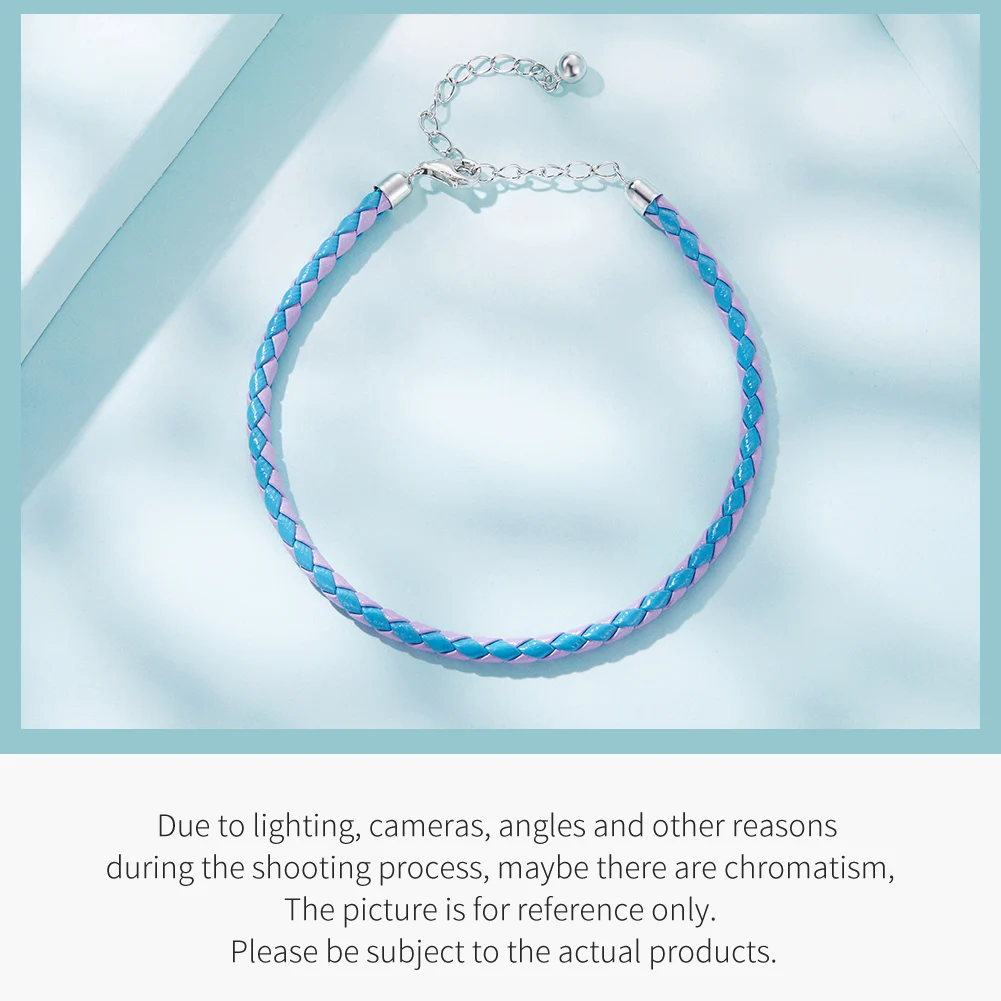 ❤ [Description] The basic-style blue and pink woven leather bracelet, with smooth and delicate touch; fashionable, individual and interesting; the humanized design ends with an electroplated platinum lobster clasp, which is easy to adjust in size.