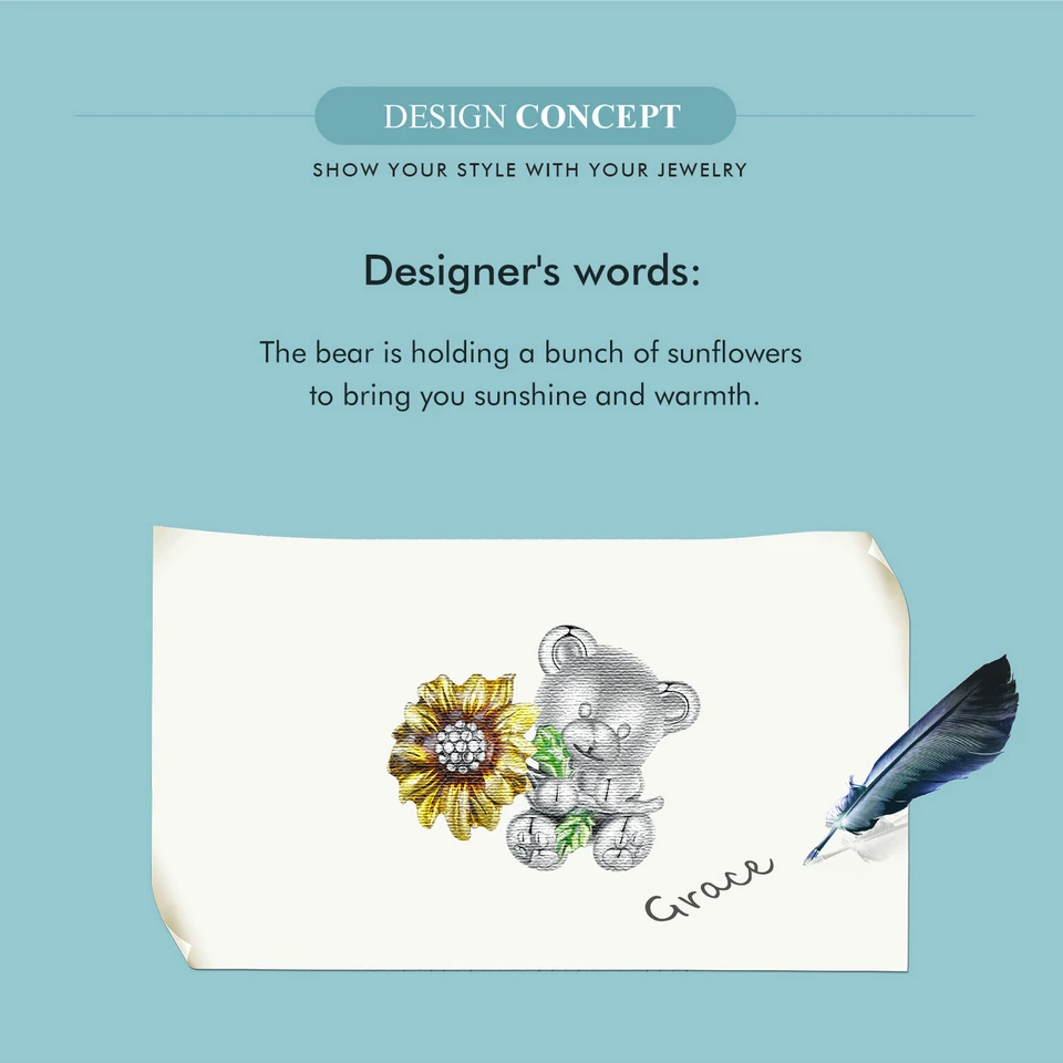 ❤ [Description] The bear is holding a bunch of sunflowers to bring you sunshine and warmth.