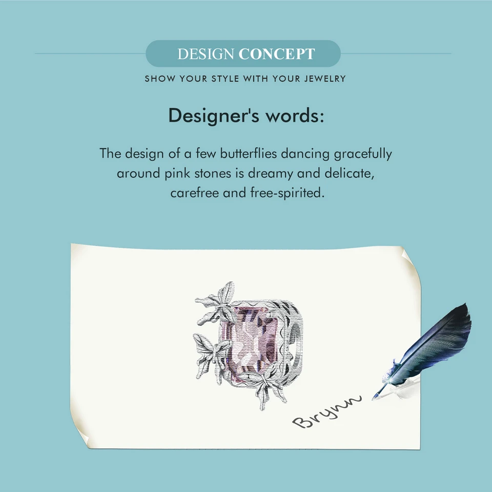 ❤ [Description] The design of a few butterflies dancing gracefully around pink stones is dreamy and delicate, carefree and free-spirited.