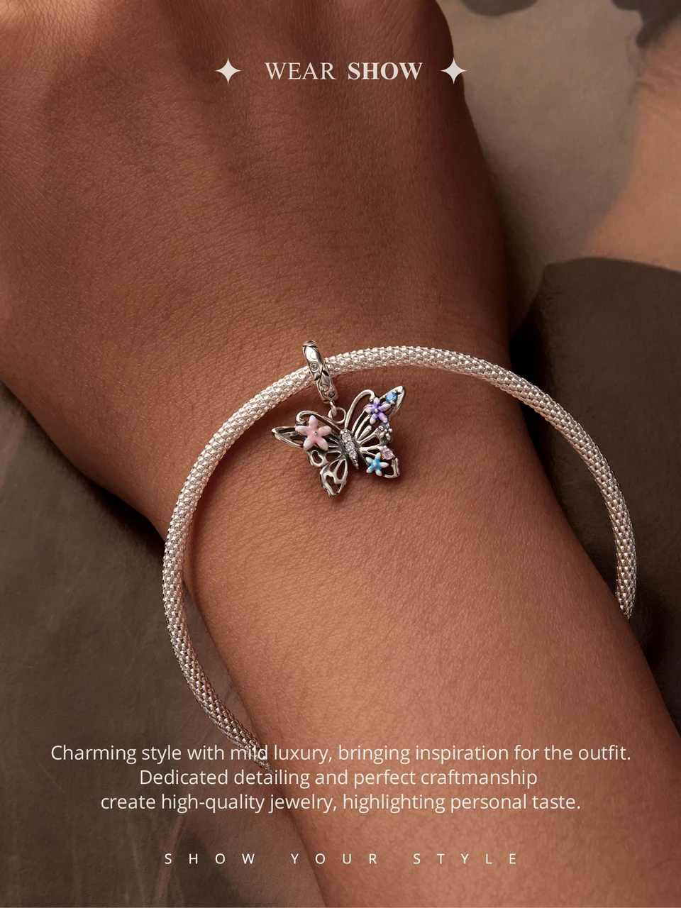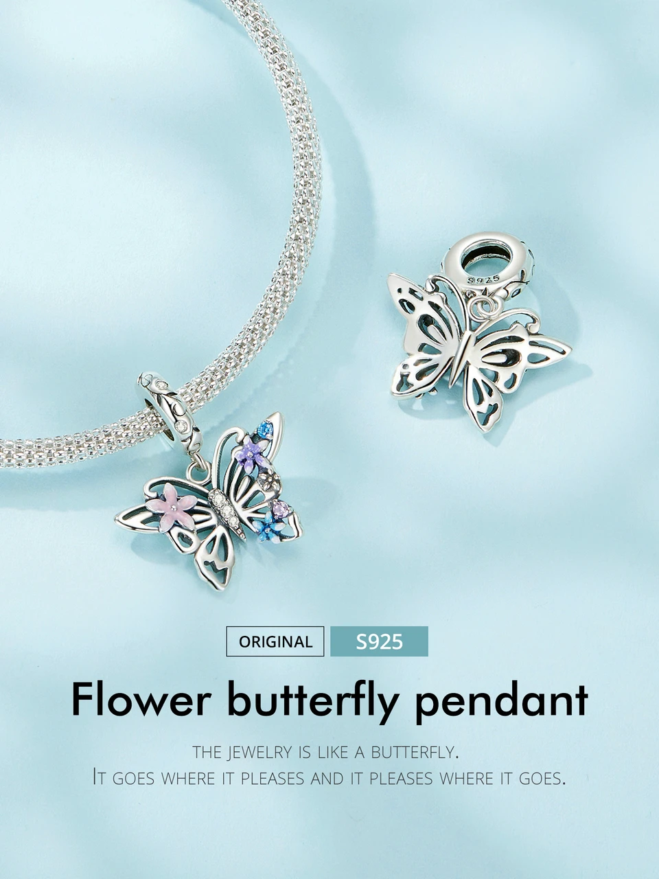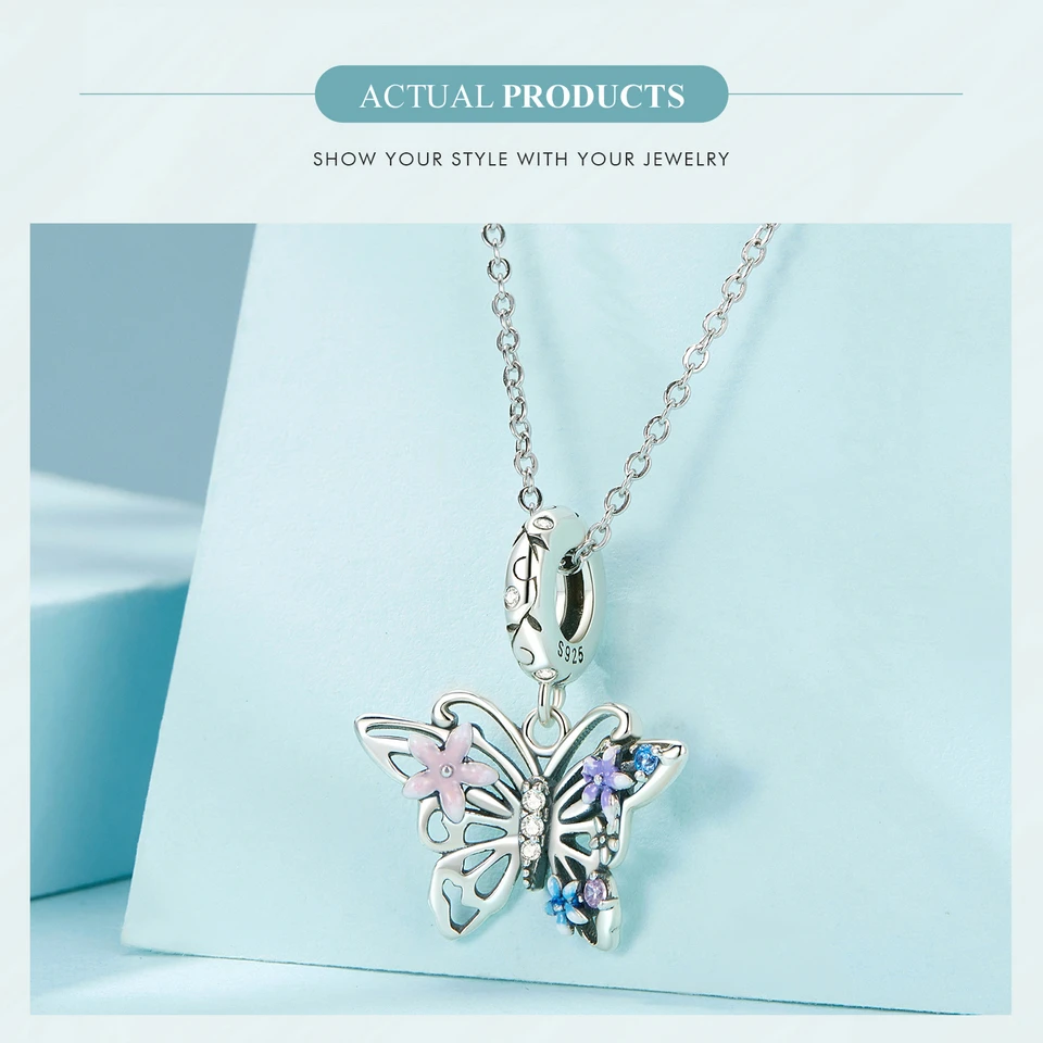 ❤ [Description] The hollowed design butterfly pendant with small flower symbolizes the yearning for a beautiful life and the freedom to be carefree.