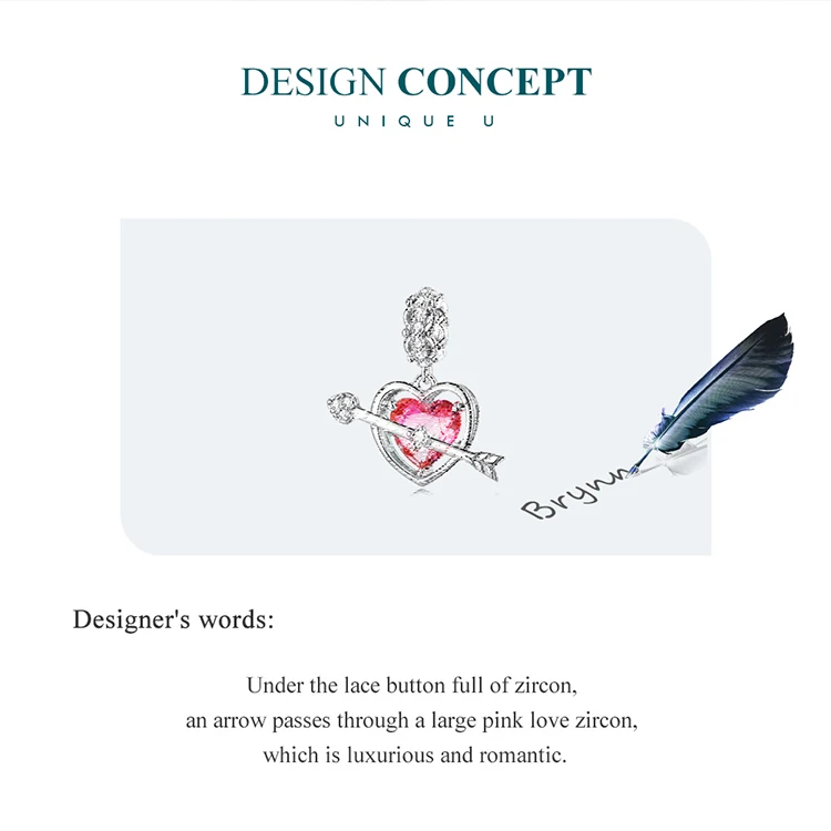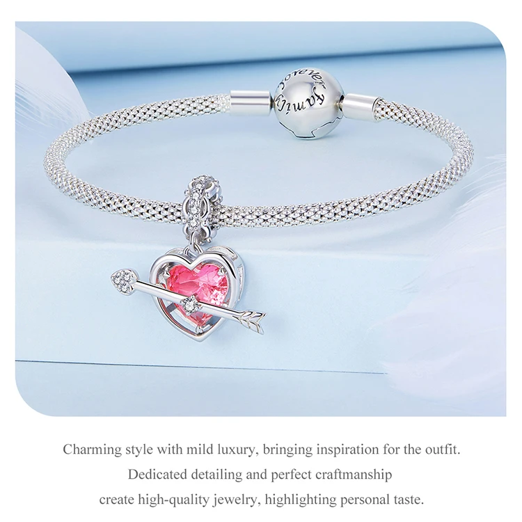 ❤ [Description] Under the lace button full of zircon, an arrow passes through a large pink love zircon, which is luxurious and romantic.