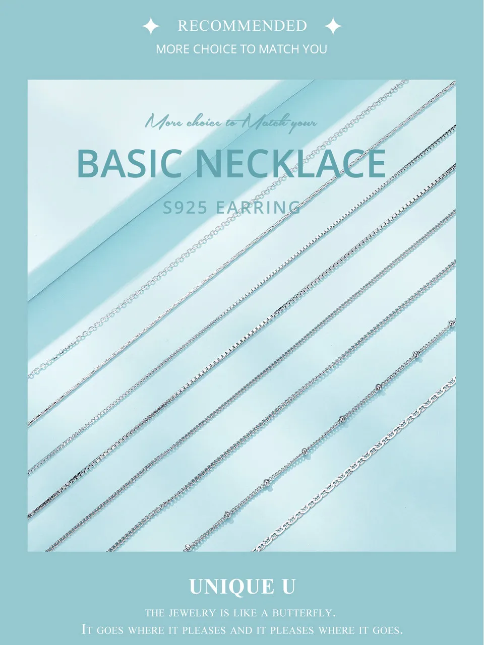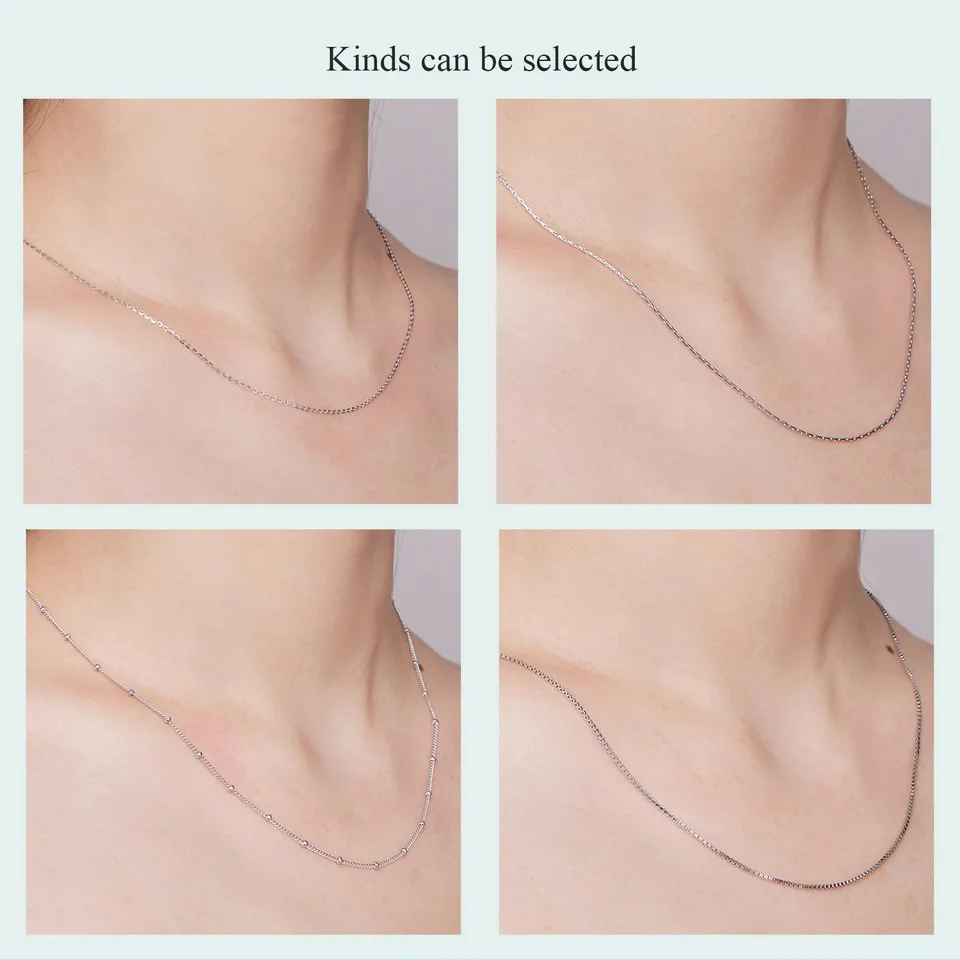 Bamoer 925 Sterling Silver Basic Chain Necklace Collection Box Chain Necklace Bead Chain Link for Women Simple Fine Jewelry