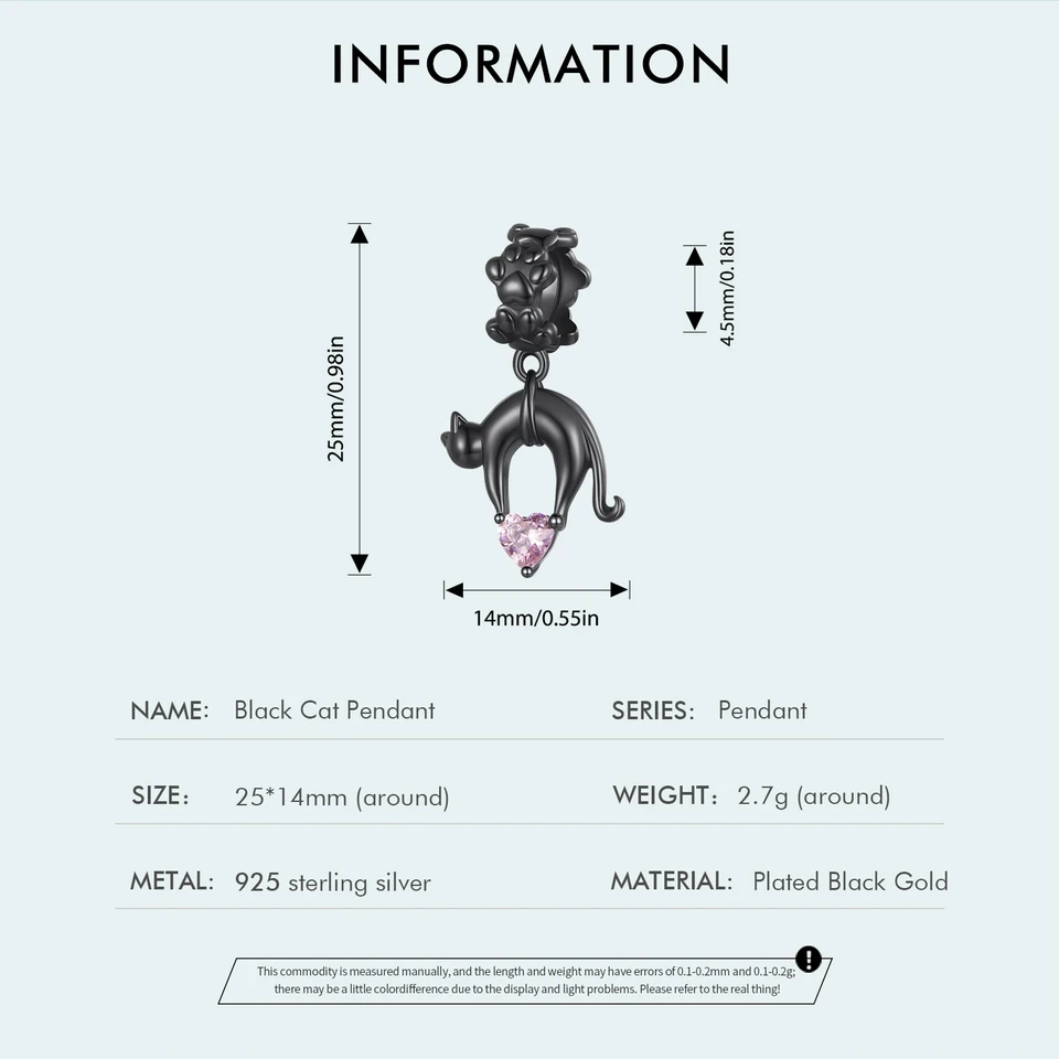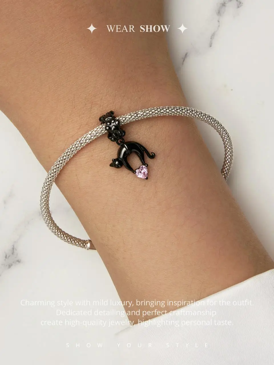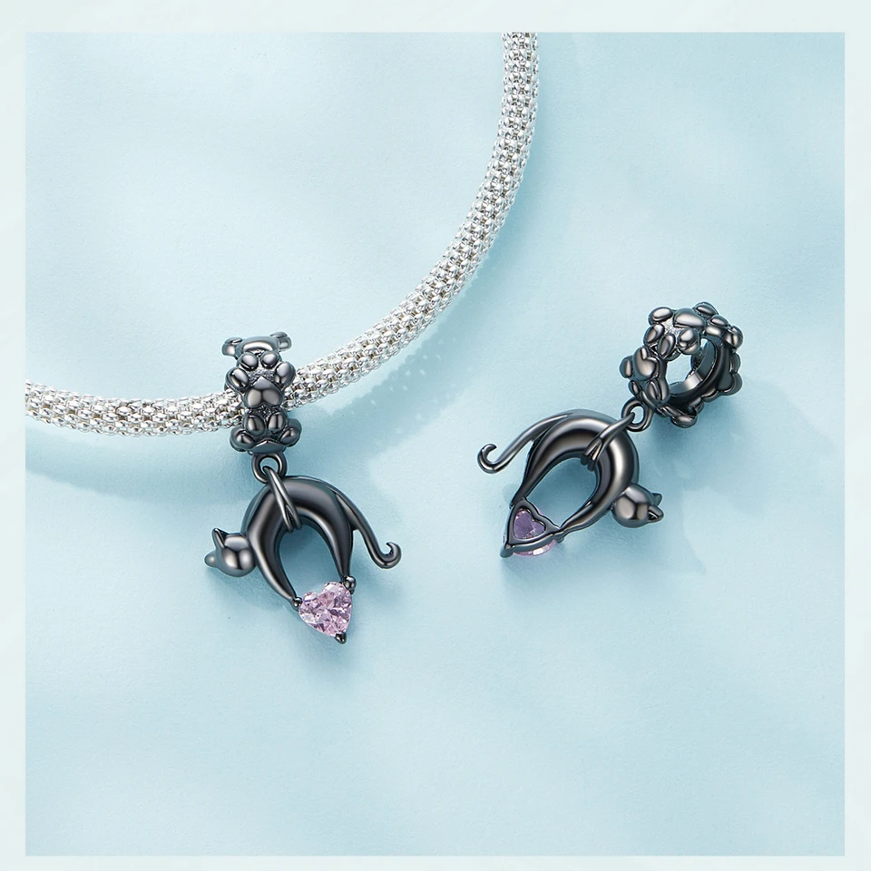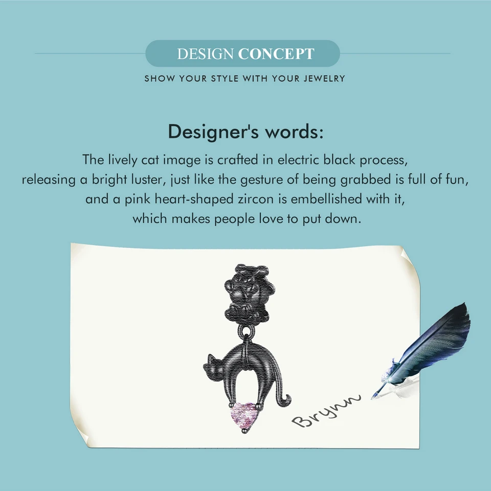 ❤ [Description] The lively cat image is crafted in electric black process, releasing a bright luster, just like the gesture of being grabbed is full of fun, and a pink heart-shaped zircon is embellished with it, which makes people love to put down.