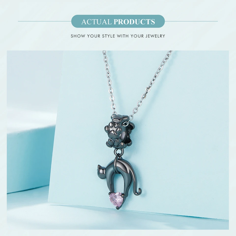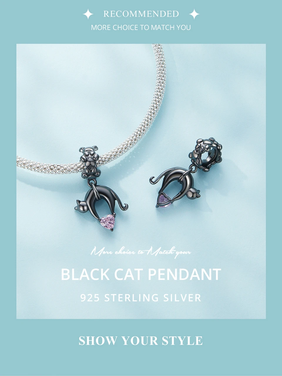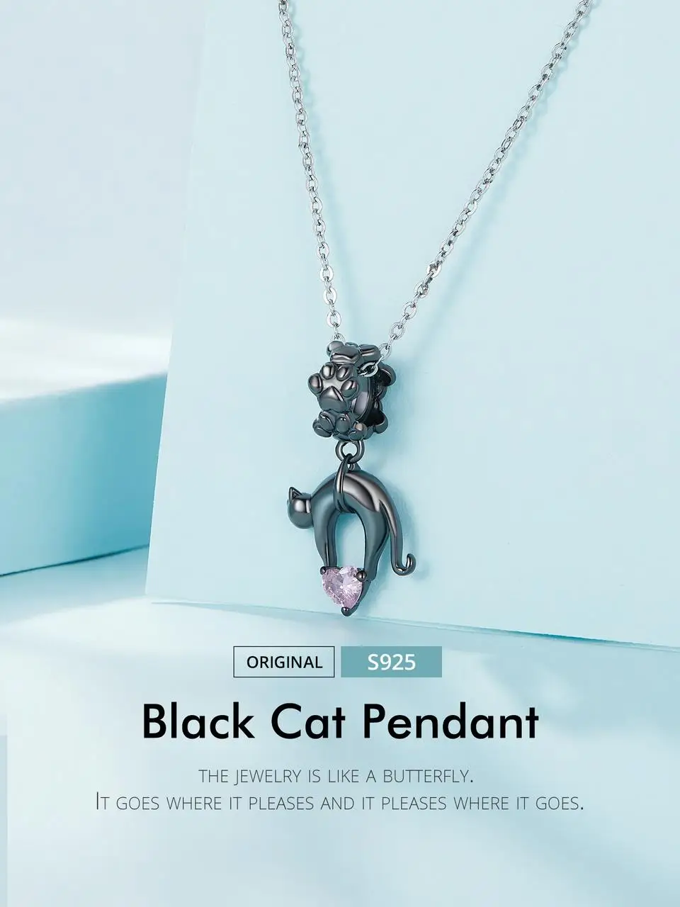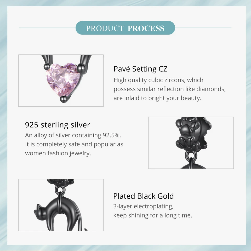 ❤ [Description] The lively cat image is crafted in electric black process, releasing a bright luster, just like the gesture of being grabbed is full of fun, and a pink heart-shaped zircon is embellished with it, which makes people love to put down.