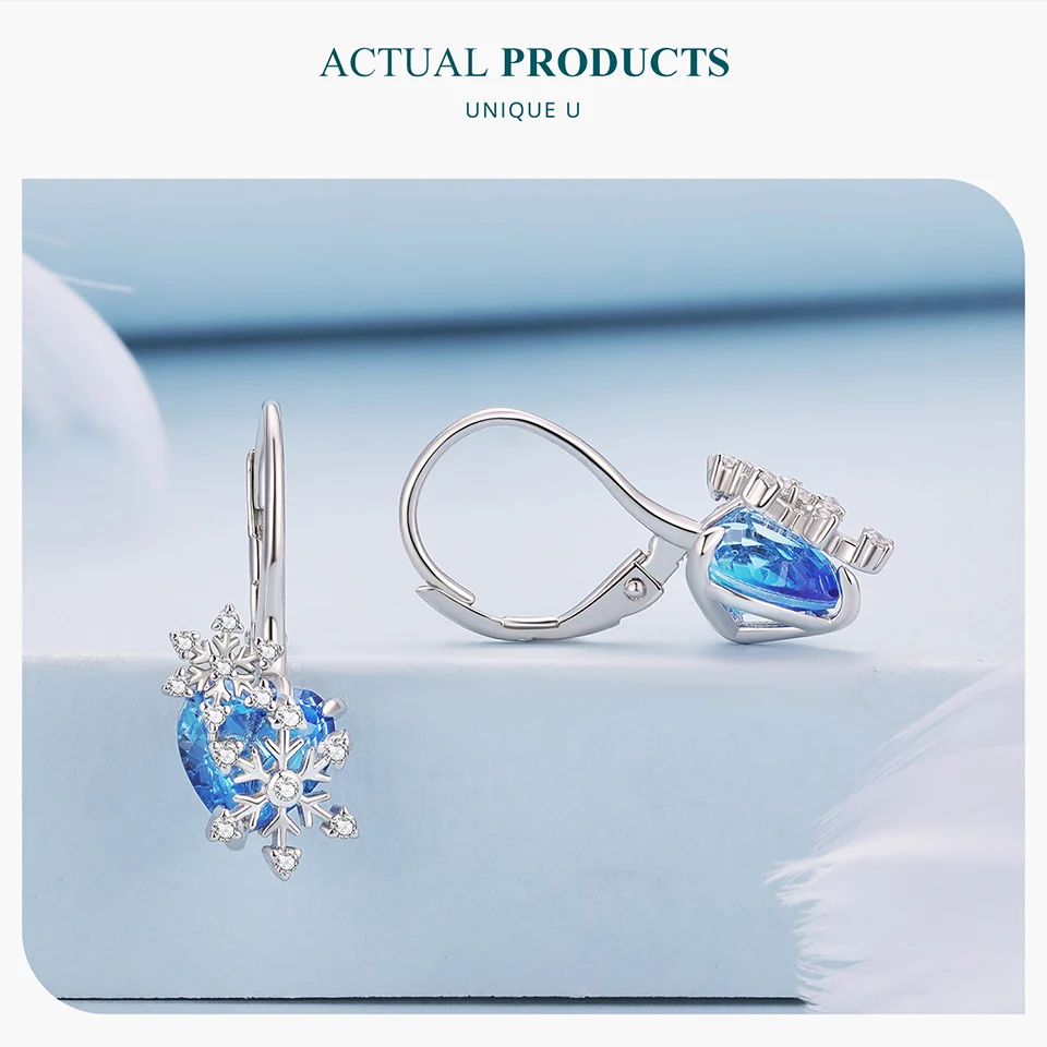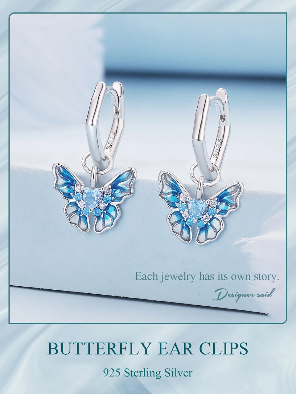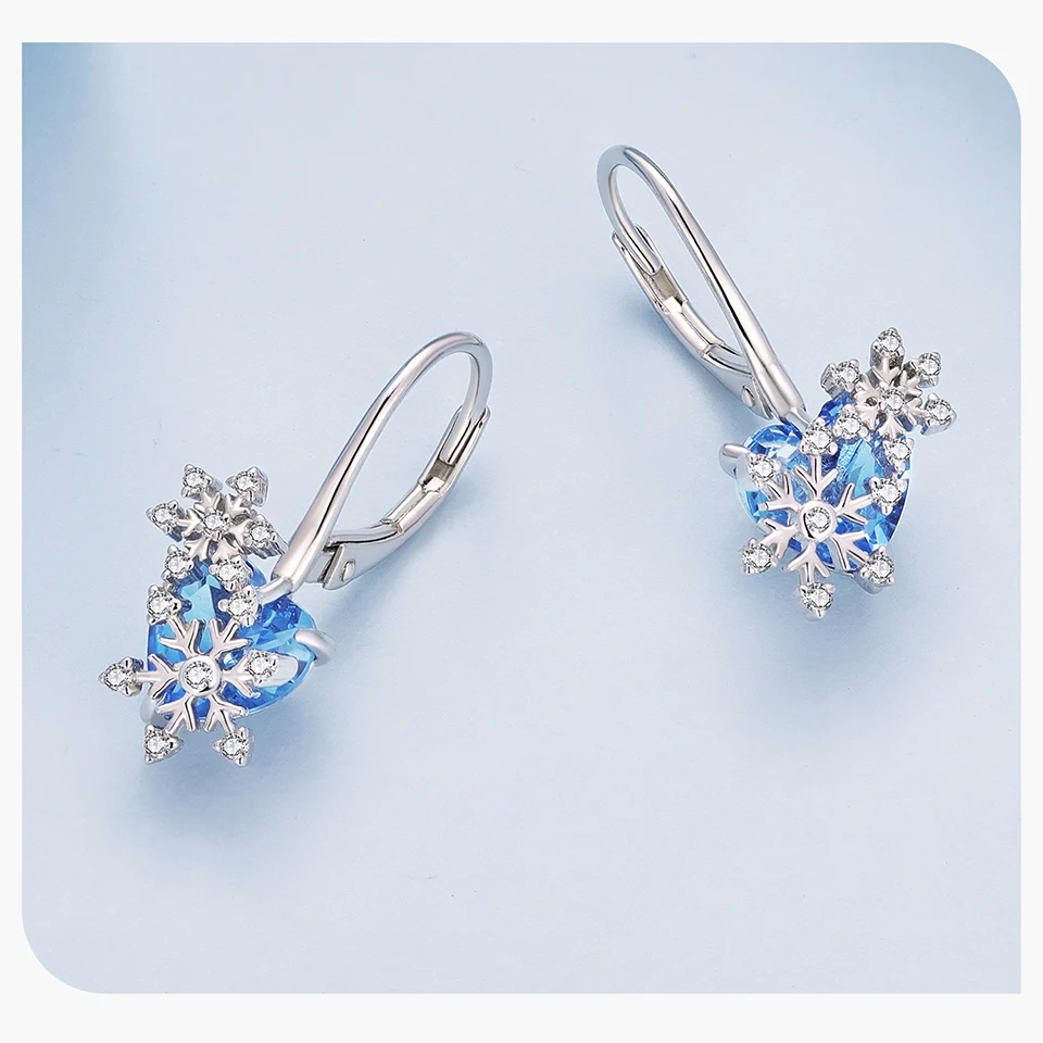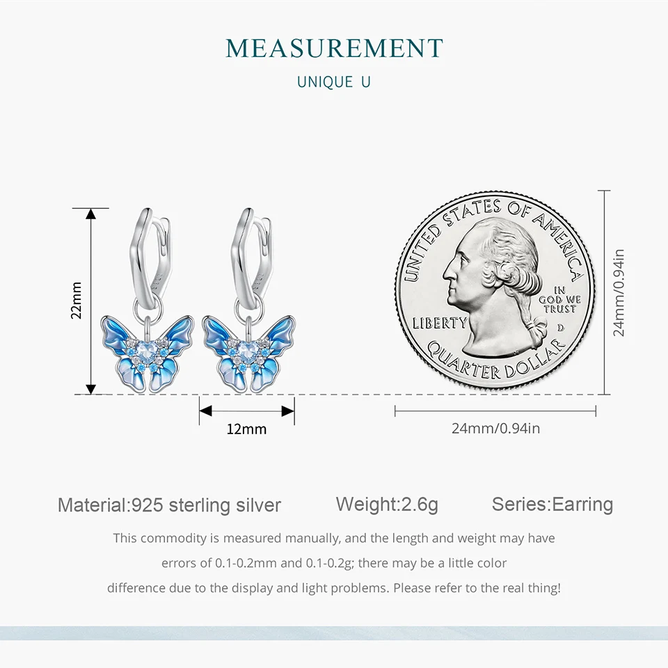 Bamoer 925 Sterling Silver Blue Butterfly Ear Buckles Heart Shape Hoop Earrings for Women Pave Setting CZ Fine Jewelry
