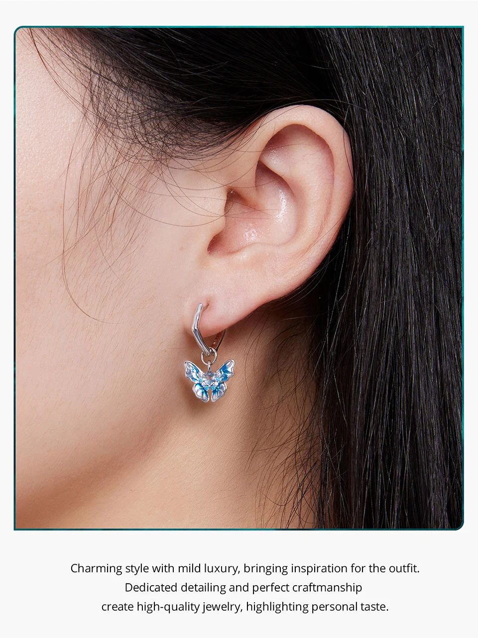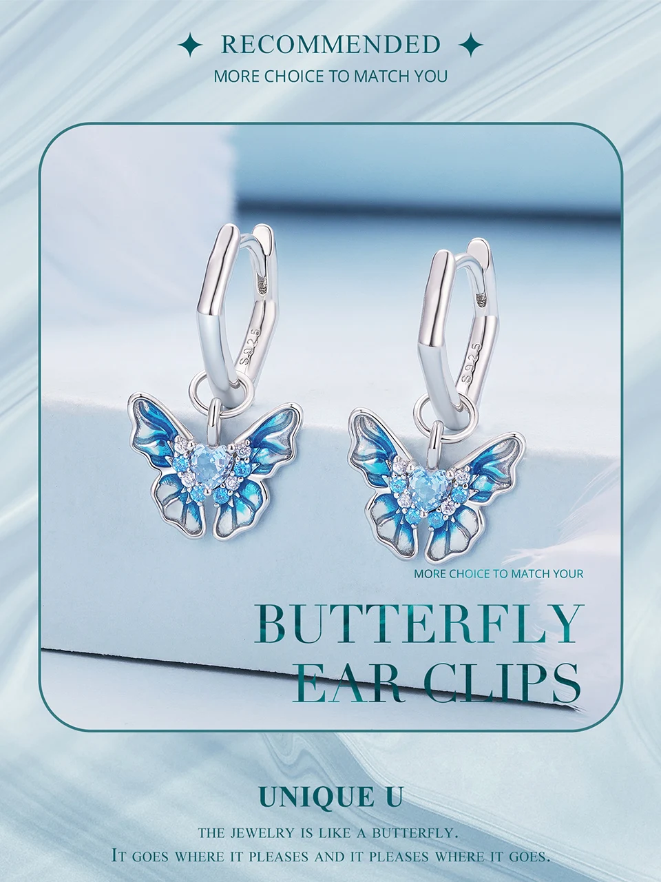 ❤ [Description] The beautiful butterfly with the blue gradient dripping oil process and the sparkling heart-shaped zircon is like the fairy flying freely in the ice and snow, cold and dreamy, leaving infinite space for reverie..