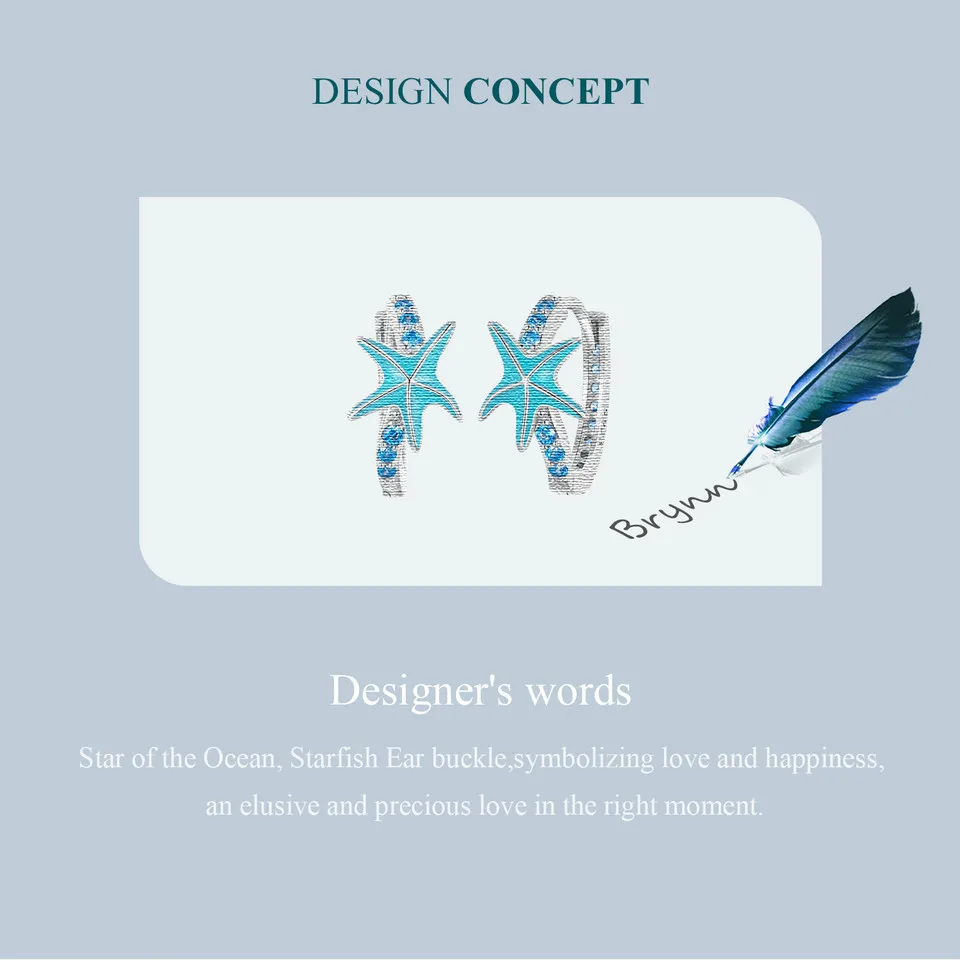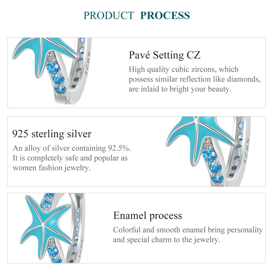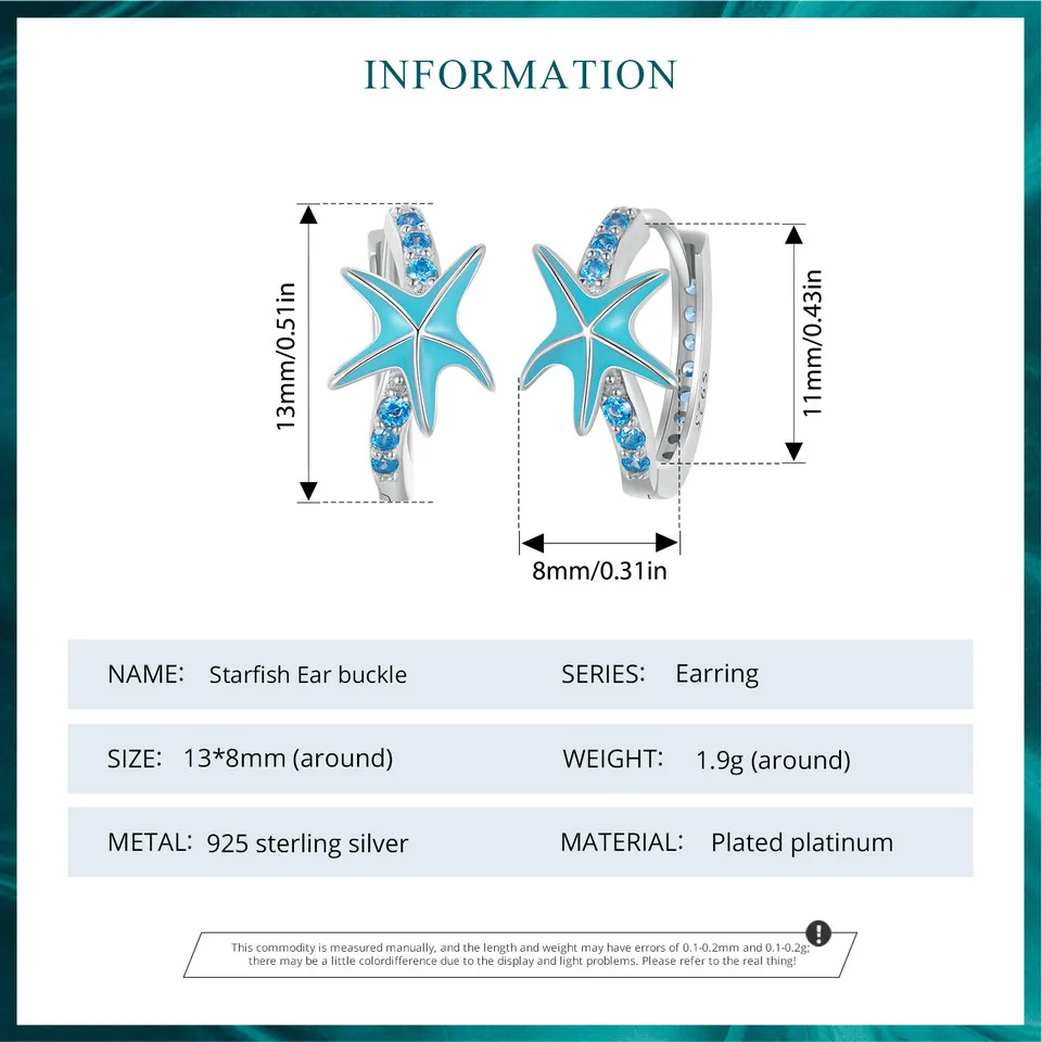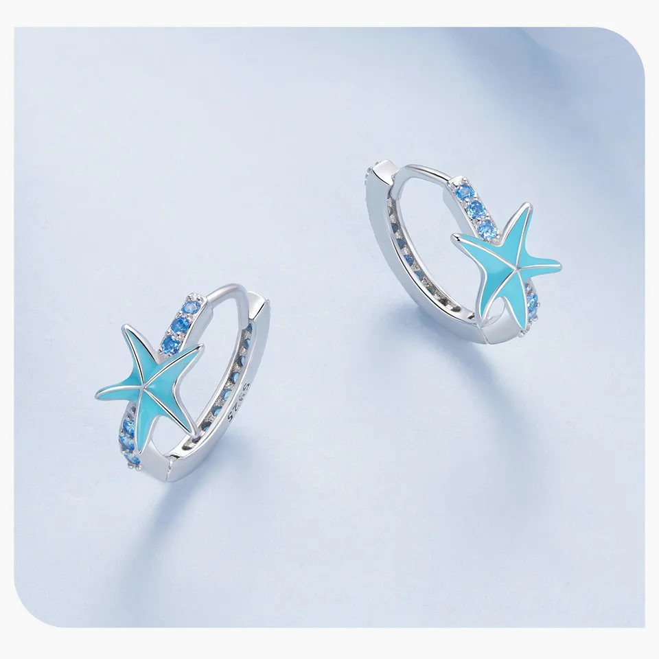 BAMOER 925 Sterling Silver Blue CZ Huggie Hoop Earrings, PlatinumPlated Starfish Earrings for Women Teen Girl Jewelry Gift