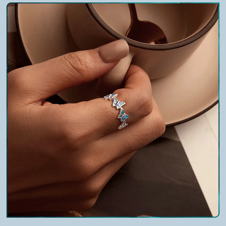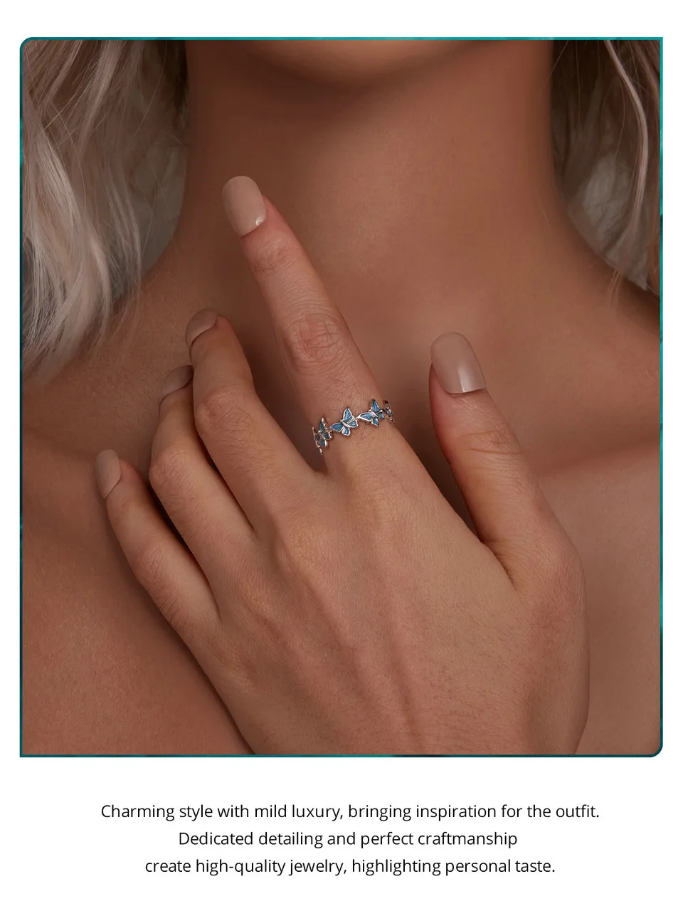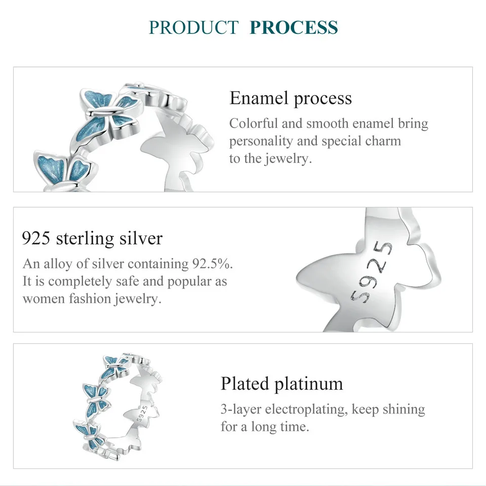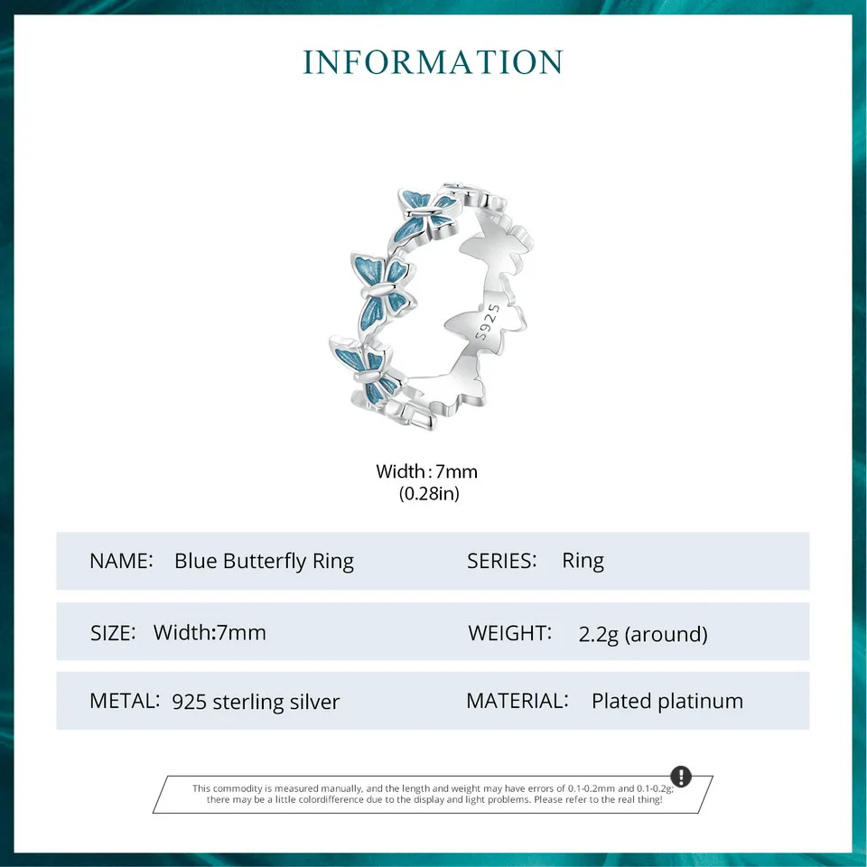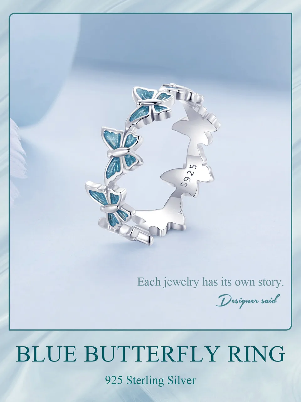 BAMOER 925 Sterling Silver Blue Enamel Mini Butterfly Ring for Women Girls Sweet Fine Jewelry Birthday Gift