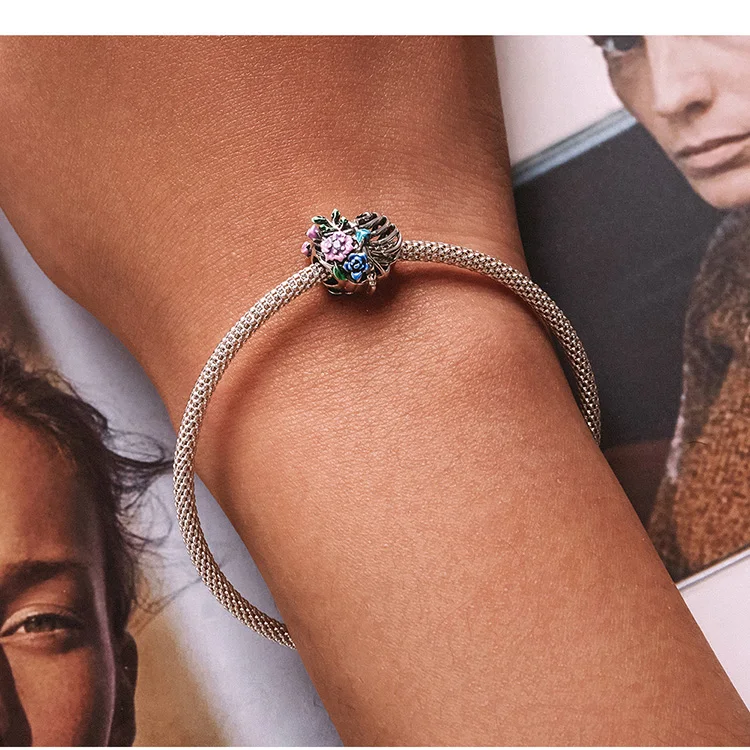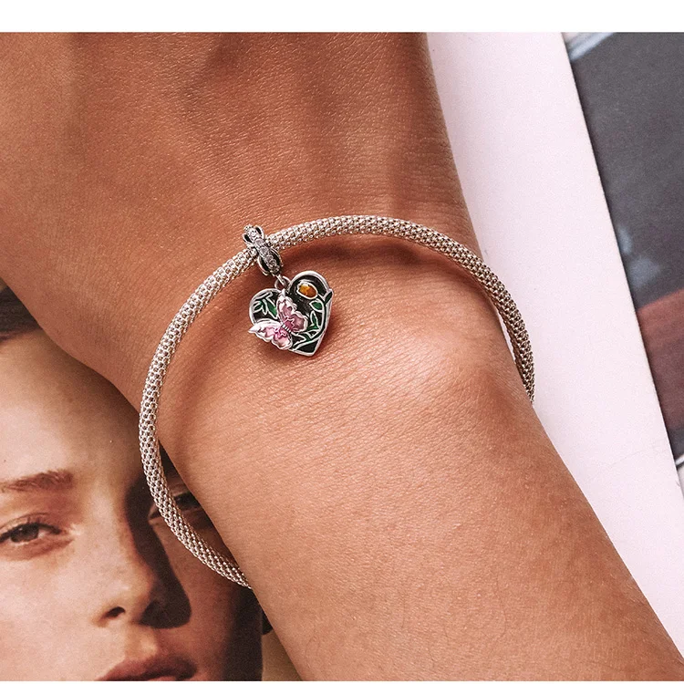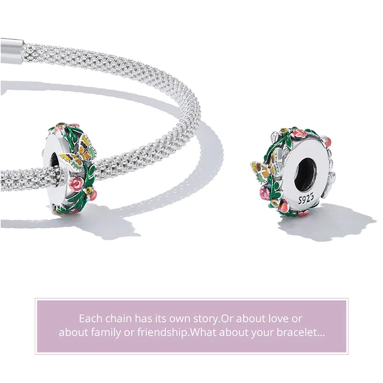 Bamoer 925 Sterling Silver Butterfly & Flower Sapcer Beads fit for Women Bracelet & Bangle Spring Collection Charms Fine Jewelry