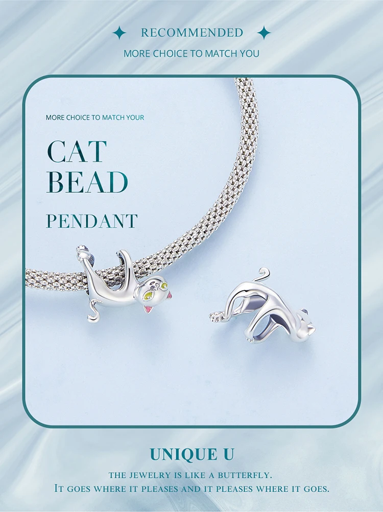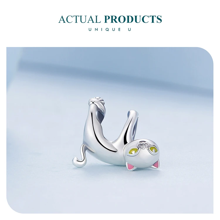 ❤ [Description] The lovely cat bead is full of texture and luster. The cat's head is decorated with pink and yellow enamel, which is smart and cute.