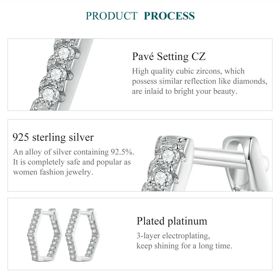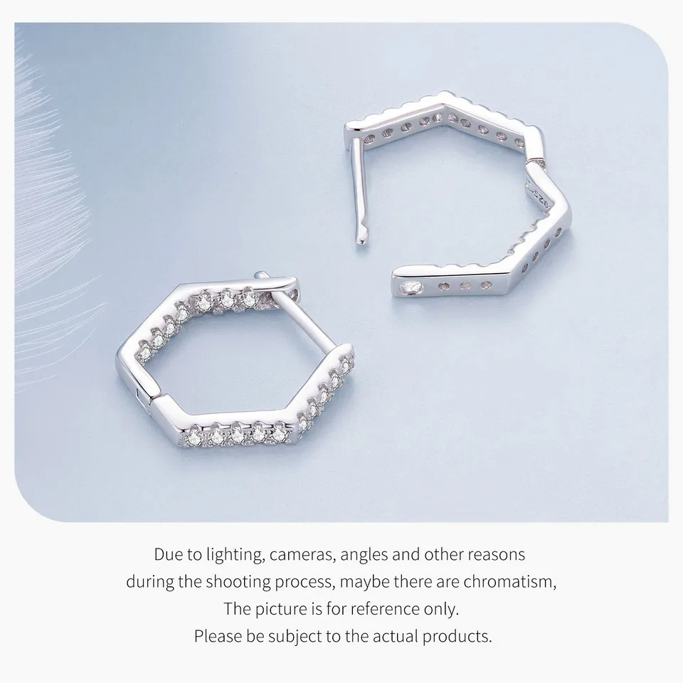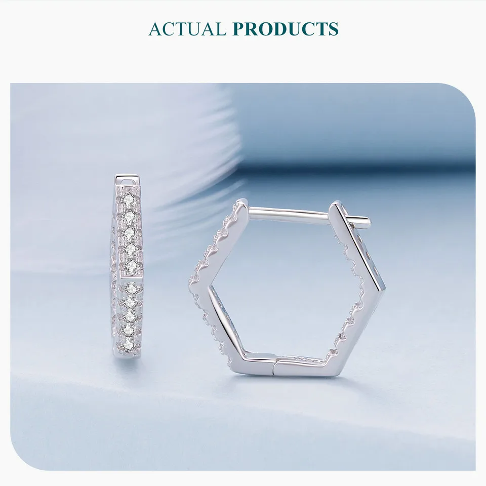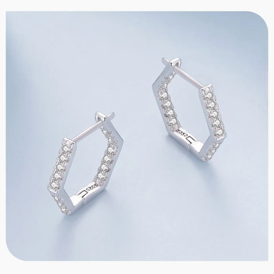 Bamoer 925 Sterling Silver Classic Zircon Ear Buckles Hexagonal Hoop Earrings for Women Elegant Fine Jewelry BSE917