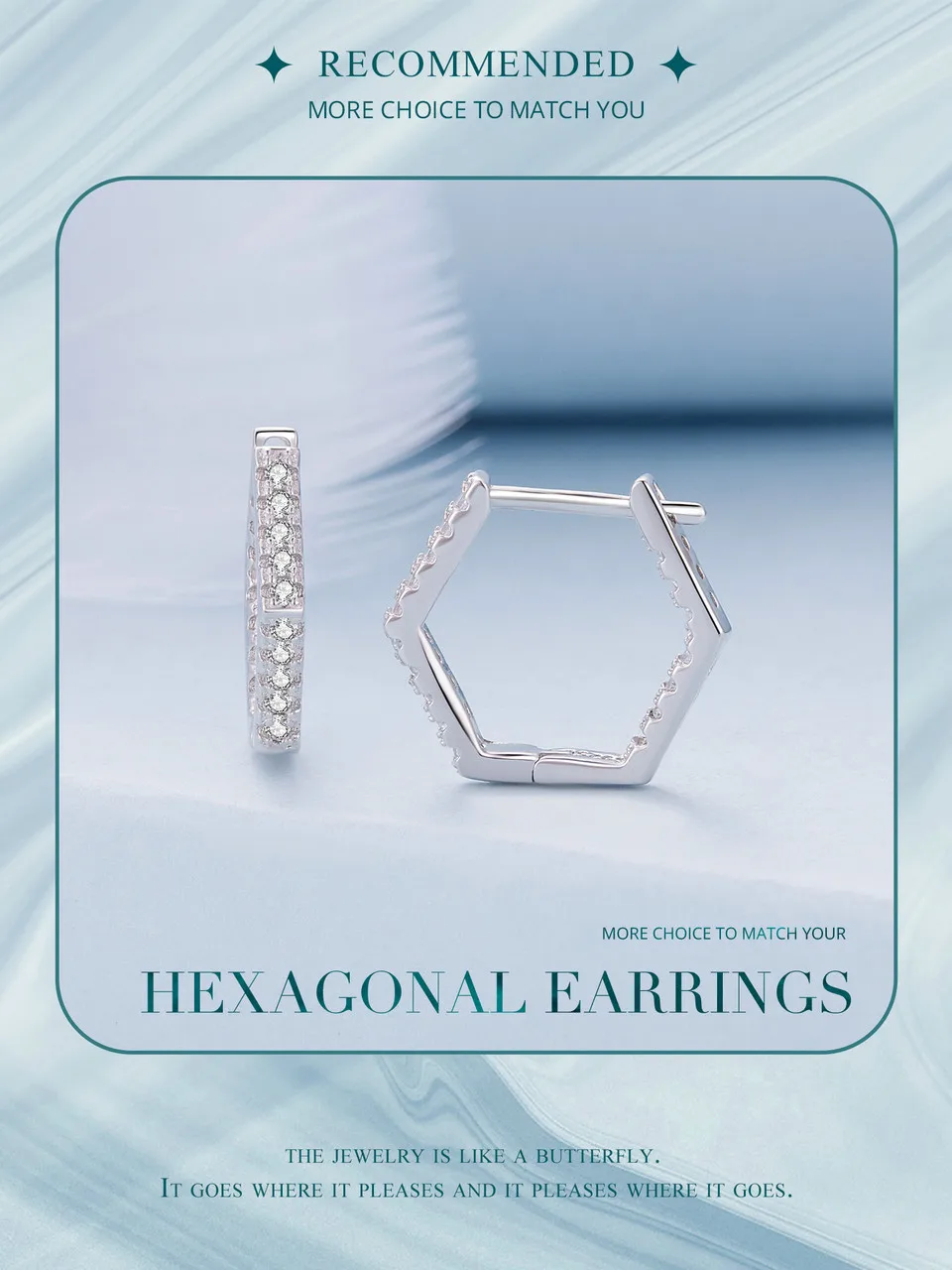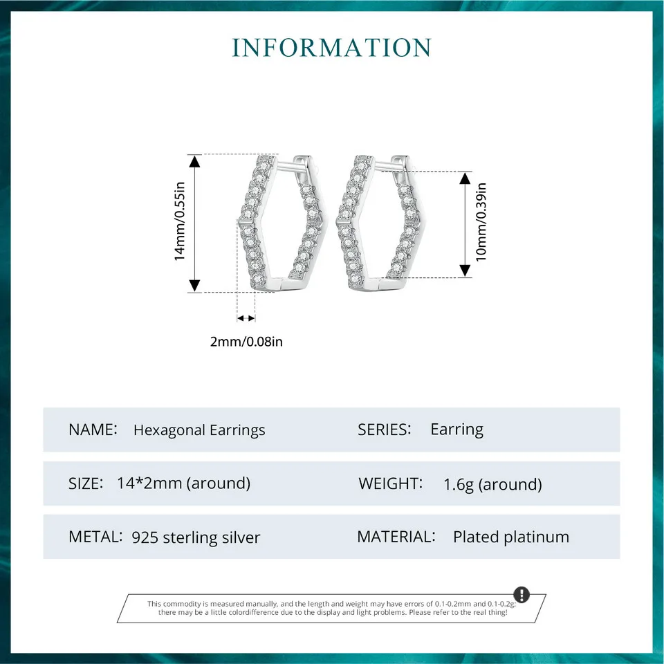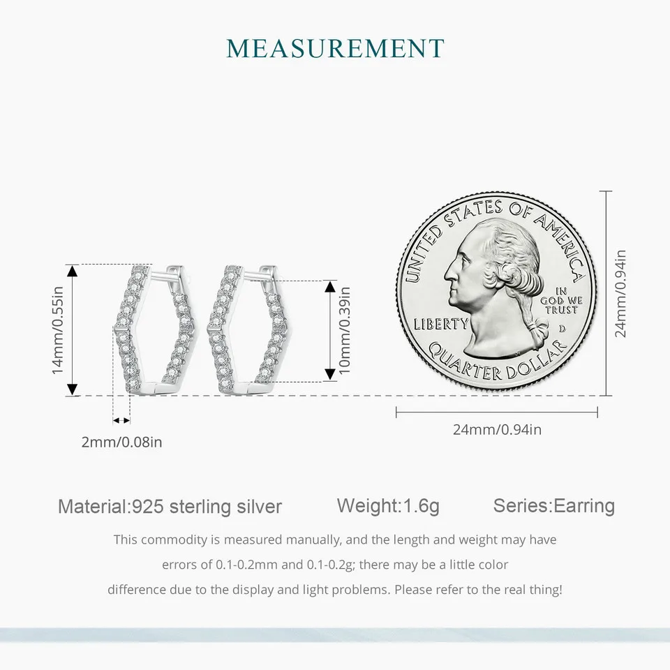 Bamoer 925 Sterling Silver Classic Zircon Ear Buckles Hexagonal Hoop Earrings for Women Elegant Fine Jewelry BSE917