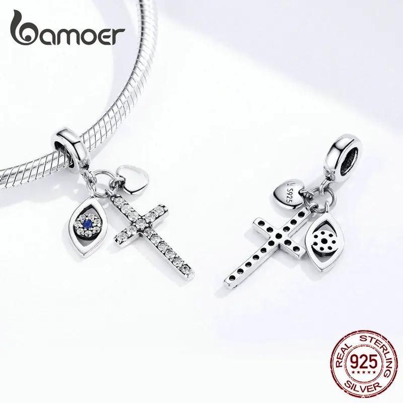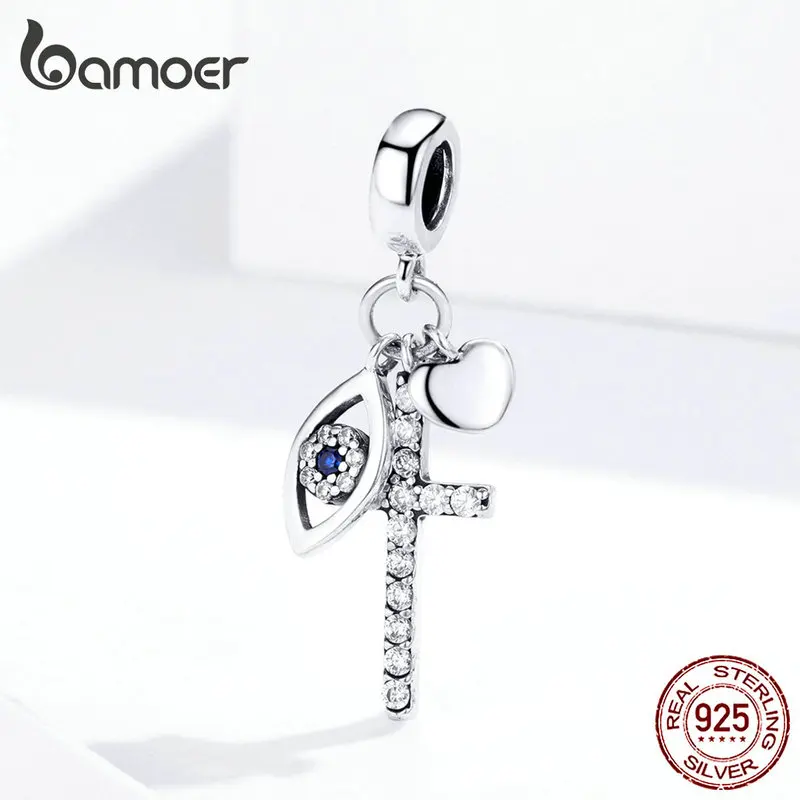 Bamoer 925 Sterling Silver Cross Pendant fit for Women Original Bracelet & Bangle Fine Jewelery Eyes Charms DIY Making