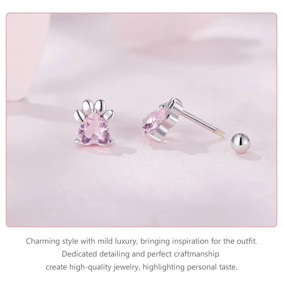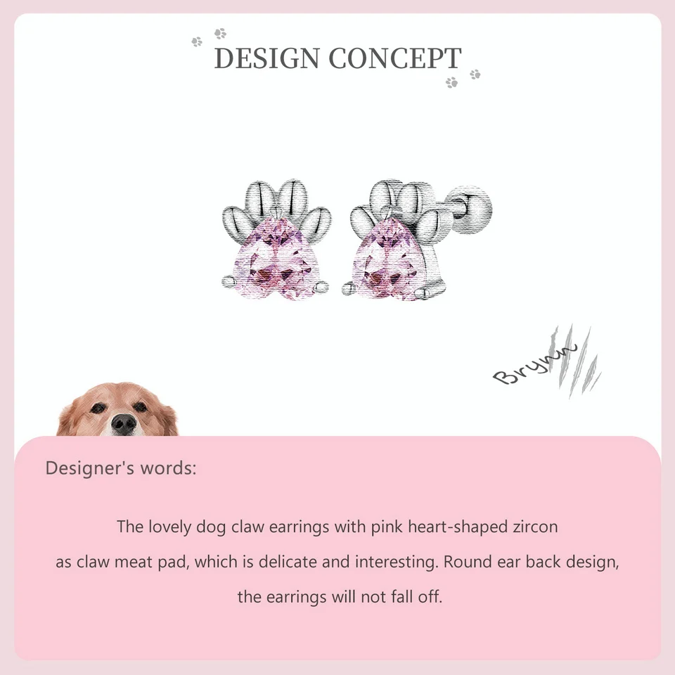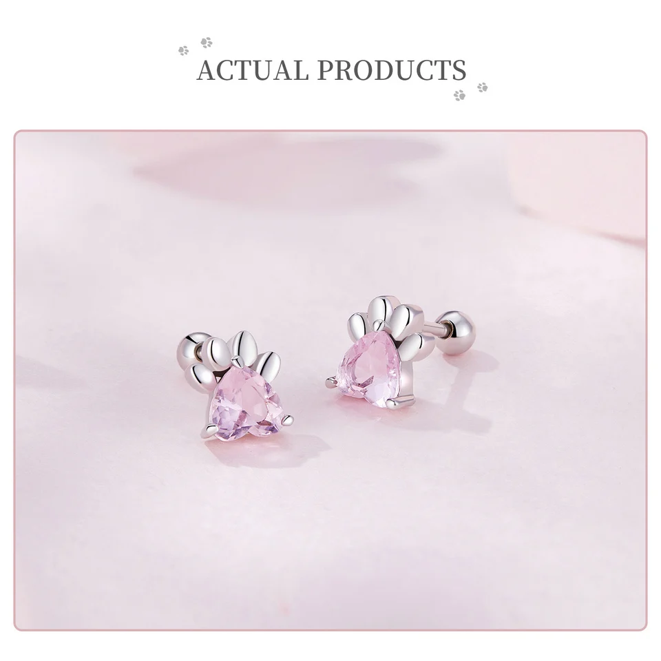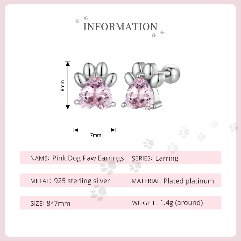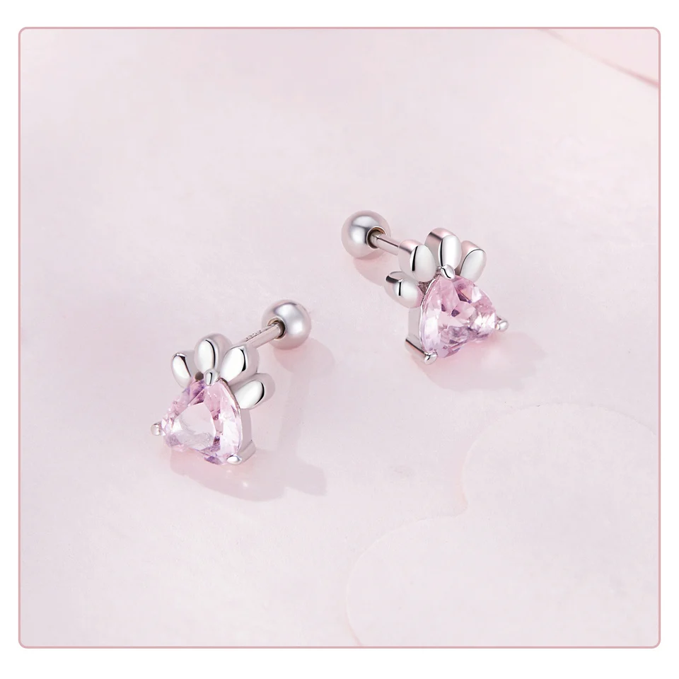 ❤ [Description] The lovely dog claw earrings with pink heart-shaped zircon as claw meat pad, which is delicate and interesting. Round ear back design, the earrings will not fall off.