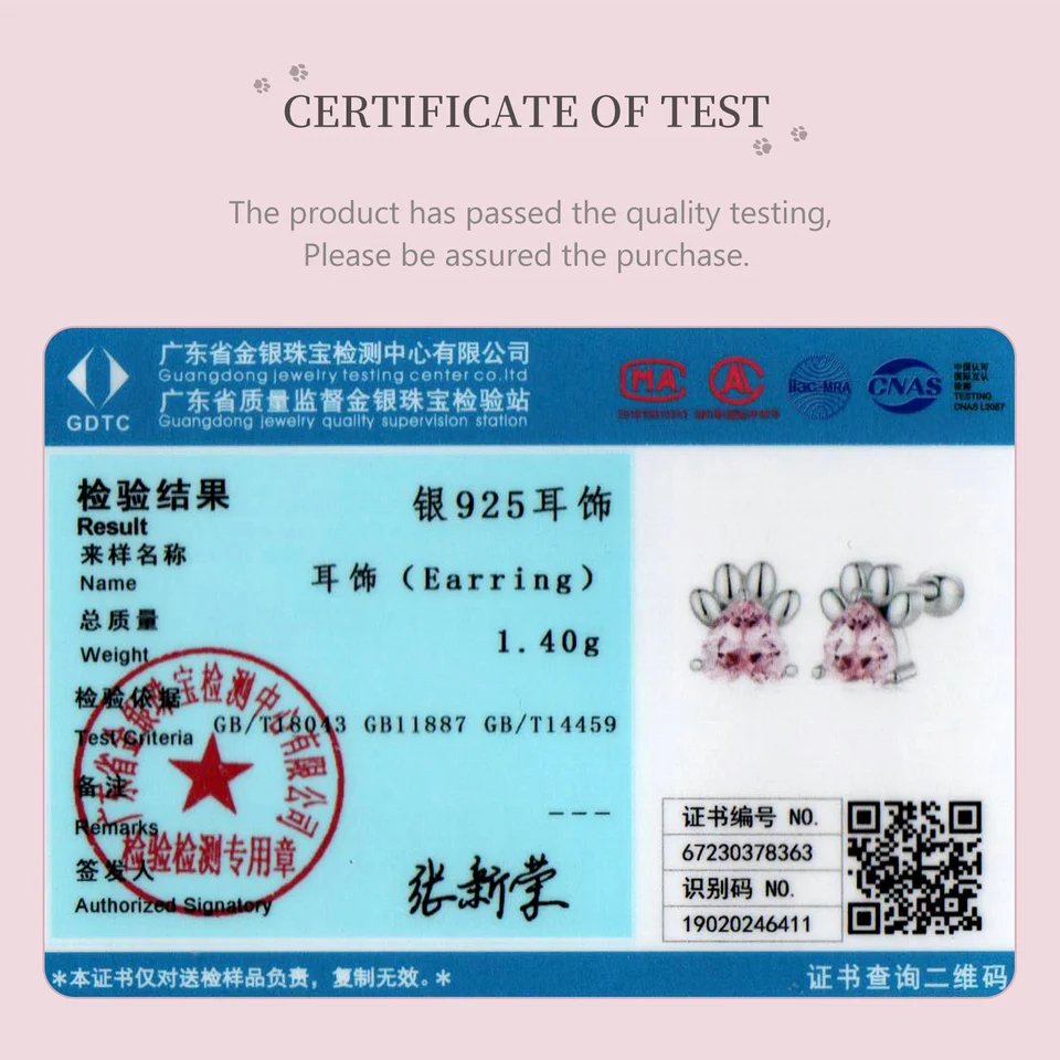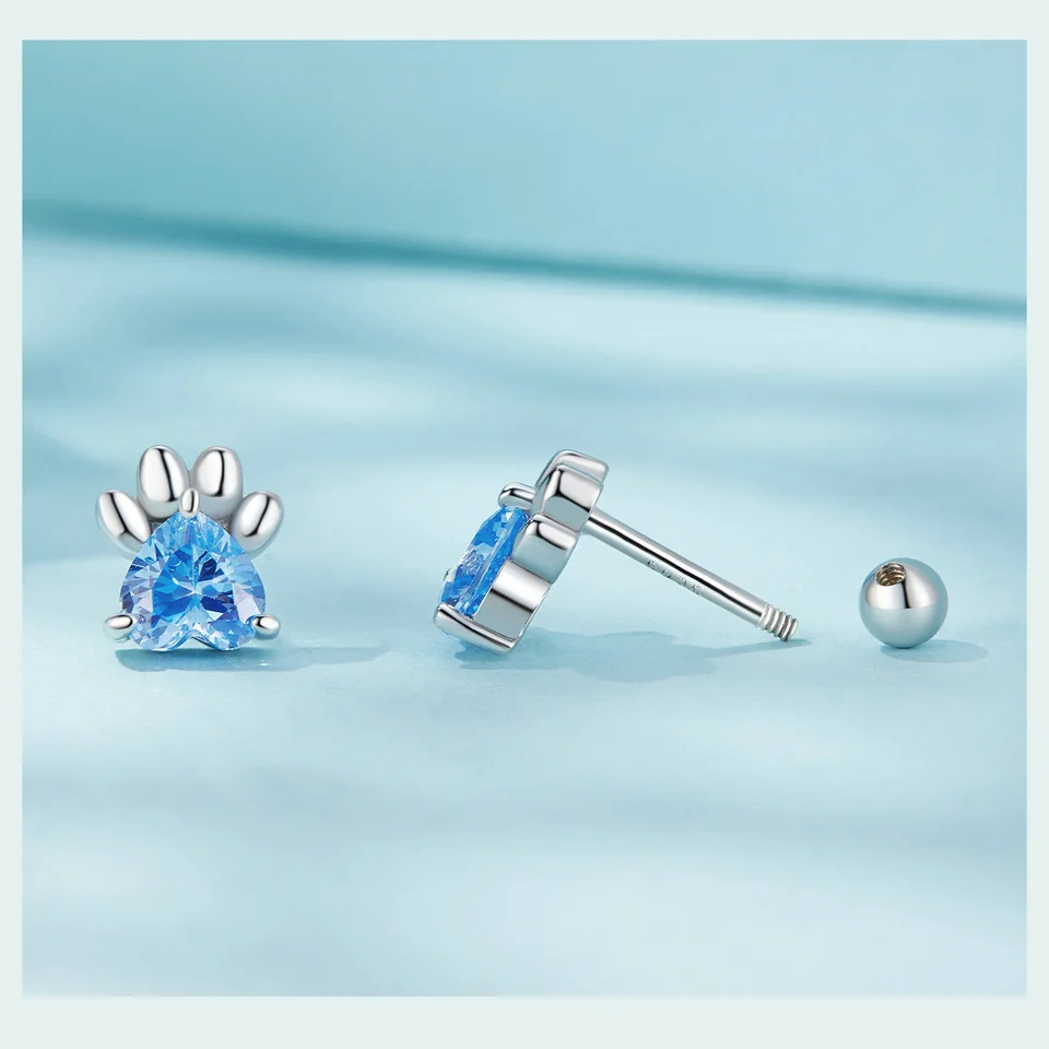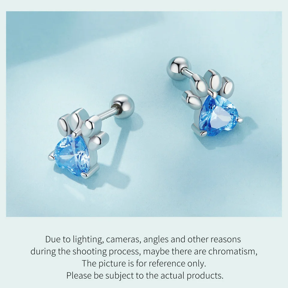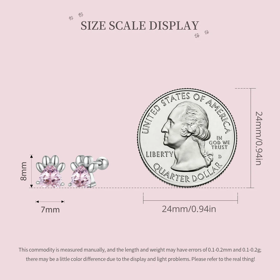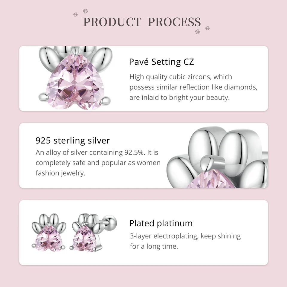 ❤ [Description] The lovely dog claw earrings with pink heart-shaped zircon as claw meat pad, which is delicate and interesting. Round ear back design, the earrings will not fall off.