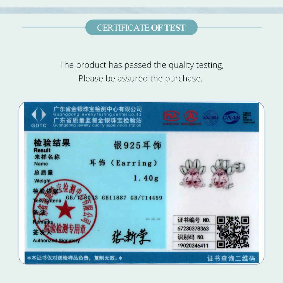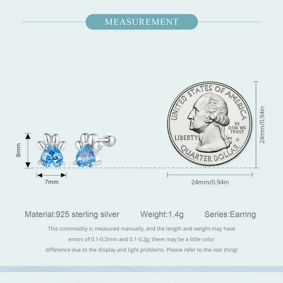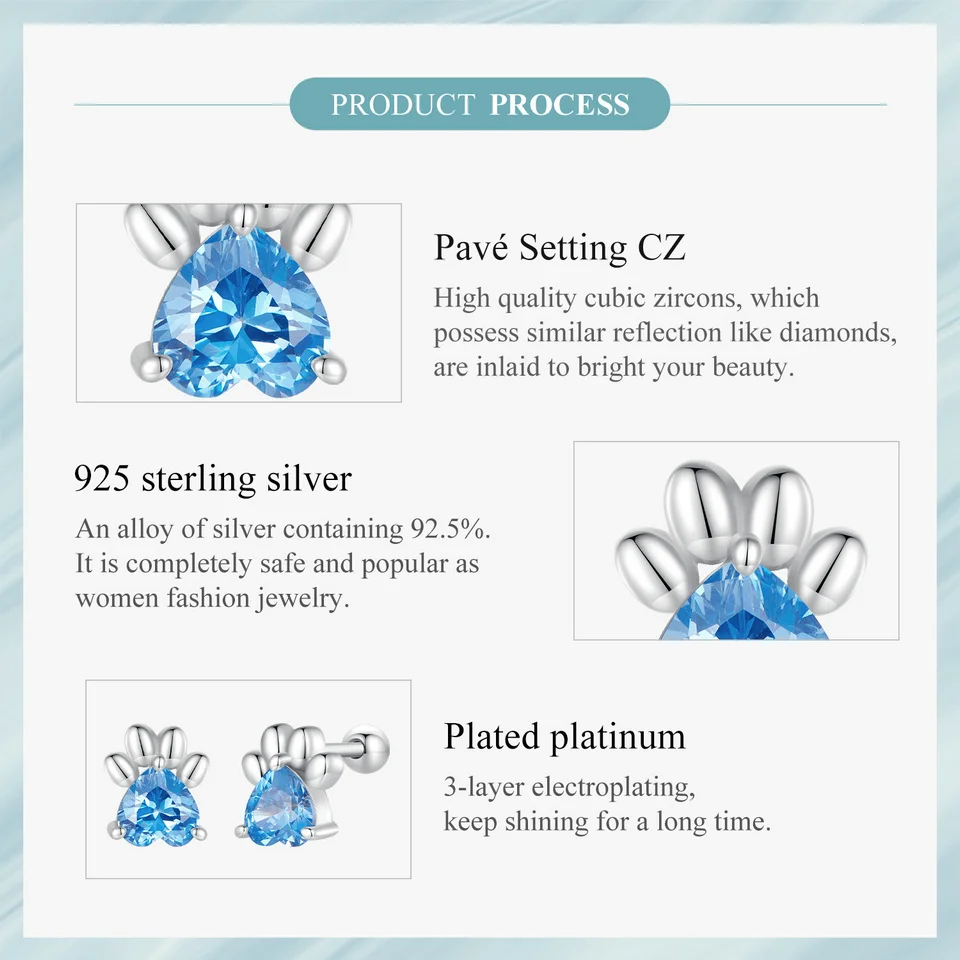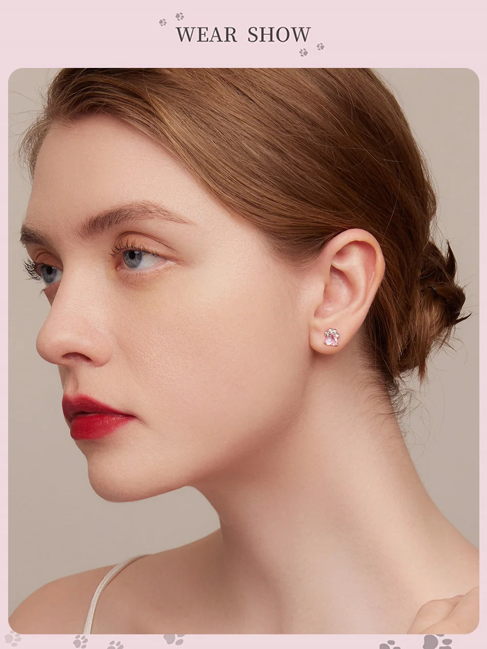 ❤ [Description] The lovely dog claw earrings with pink heart-shaped zircon as claw meat pad, which is delicate and interesting. Round ear back design, the earrings will not fall off.