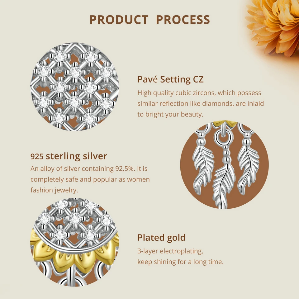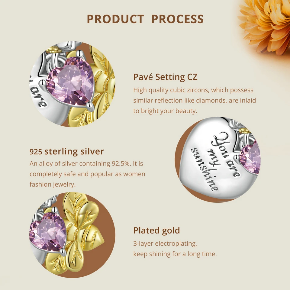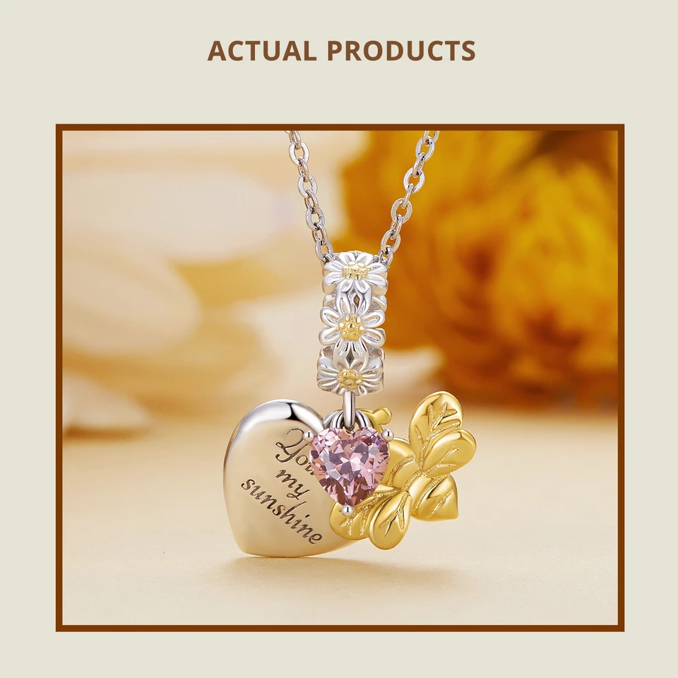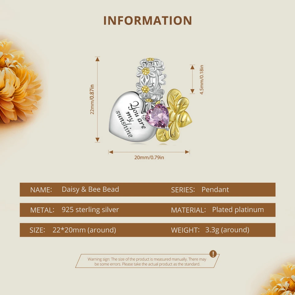 Bamoer 925 Sterling Silver Daisy Heart Beads Sunflower Pendant Charms for Women Bracelet and Necklace DIY Fine Jewelry