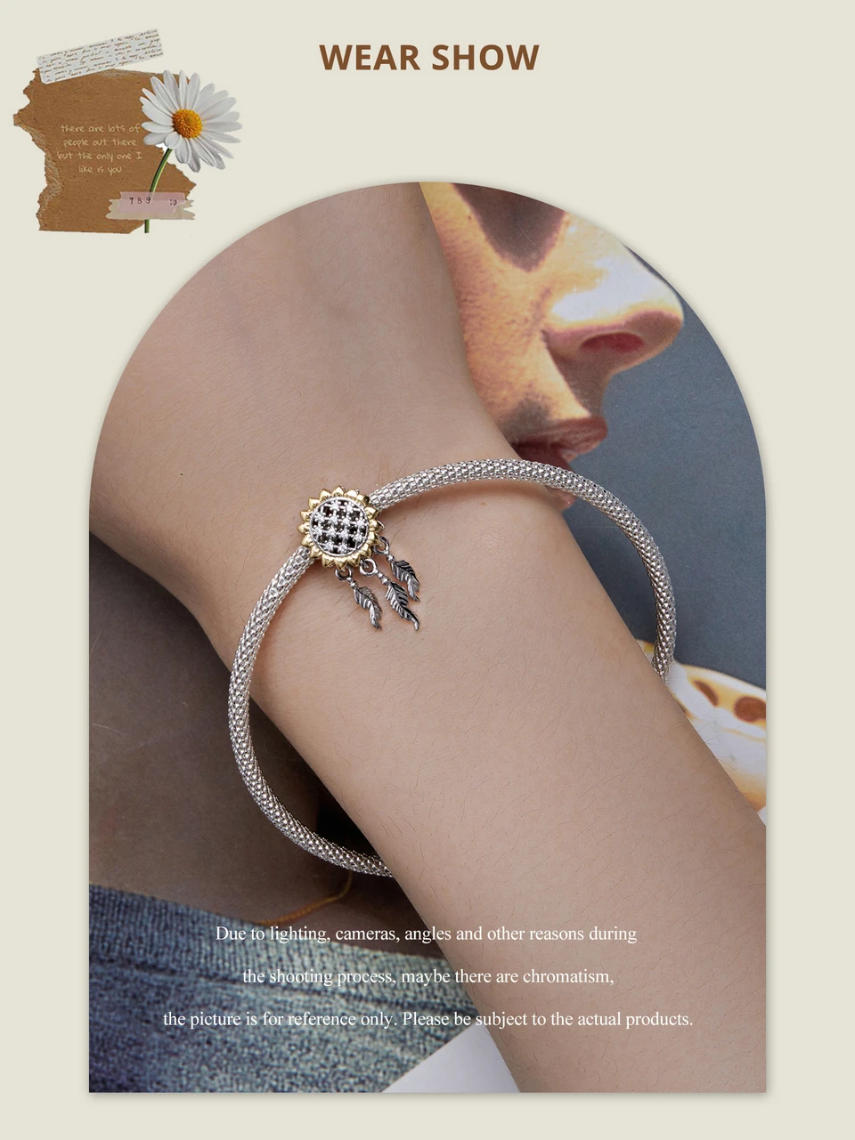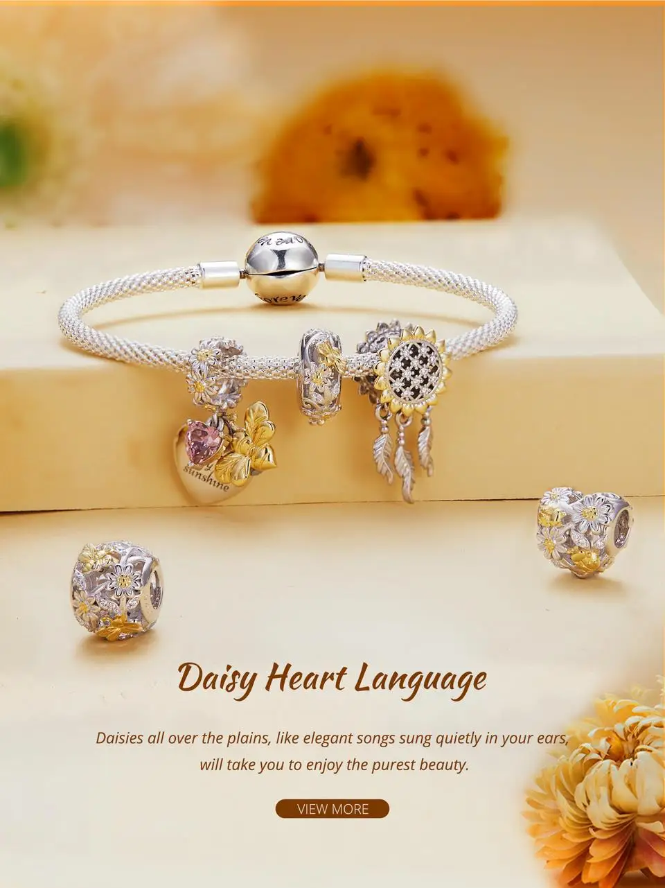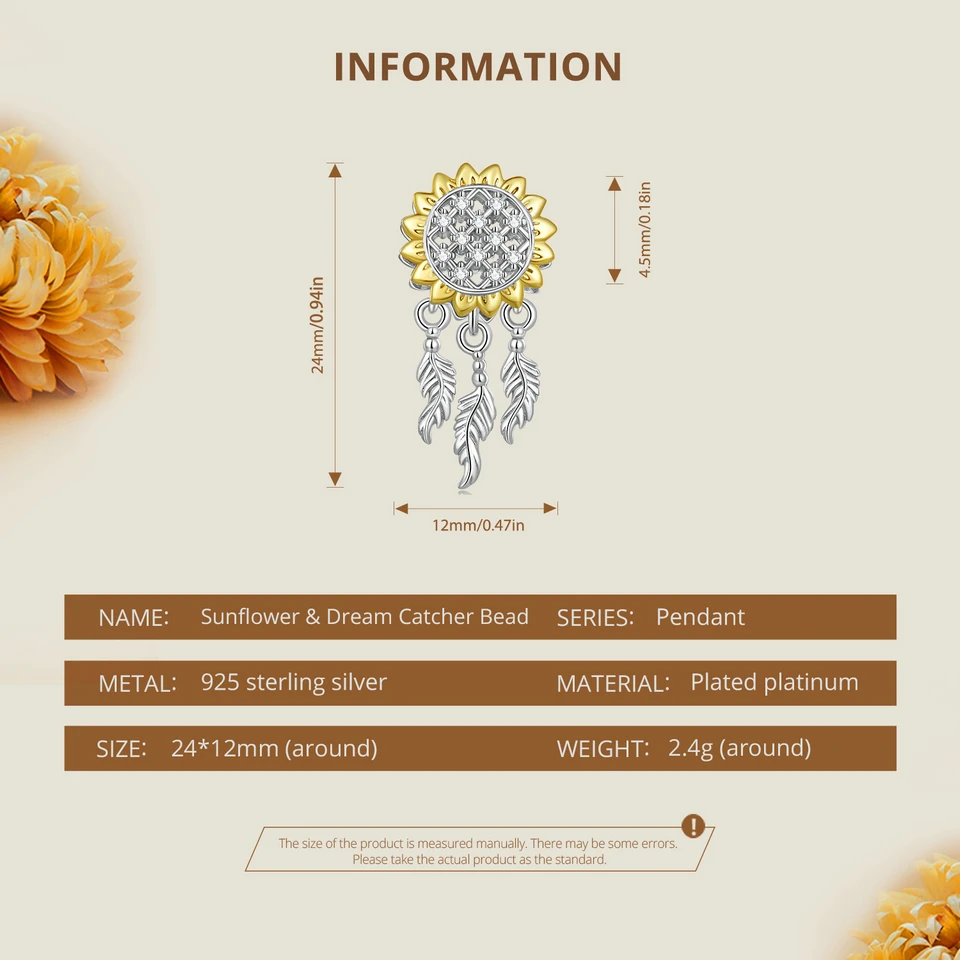 Bamoer 925 Sterling Silver Daisy Heart Beads Sunflower Pendant Charms for Women Bracelet and Necklace DIY Fine Jewelry