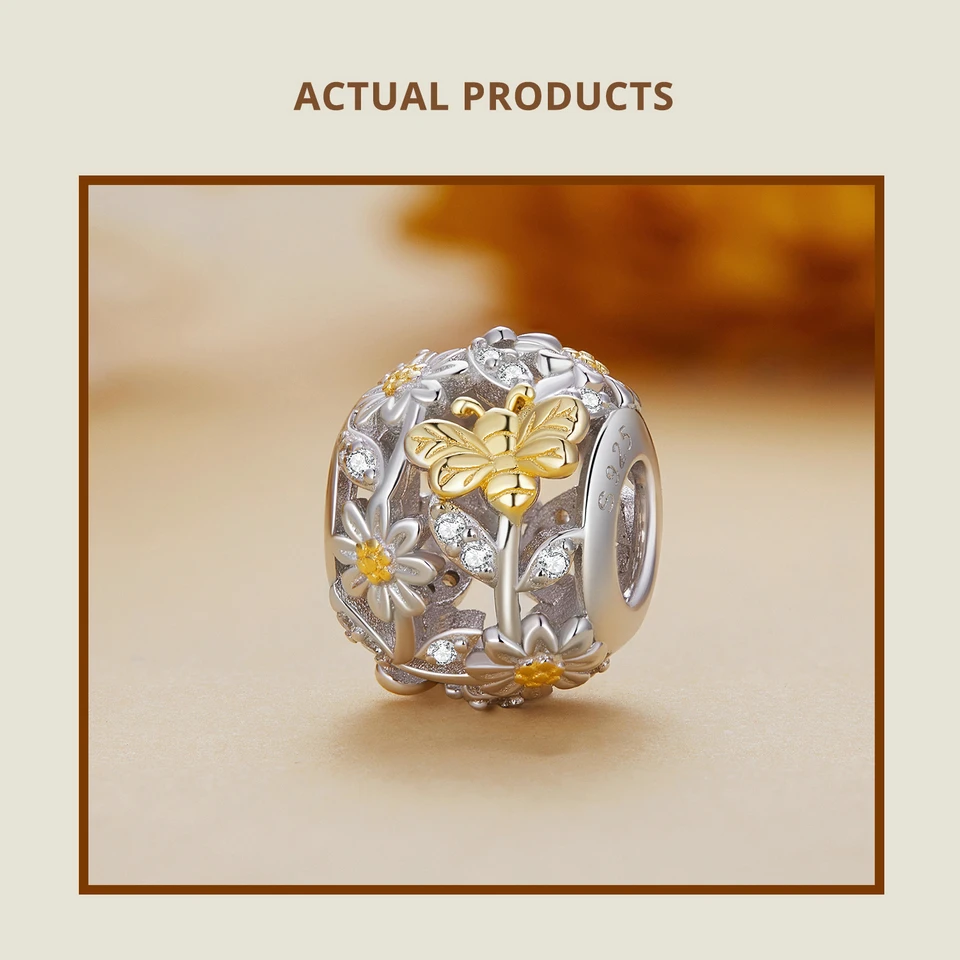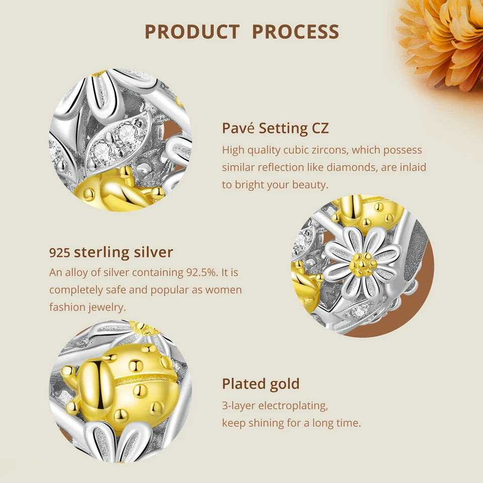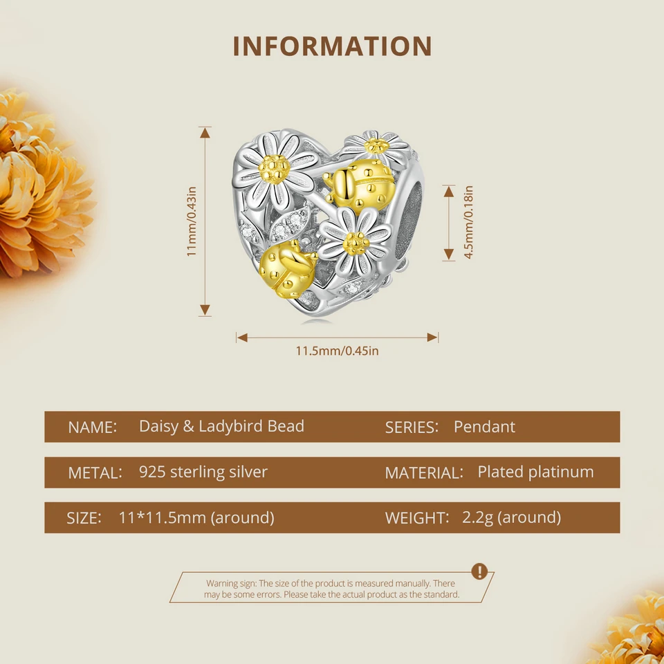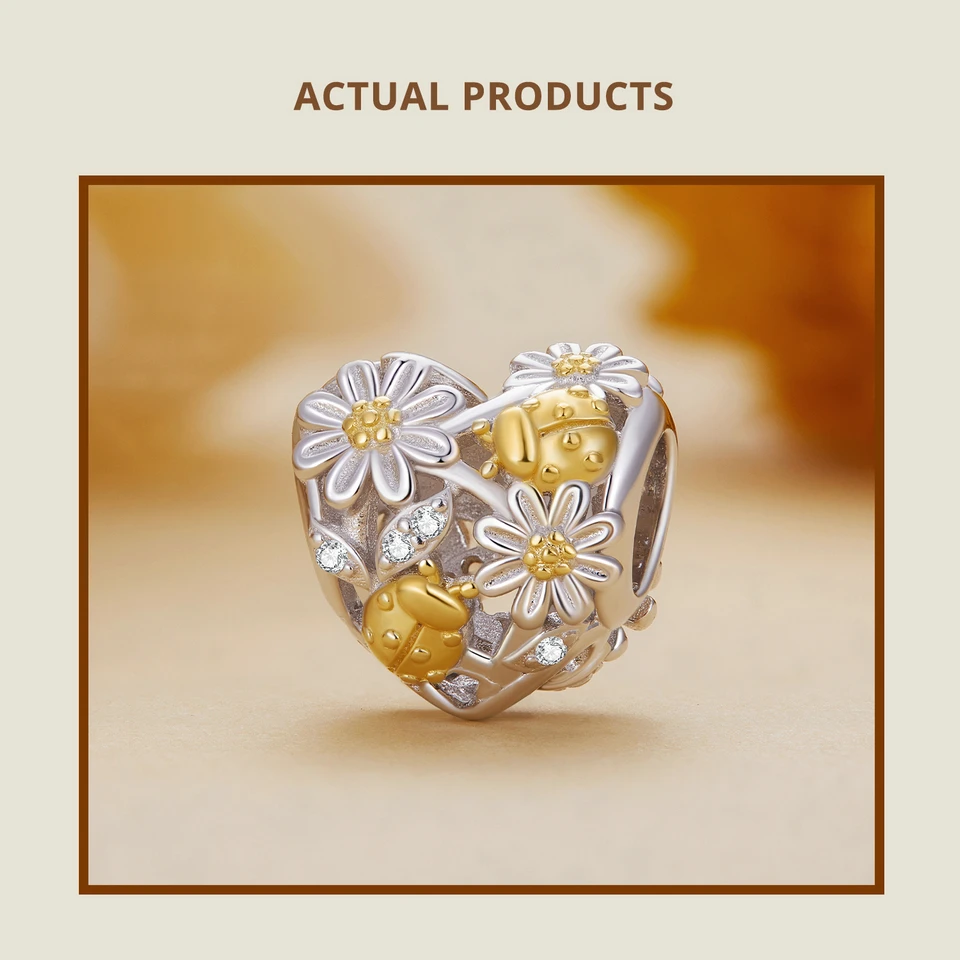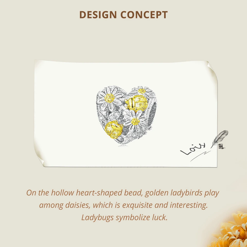 ❤ [Description] On the hollow heart-shaped bead, golden ladybirds play among daisies, which is exquisite and interesting. Ladybugs symbolize luck.