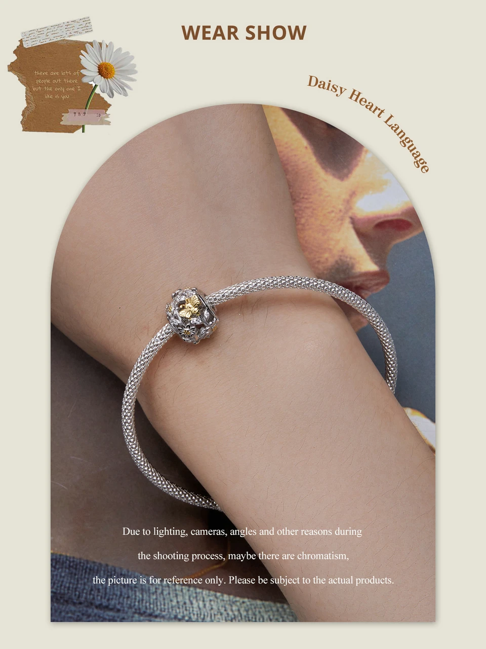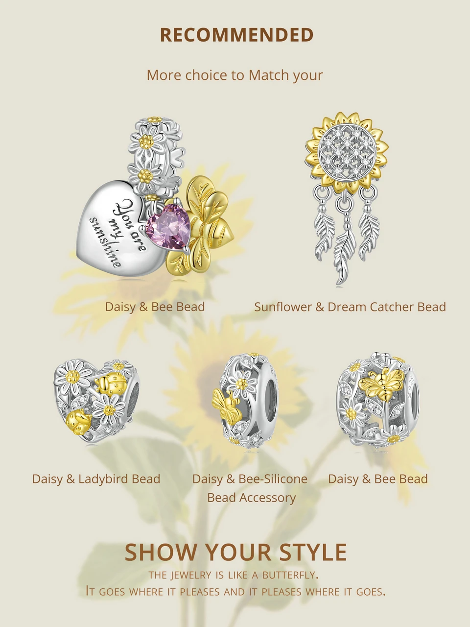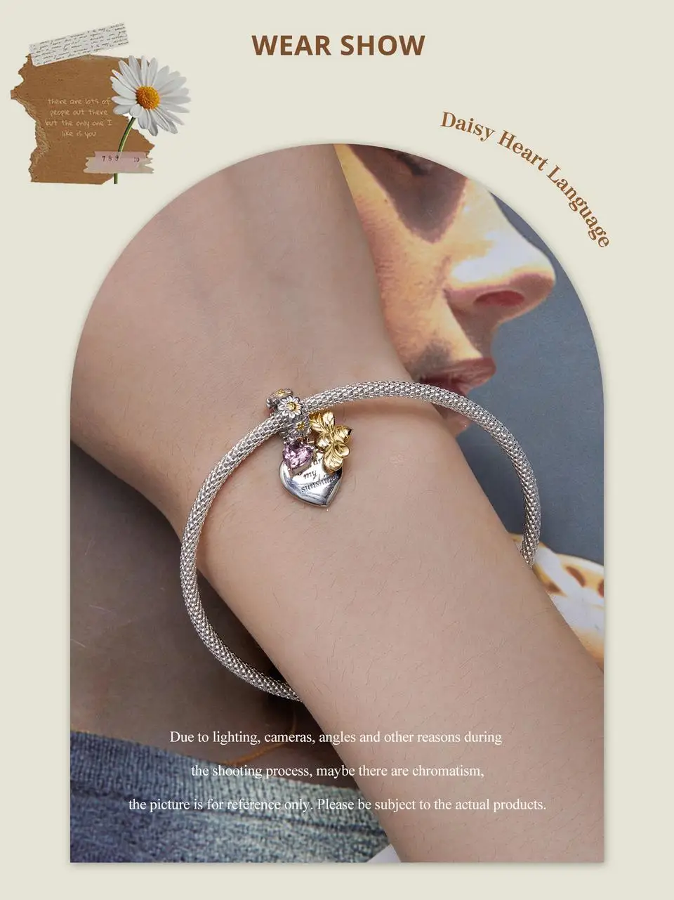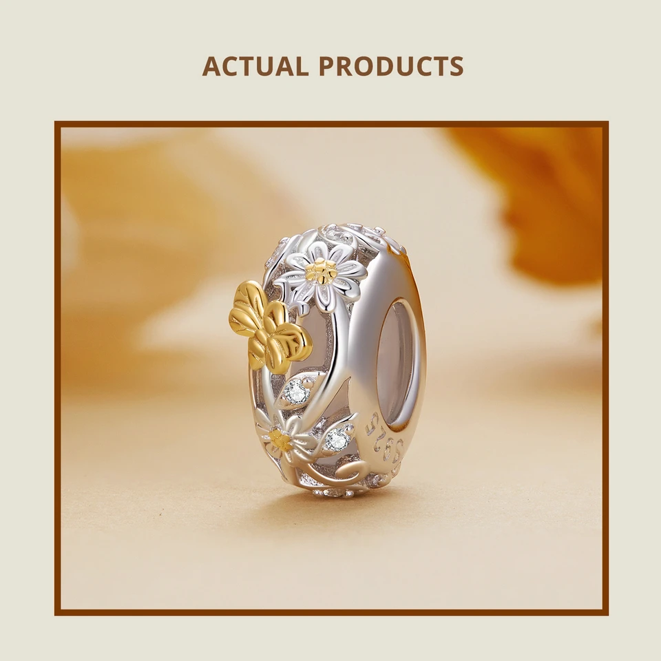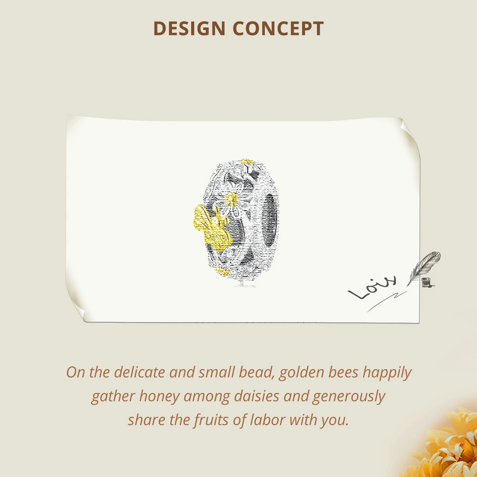 ❤ [Description] On the hollow heart-shaped bead, golden ladybirds play among daisies, which is exquisite and interesting. Ladybugs symbolize luck.