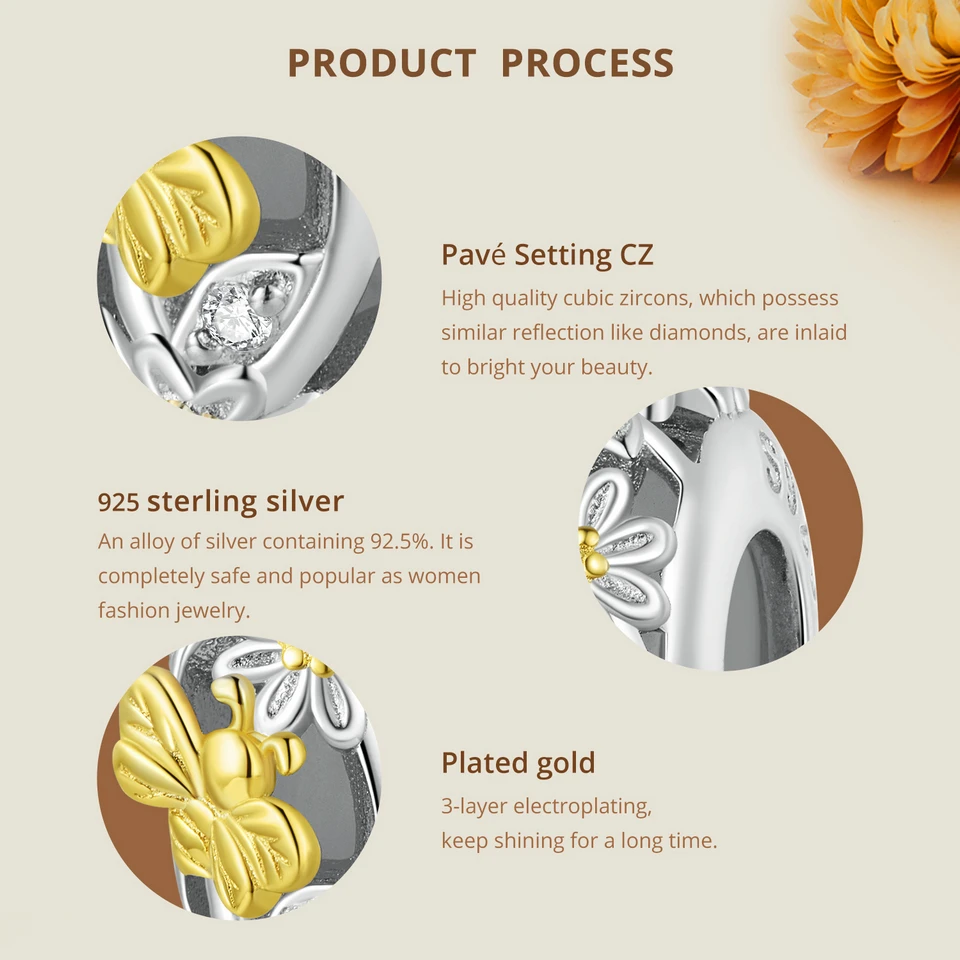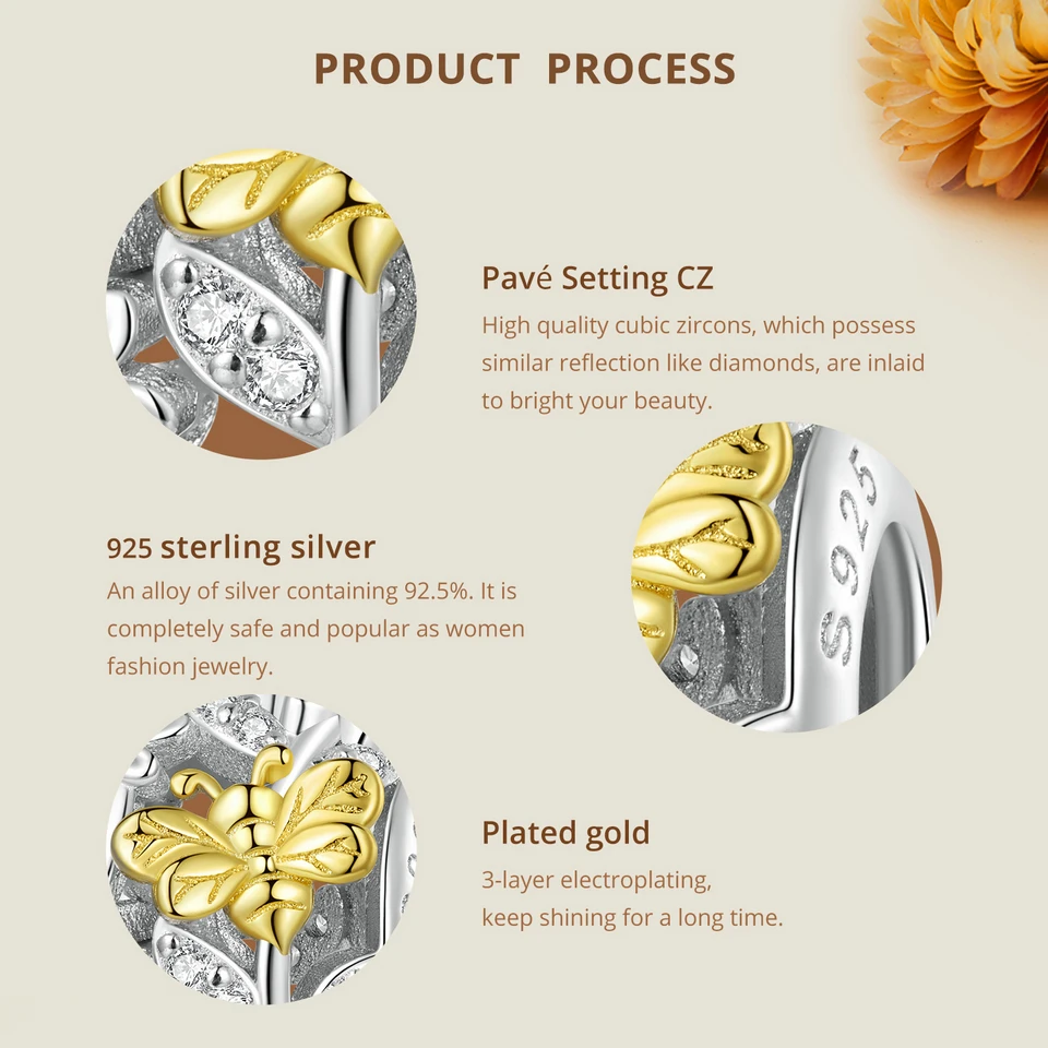 ❤ [Material] 925 Sterling Silver & Pavé Setting CZ & Plated platinum & Plated gold, this silver charm is Nickel-free, Lead-free, Cadmium-free, Hypoallergenic. Quality Assurance, good skin-friendly, convenient and comfortable to wear, not harmful for your health.