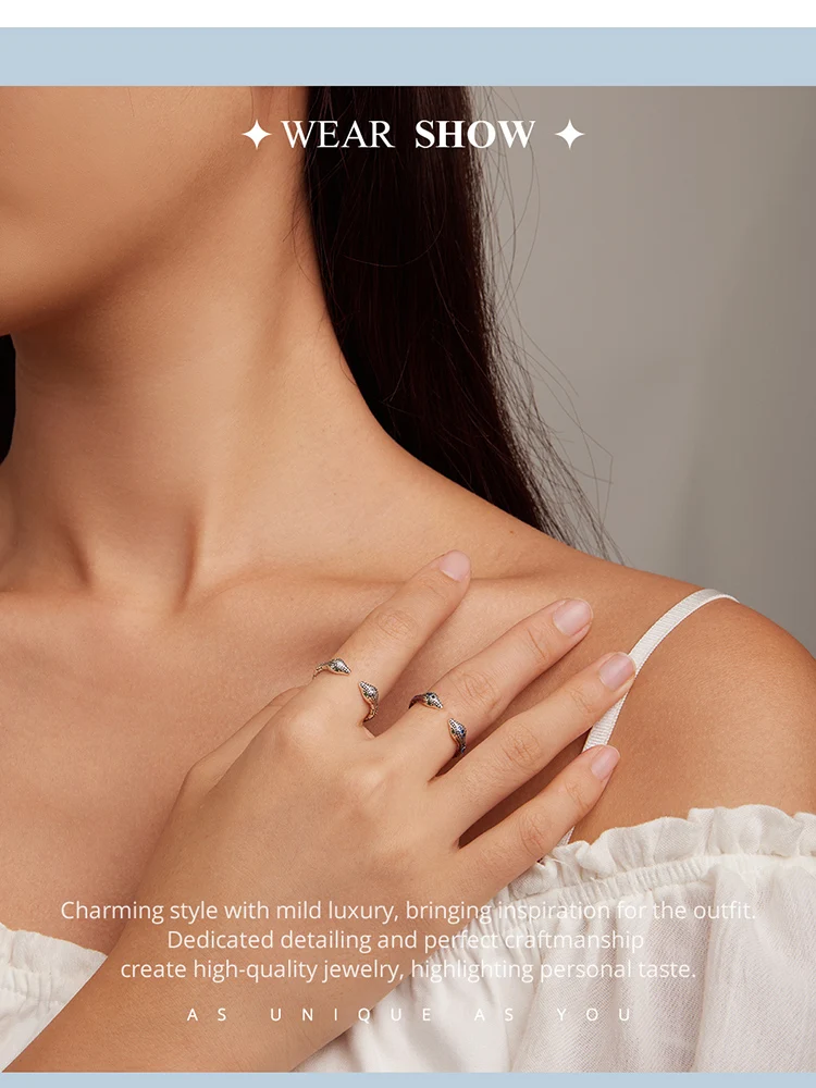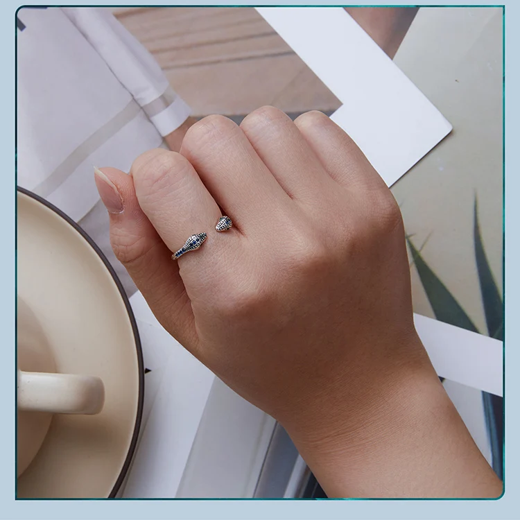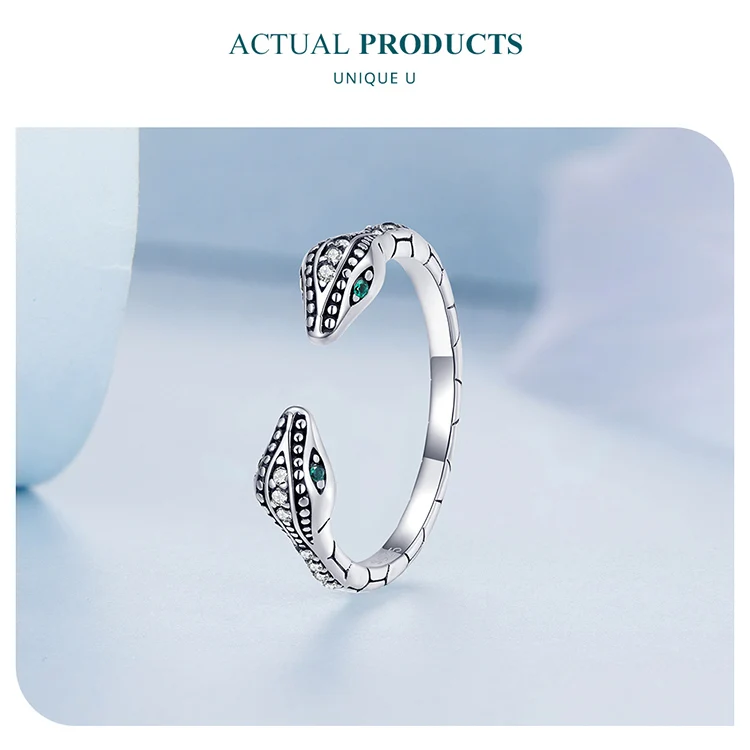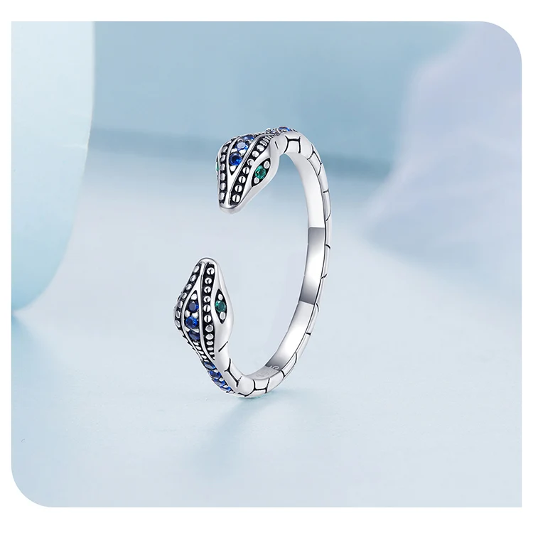 Bamoer 925 Sterling Silver Double Snakeheads Open Ring Snake Adjustable Ring for Women Pave Setting Zircon Fine Jewelry BSR317