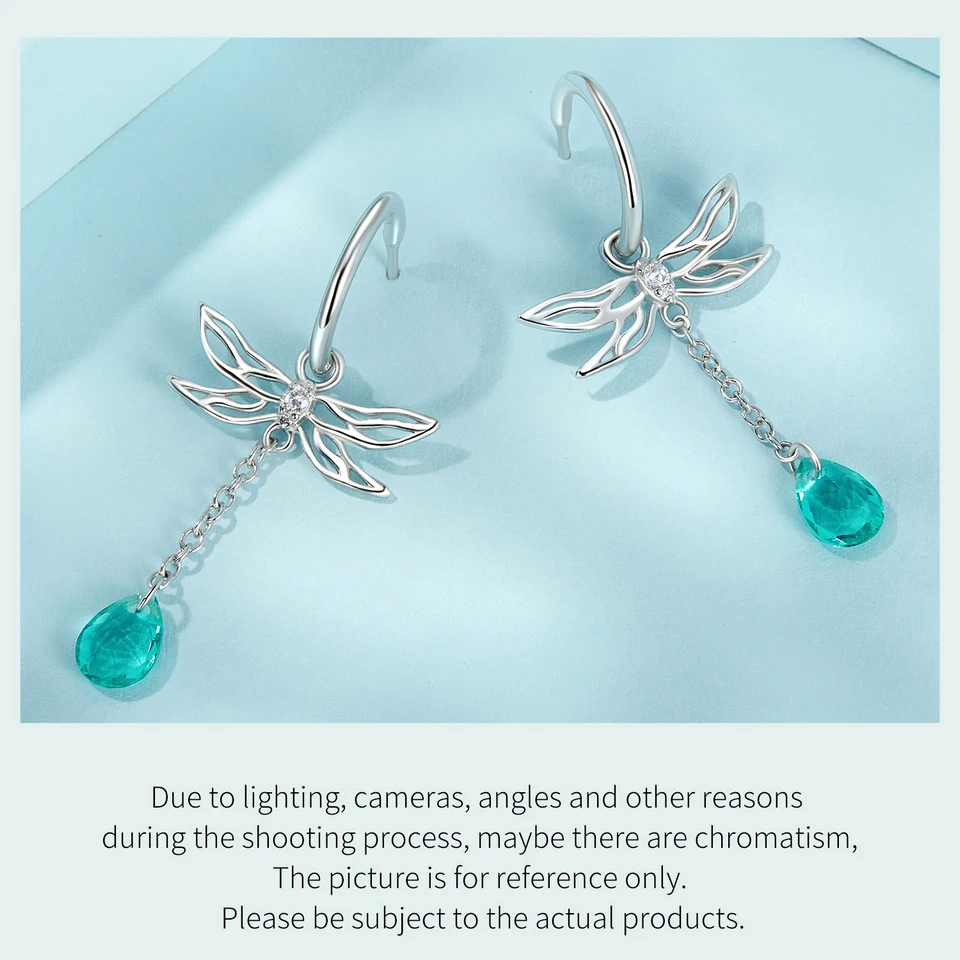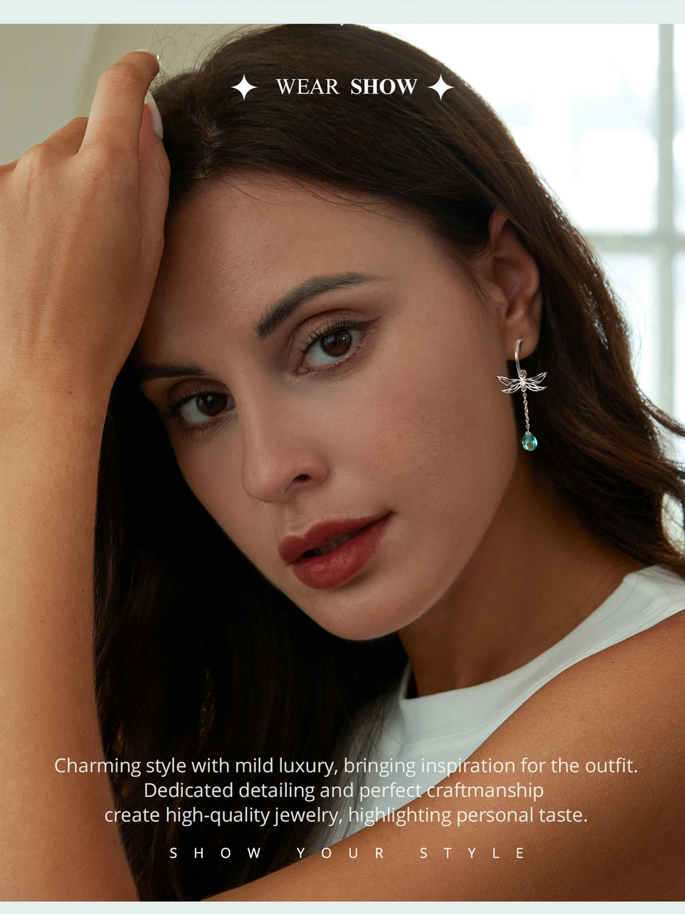 ❤ [Description] Hollowed dragonfly design with a tassel tail adorned with green stones, providing a fresh and face-enhancing appearance. Symbolizing the messenger of freedom, encouraging you to spread your wings and fly high no matter where you are.