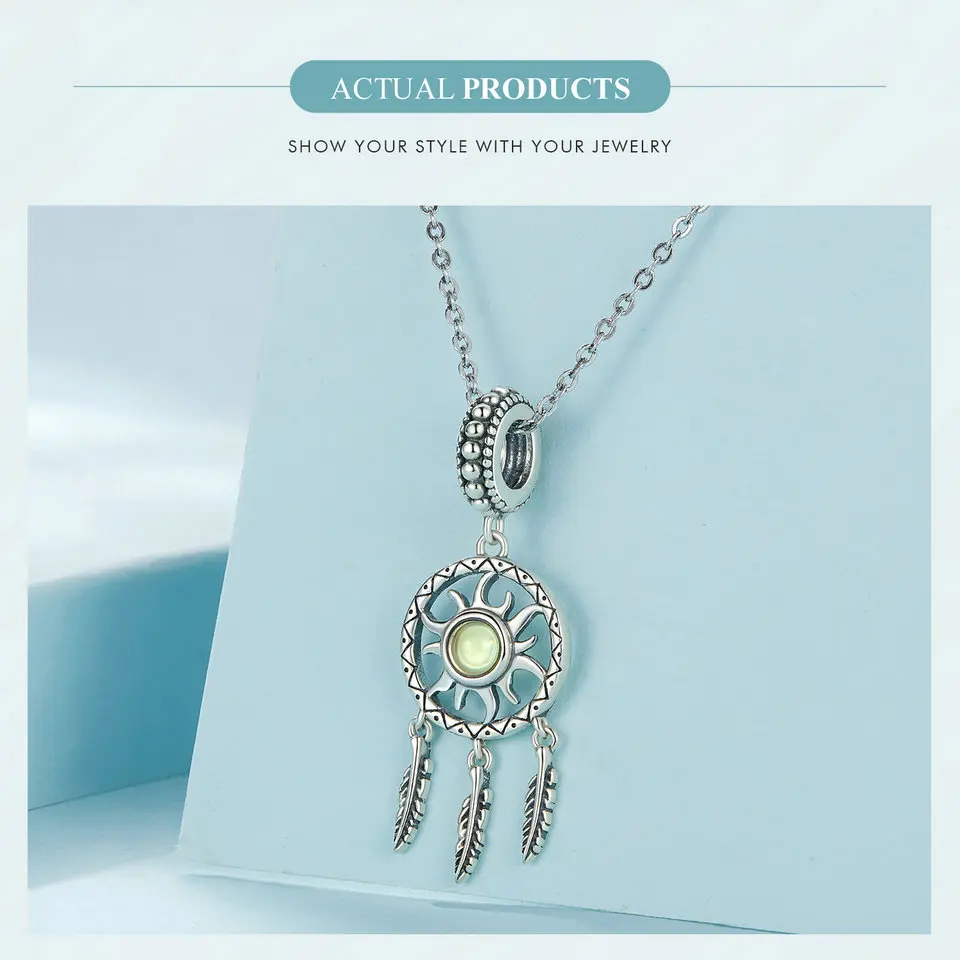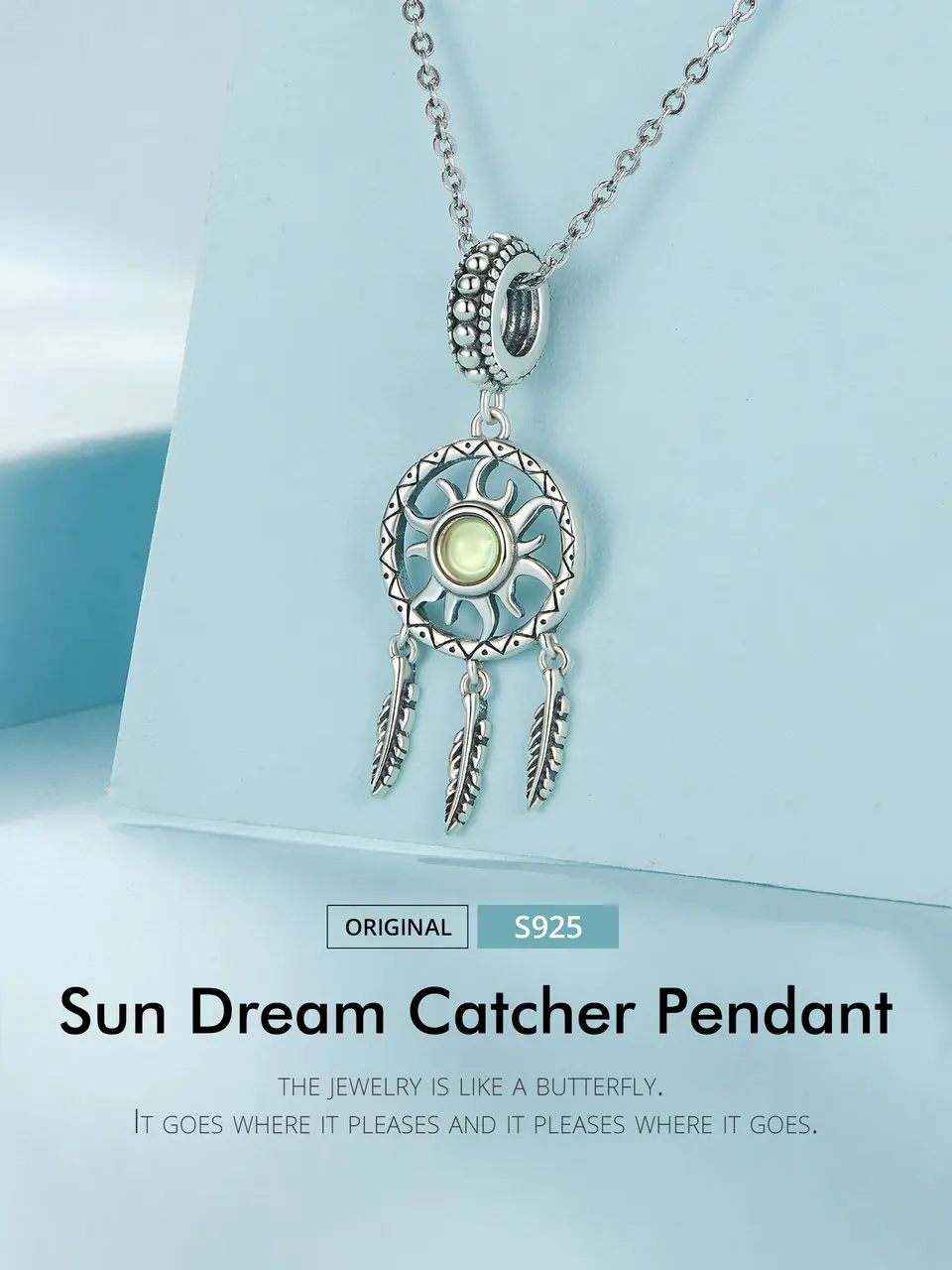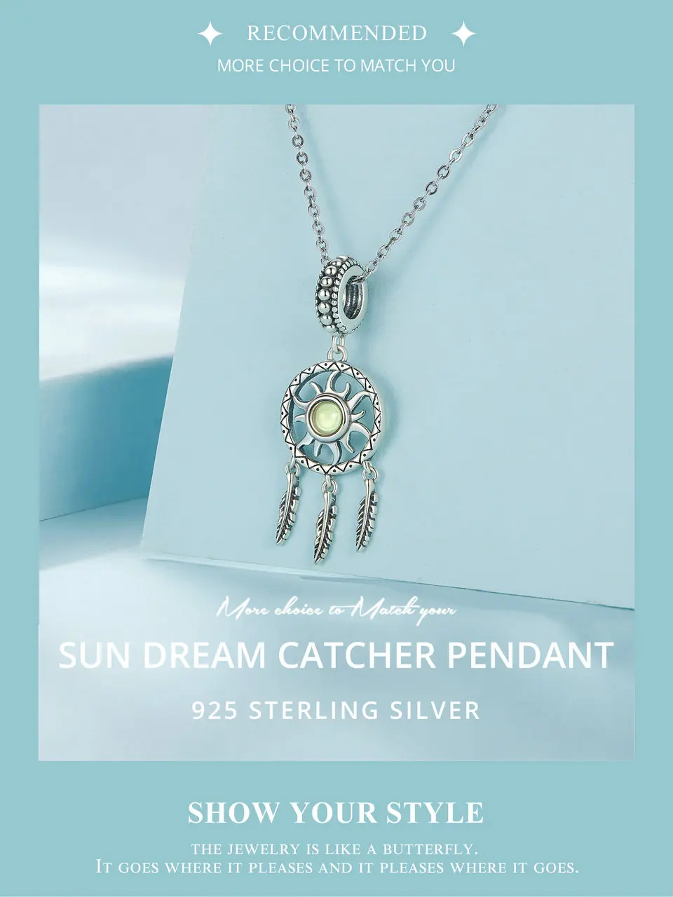 Bamoer 925 Sterling Silver Dream Catcher Pendant Charms Sun Beads for Women Original Bracelet and Necklace Fine Jewelry
