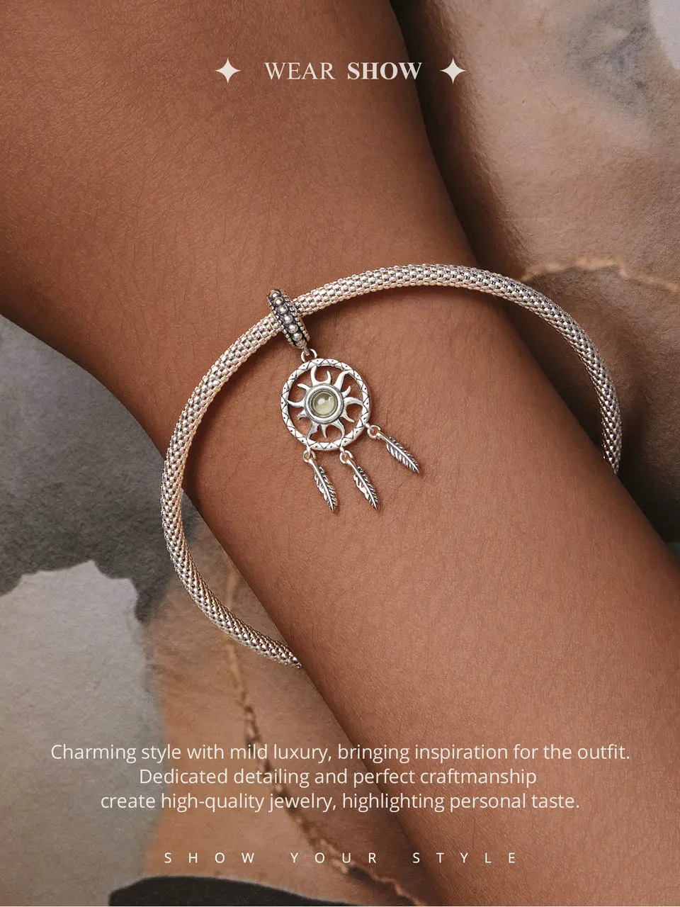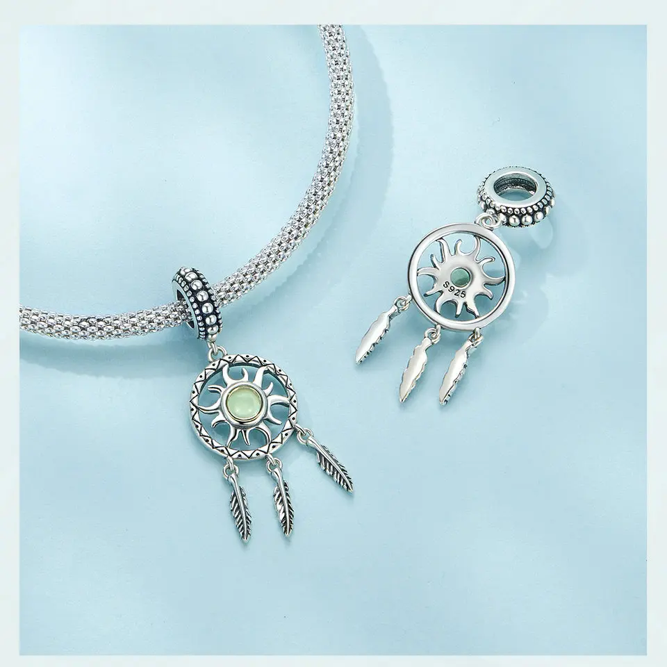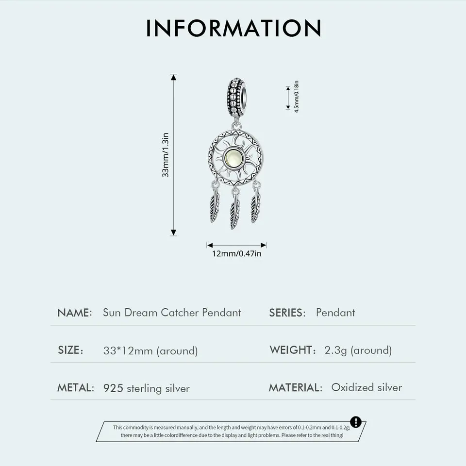 Bamoer 925 Sterling Silver Dream Catcher Pendant Charms Sun Beads for Women Original Bracelet and Necklace Fine Jewelry