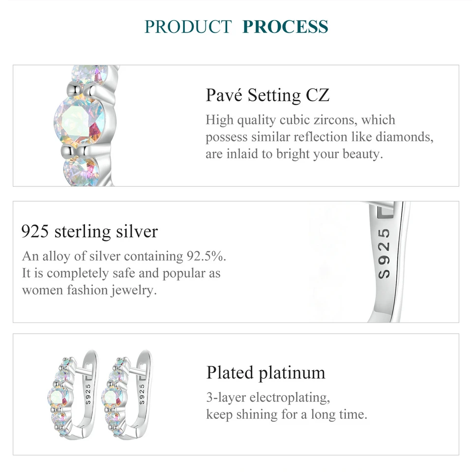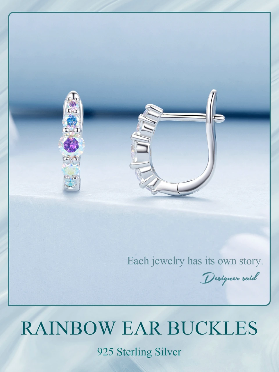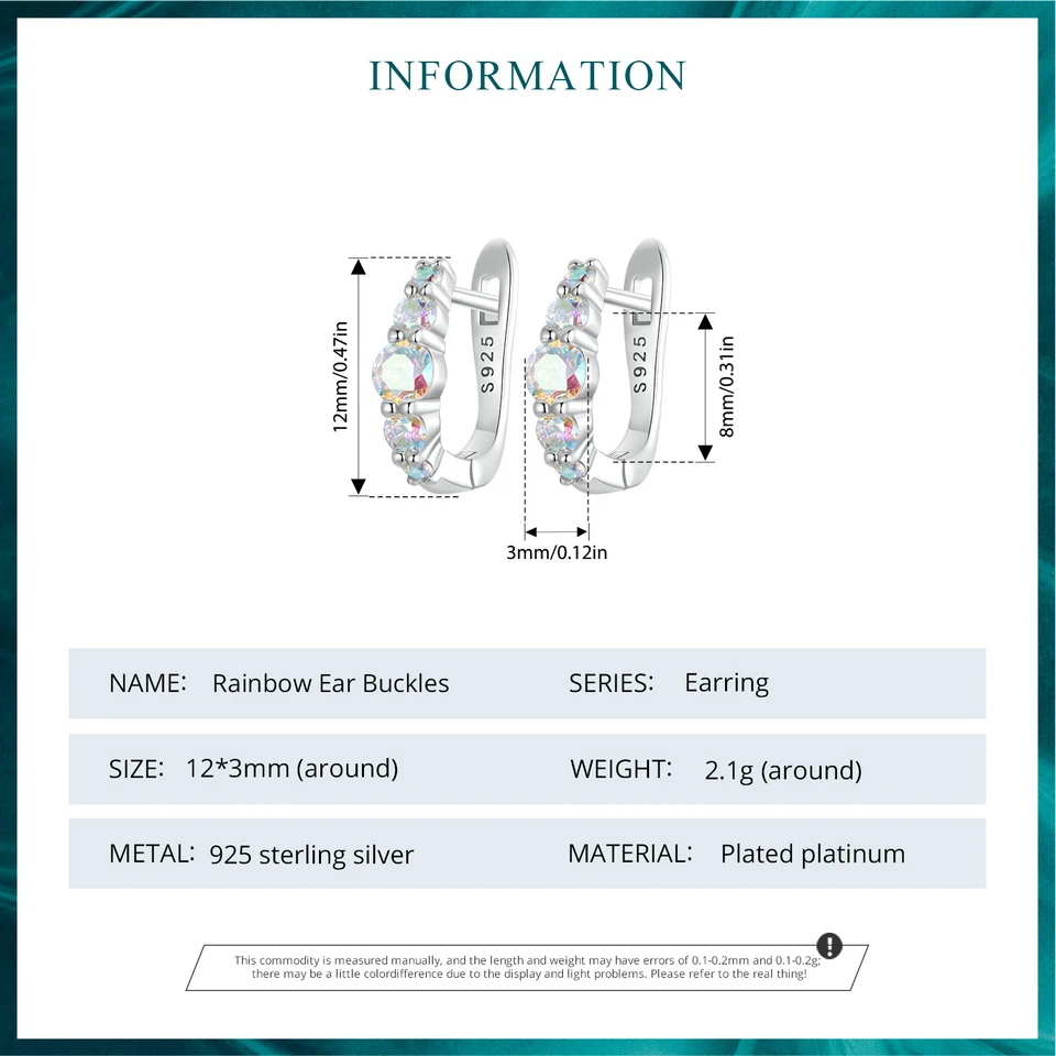 ❤ [Description] The rainbow ear buckles setted with iridescent cubic zirconia show a captivating iridescence effect as if condensing the beautiful rainbow.