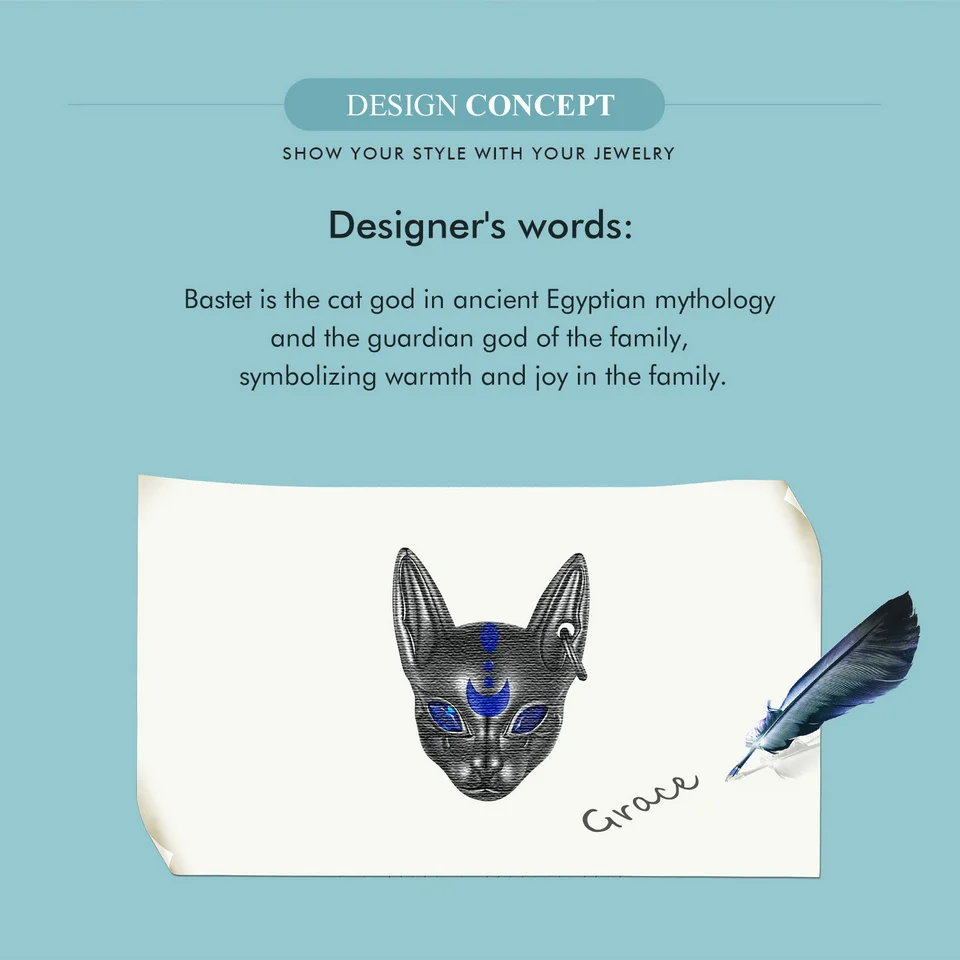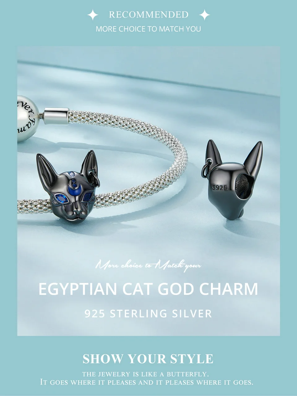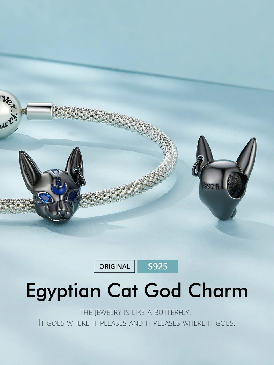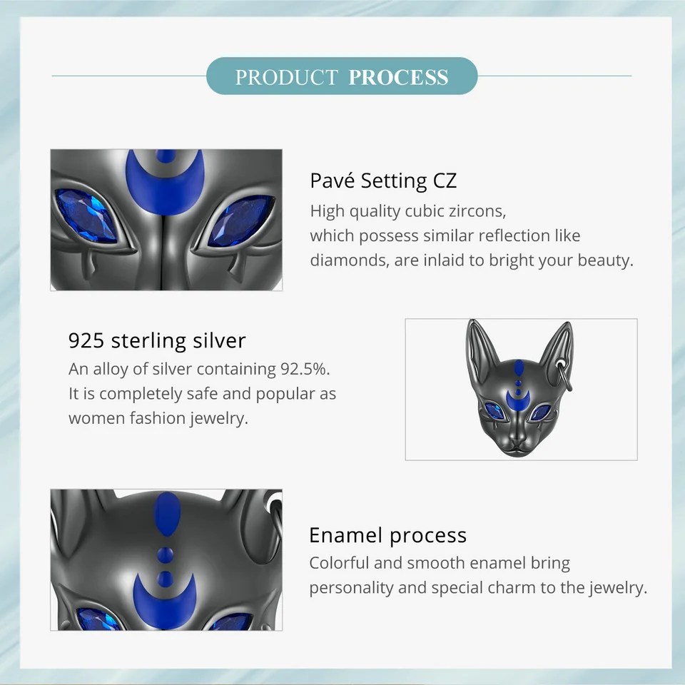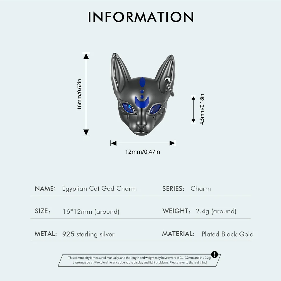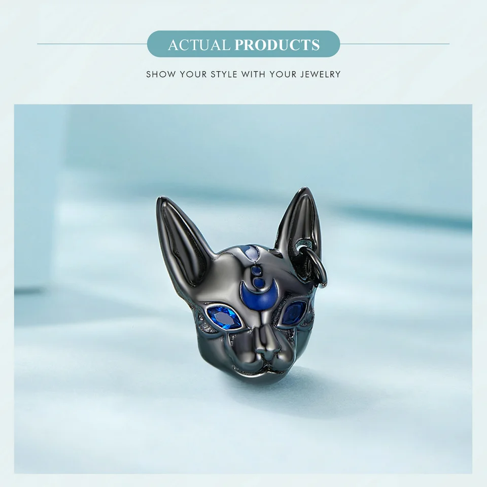 Bamoer 925 Sterling Silver Egyptian Cat God Charms Black Gold Plated Cute Animal Beads for Women Bracelet and Bangle DIY