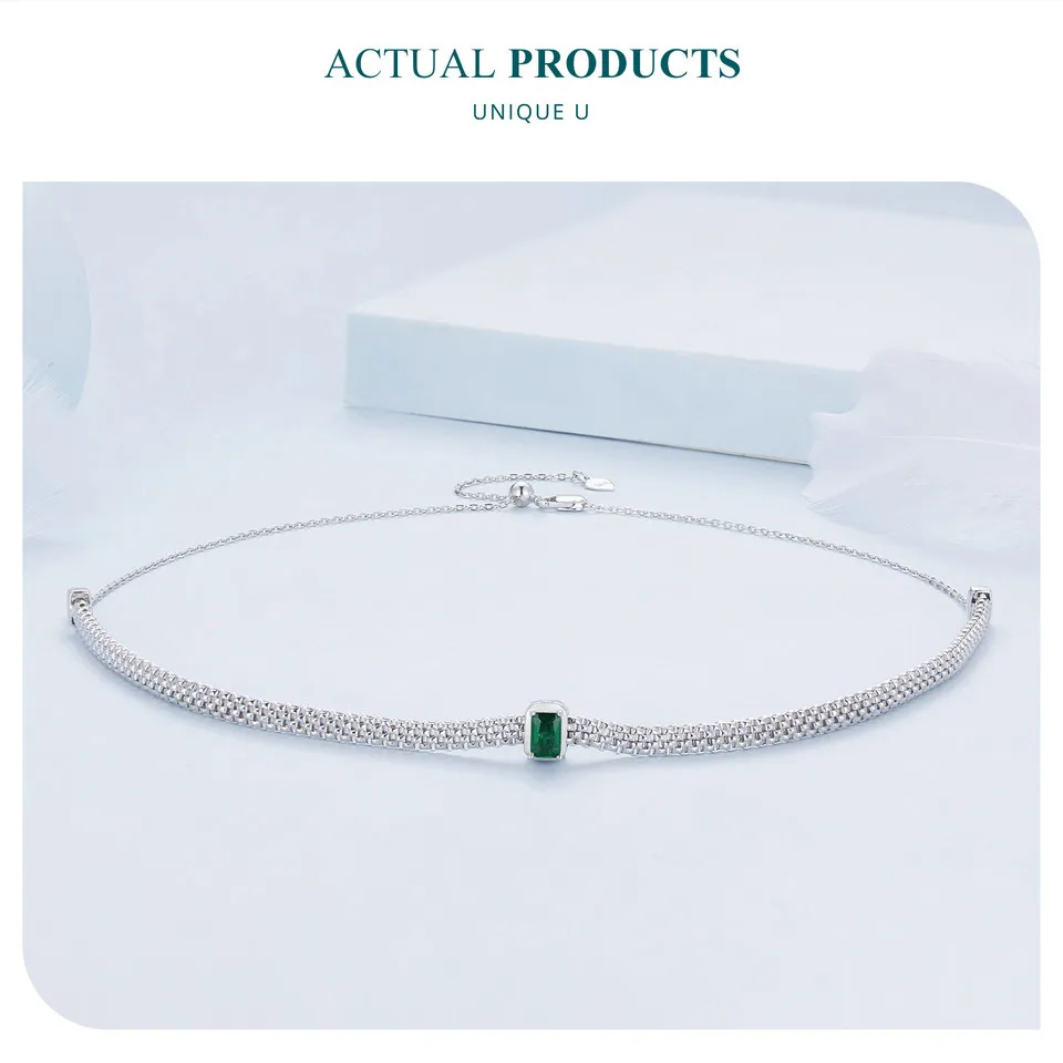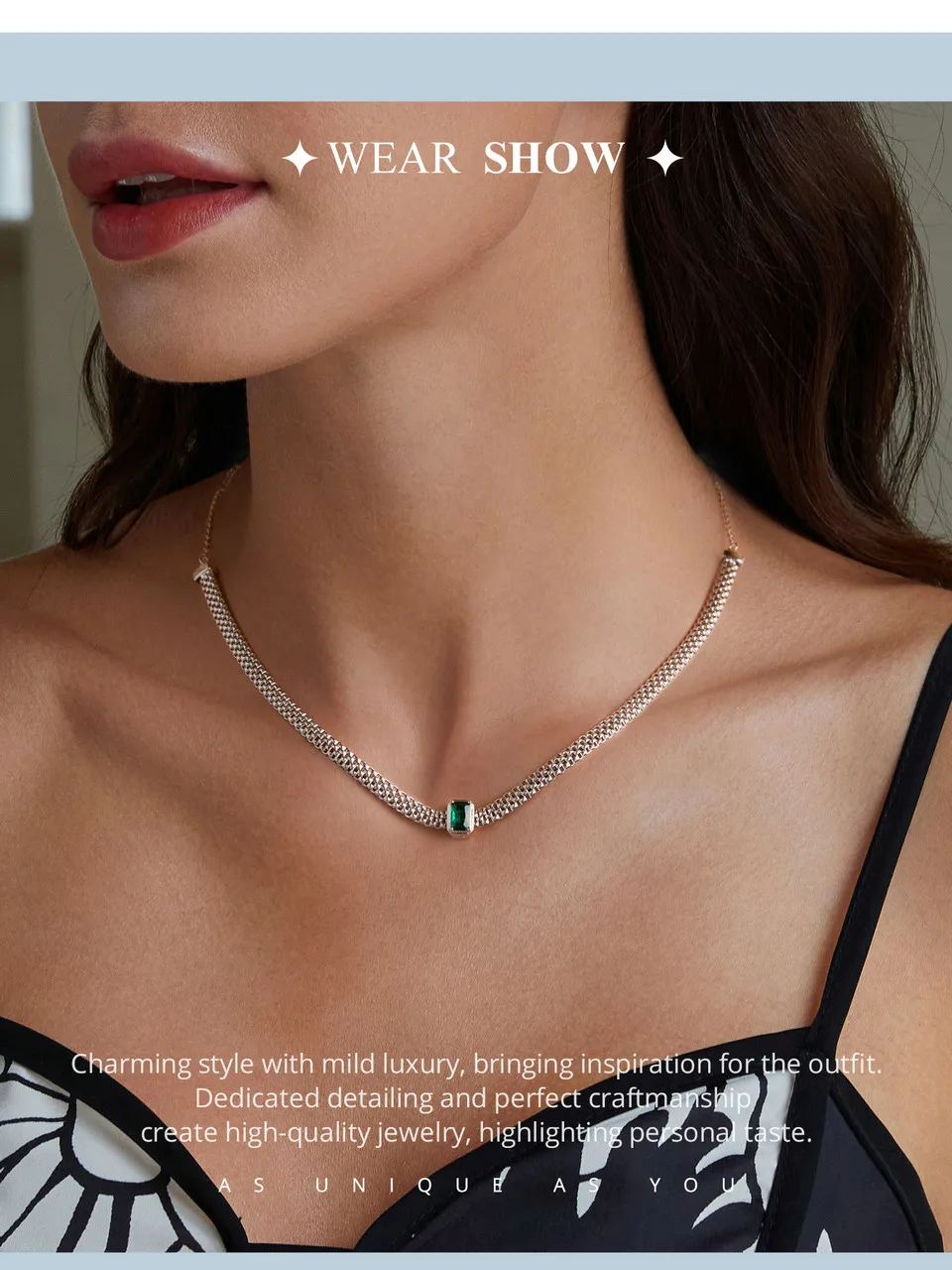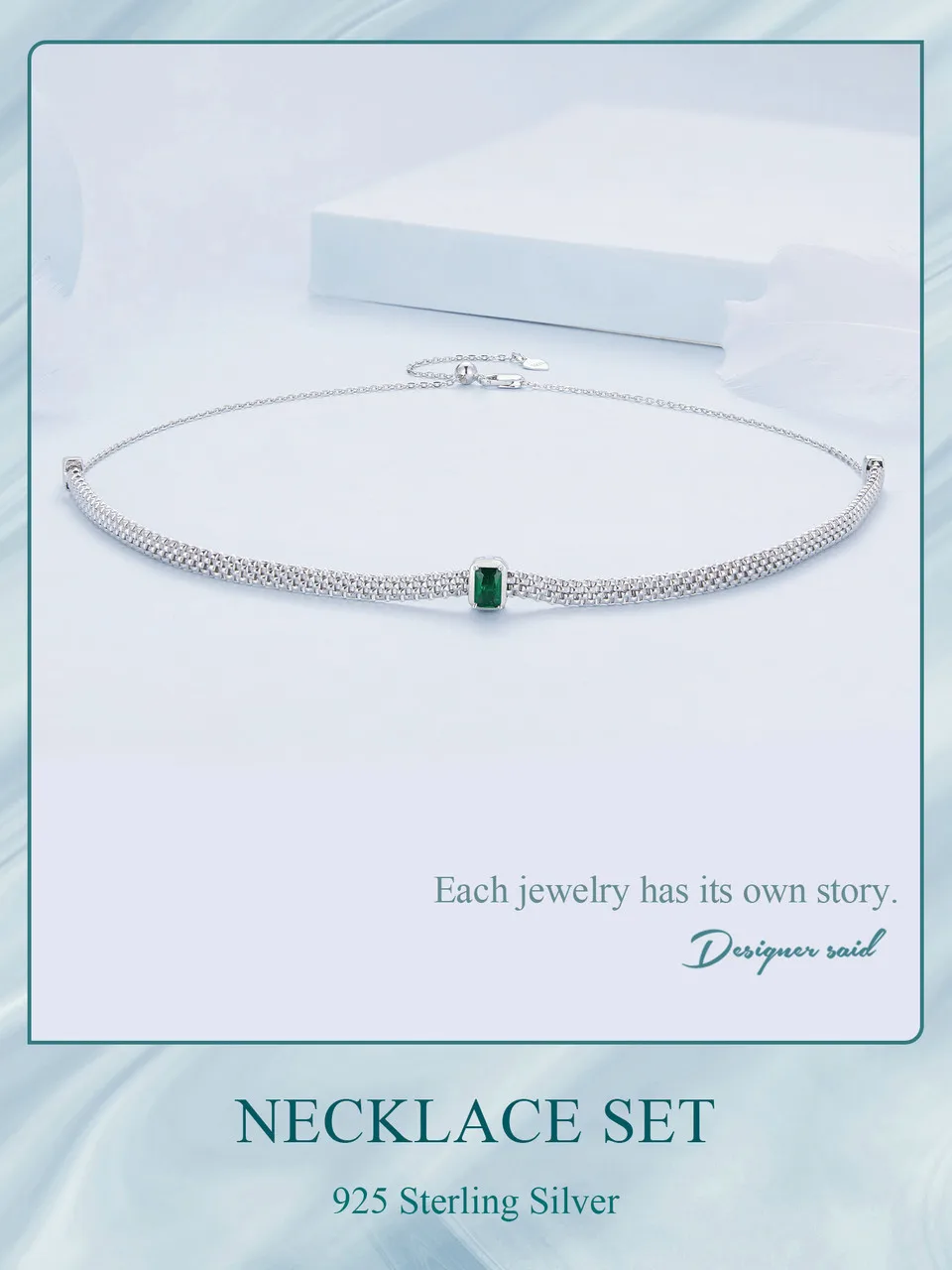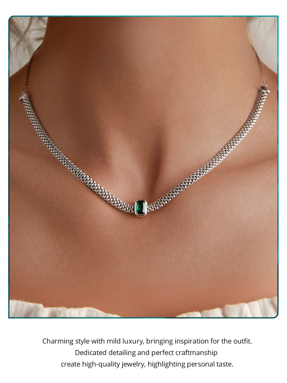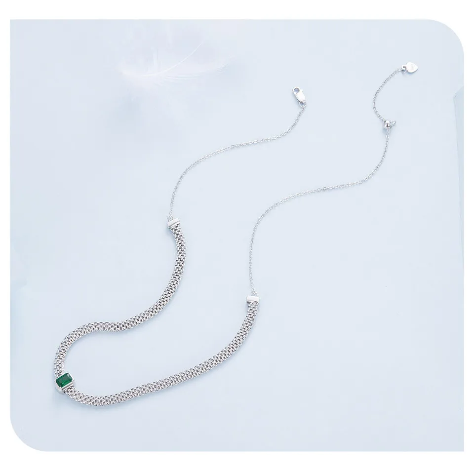 Bamoer 925 Sterling Silver Elegant Emerald Necklace Retro Braided Silver Neck Chain for Women Birthday Gift Fine Jewelry