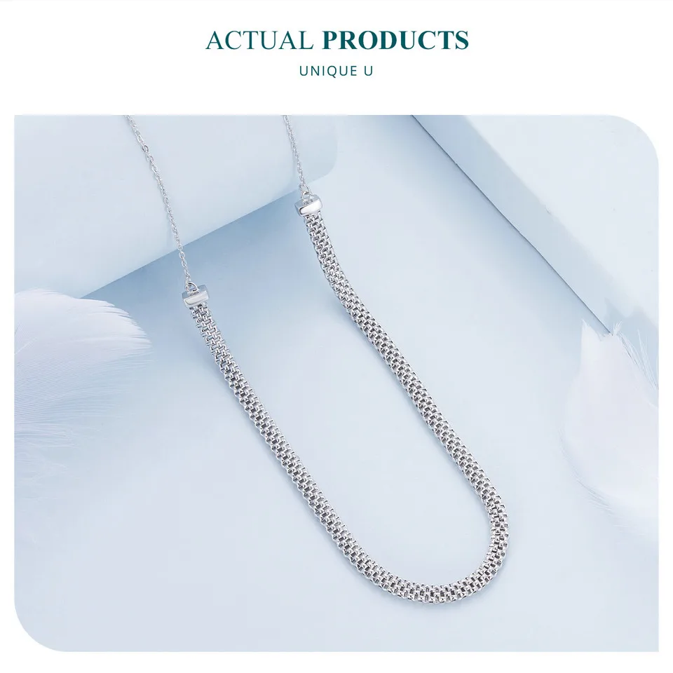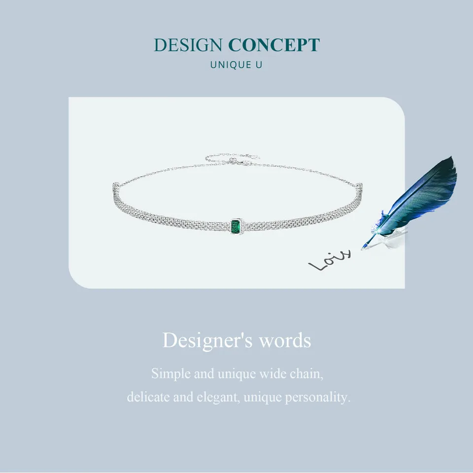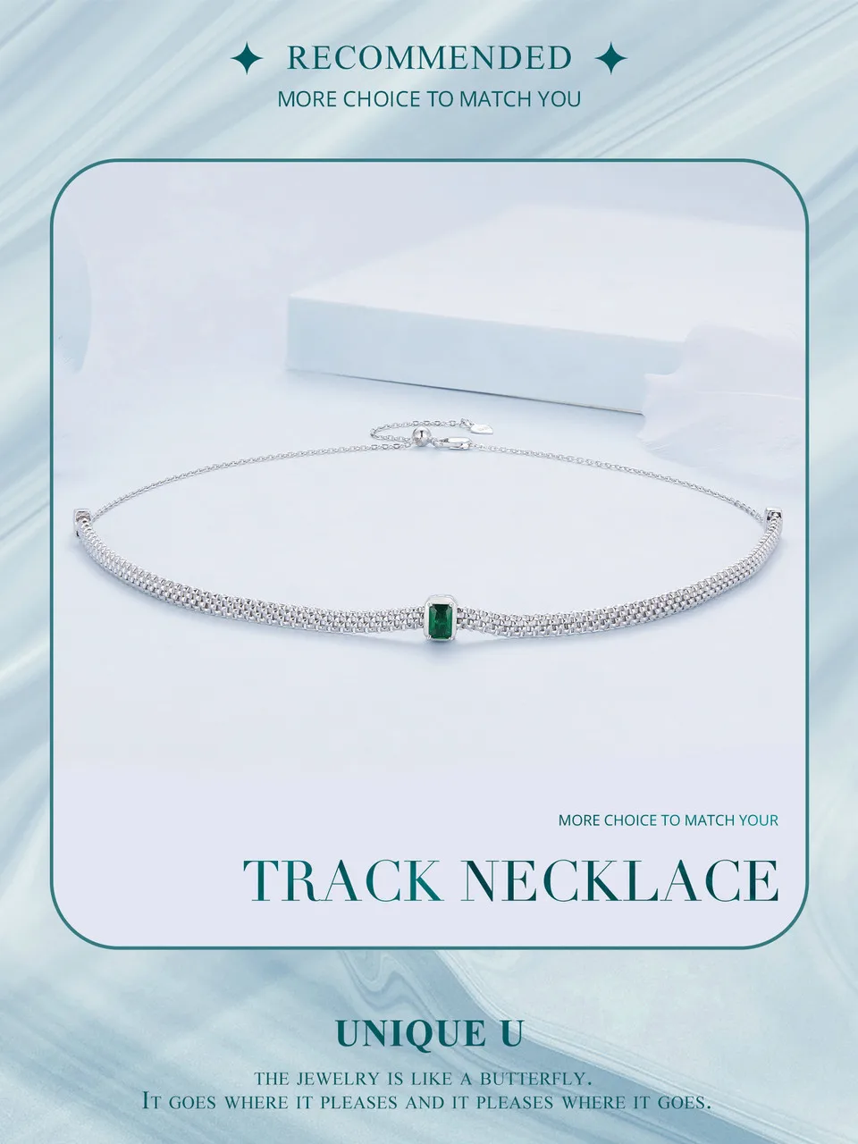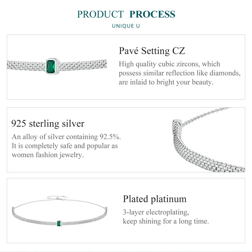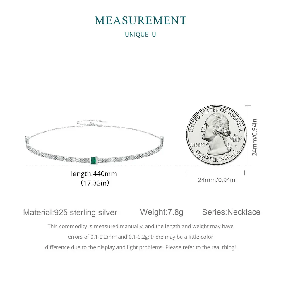 Bamoer 925 Sterling Silver Elegant Emerald Necklace Retro Braided Silver Neck Chain for Women Birthday Gift Fine Jewelry