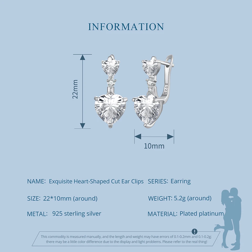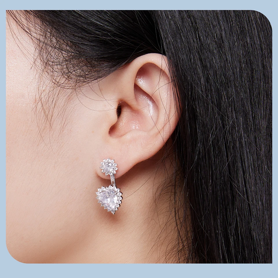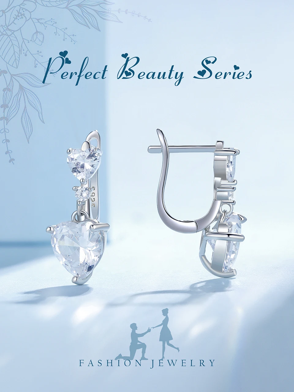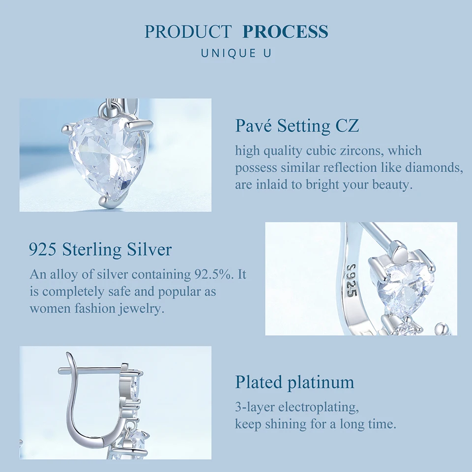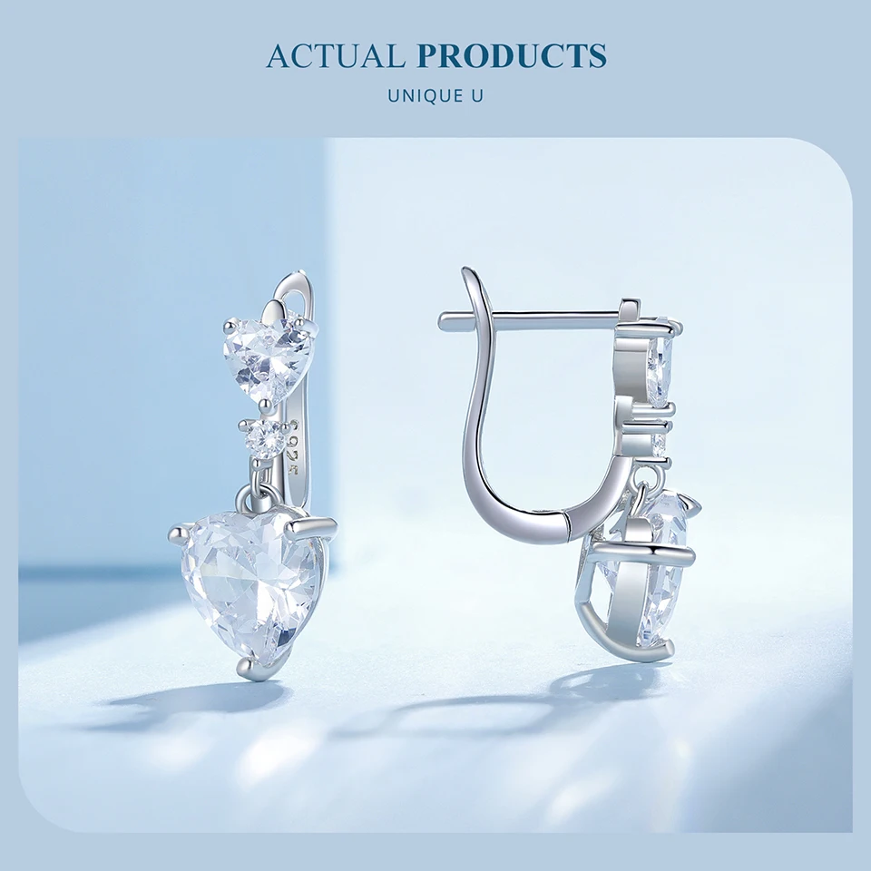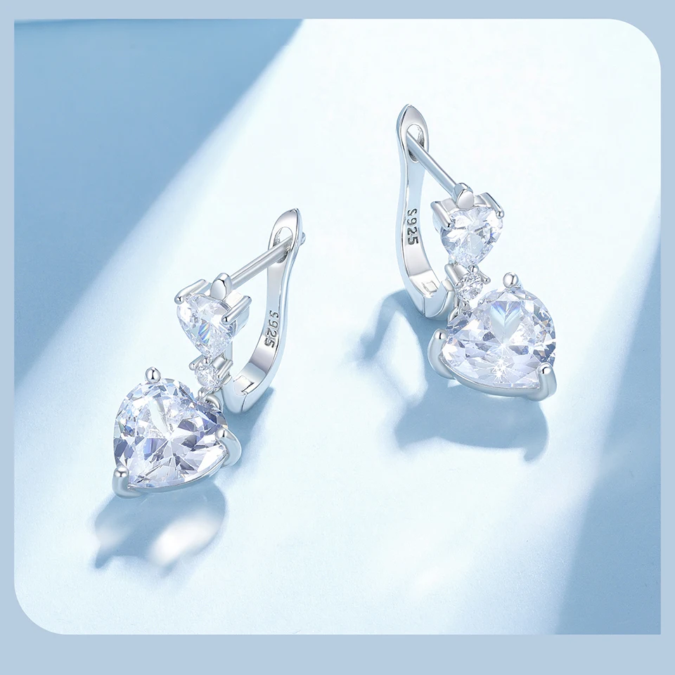 Bamoer 925 Sterling Silver Exquisite Heart-Shaped Zircon Ear Buckles Cubic Zirconia Hoop Earrings for Women Luxury Fine Jewelry